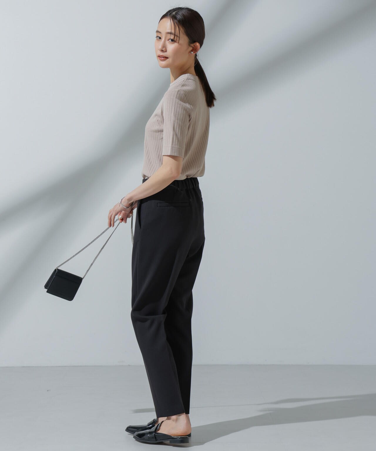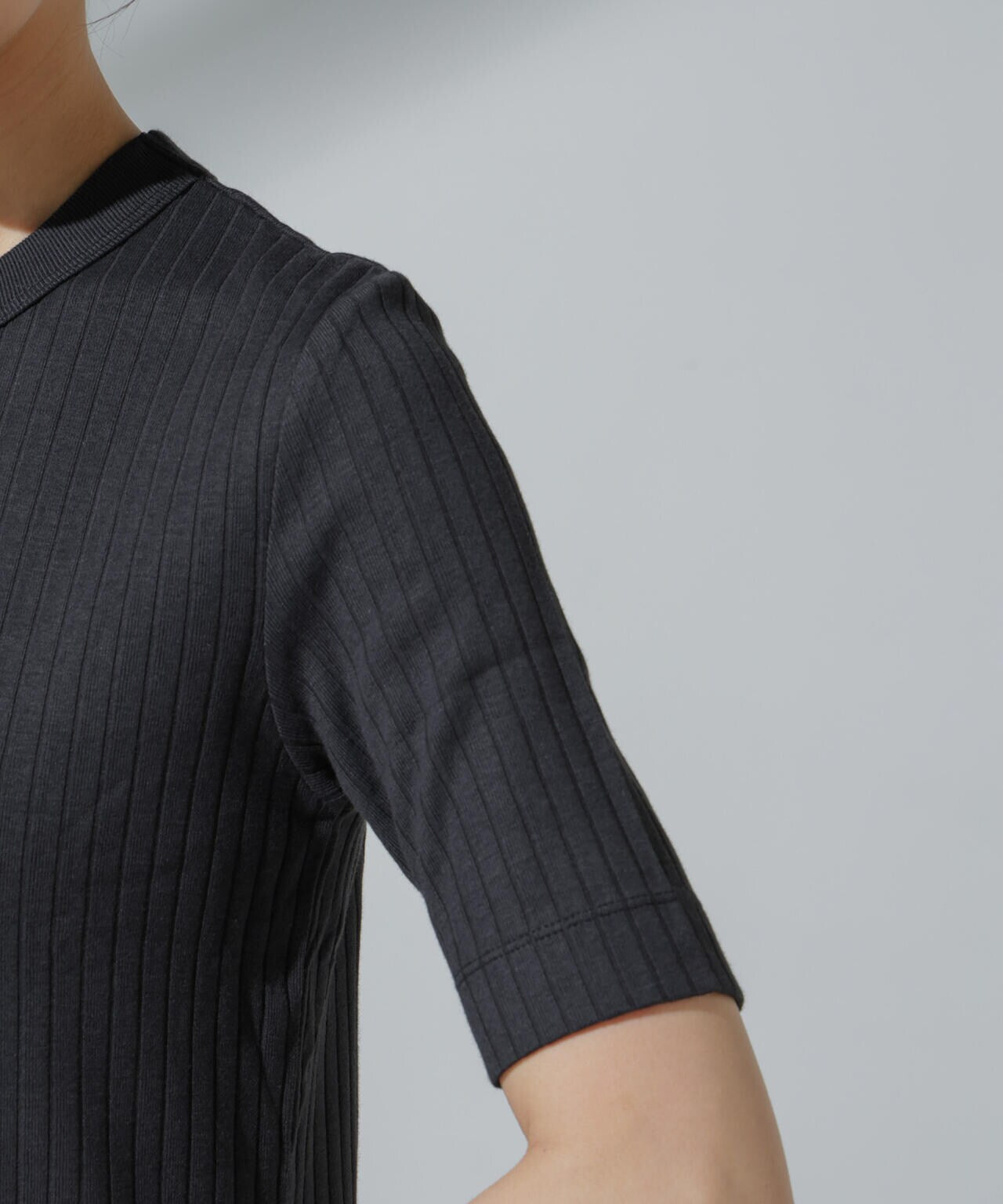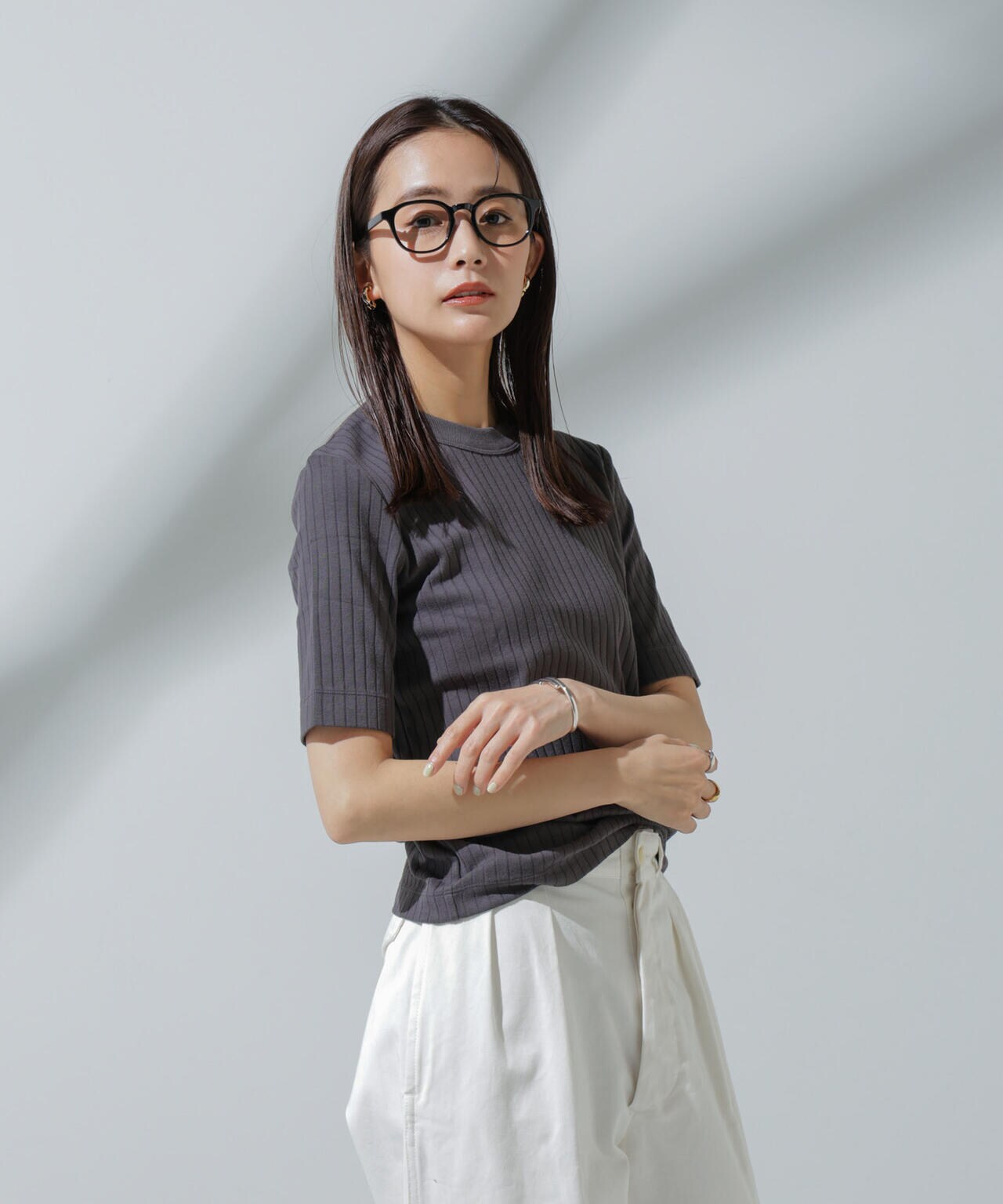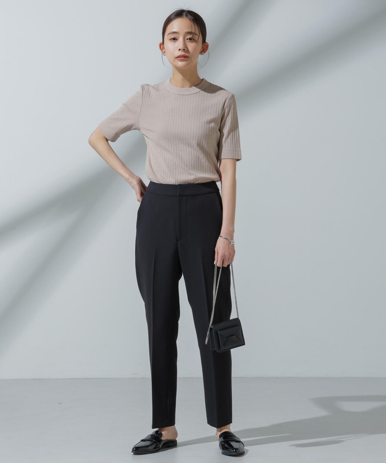 すっきり見えるコンパクトなストレートシルエットがきれいめな印象のリブTシャツ。シンプルで着回しの効くTシャツは通勤にはもちろん、おうち時間にも最適です。