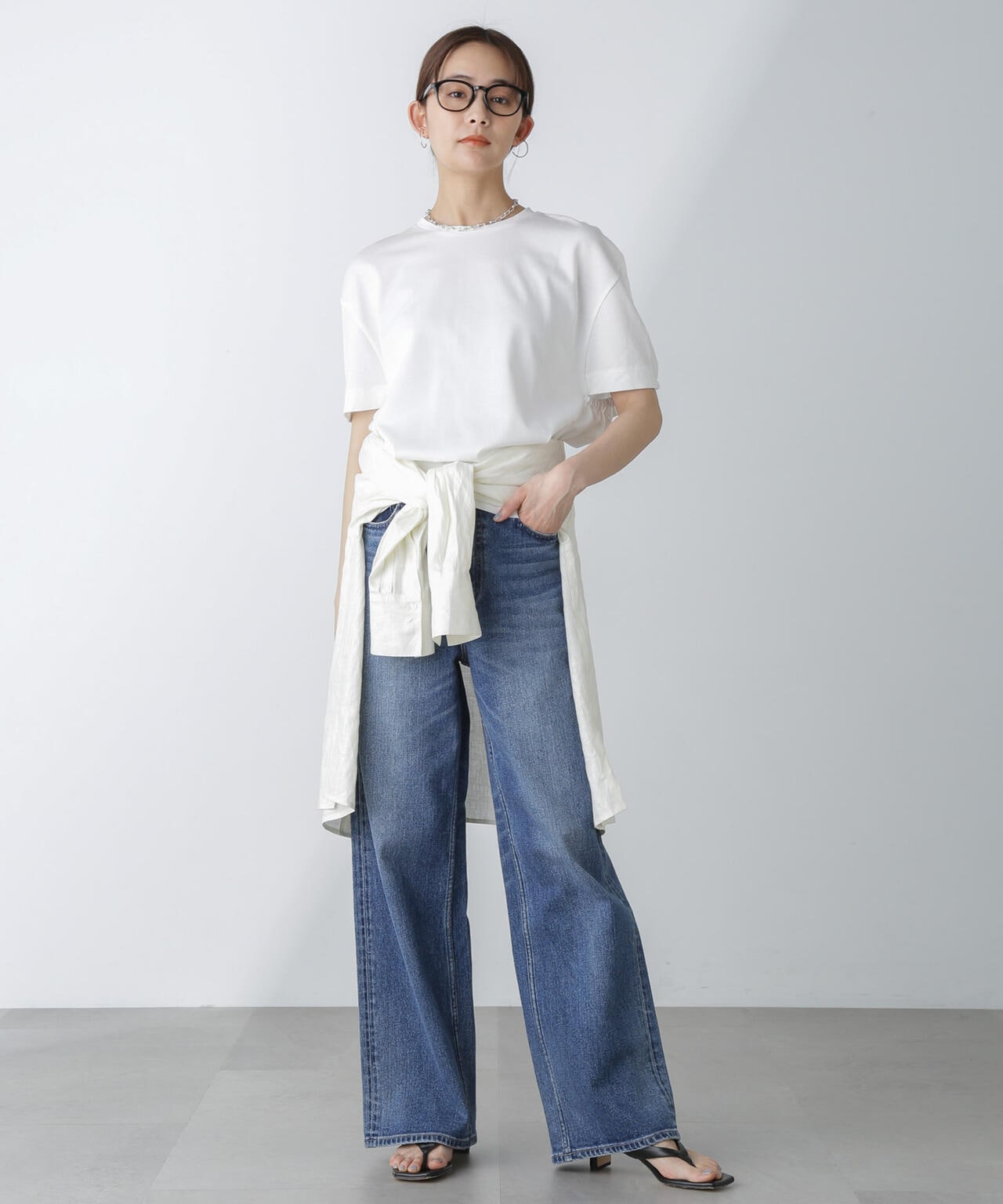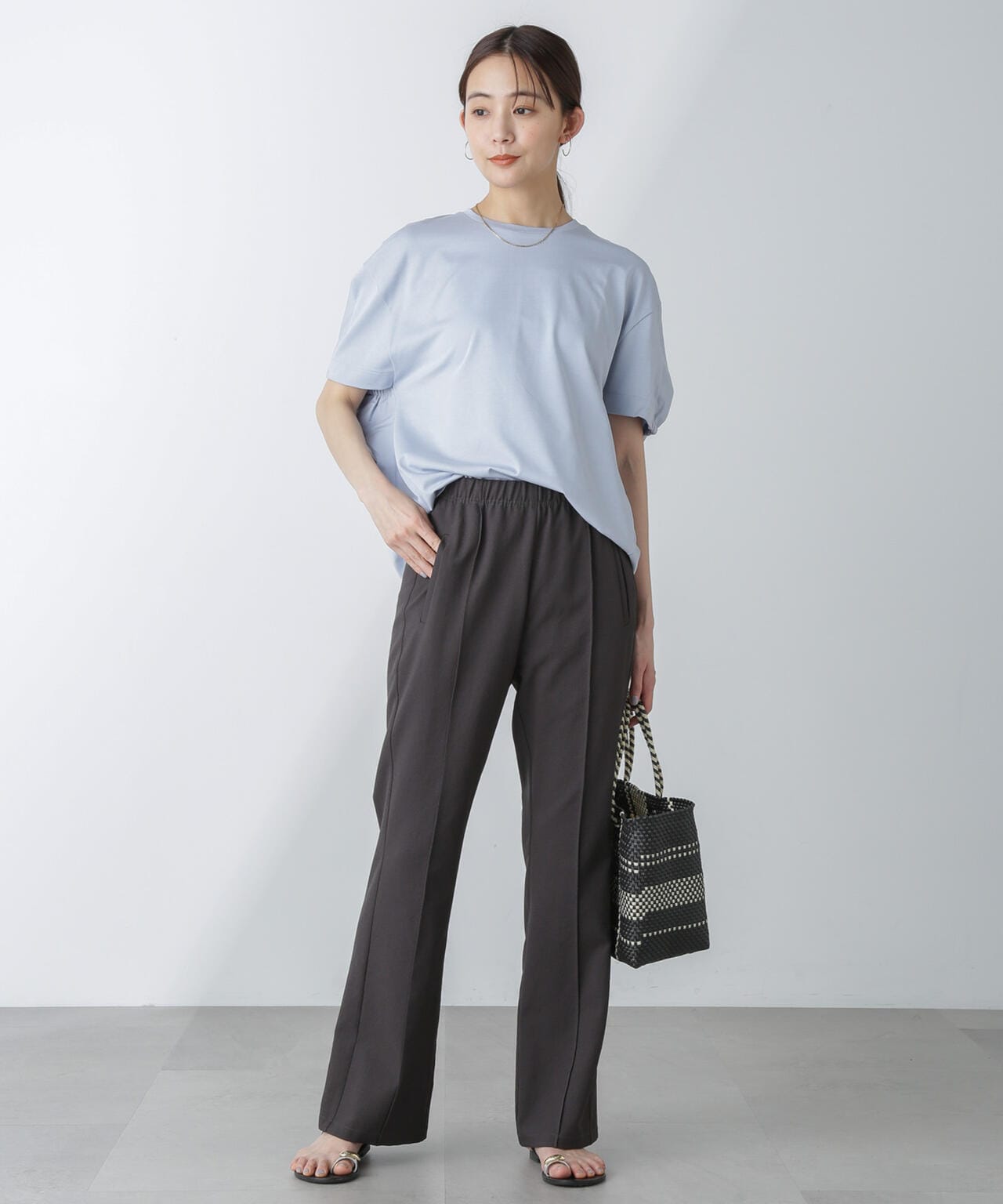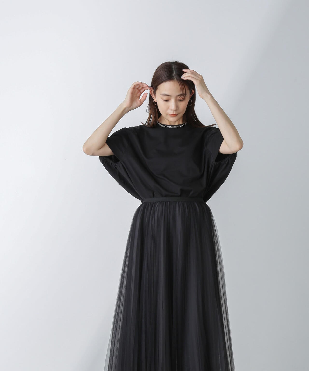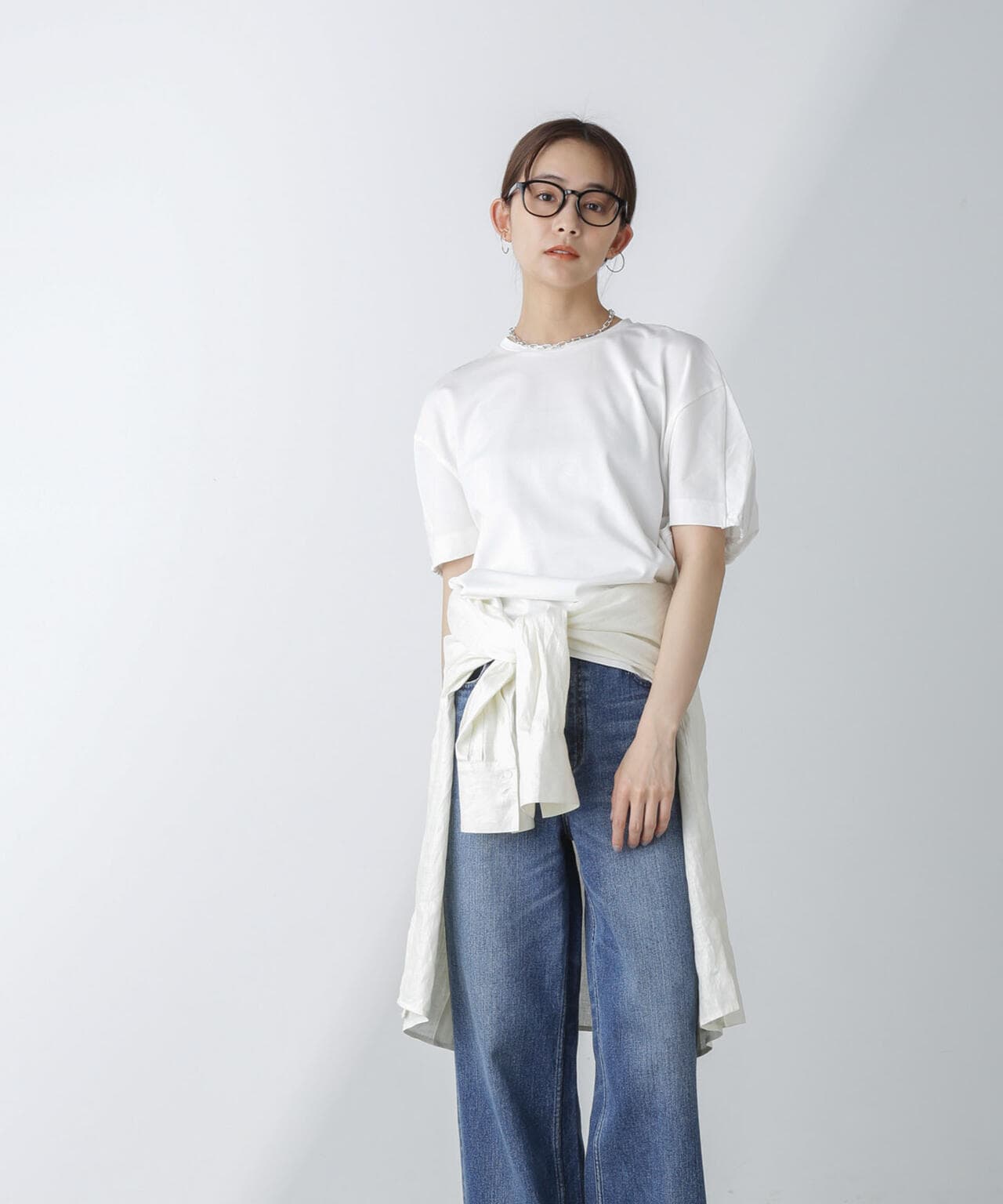 袖のフォルムデザインが魅力なカットトップス。フロントはシンプルな袖ながら、後ろはゴムでギャザーを入れた袖口でコクーンのような膨らみのあるシルエットが特徴。ハリ感のあるやや厚手の素材なので、透け感もなくオンスタイルにも最適な一枚。シンプルながらも、フォルムに特徴があるのでサラッと着ても様になるデザイン性の高いアイテムです!