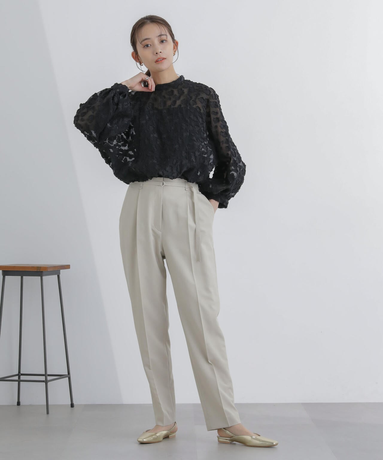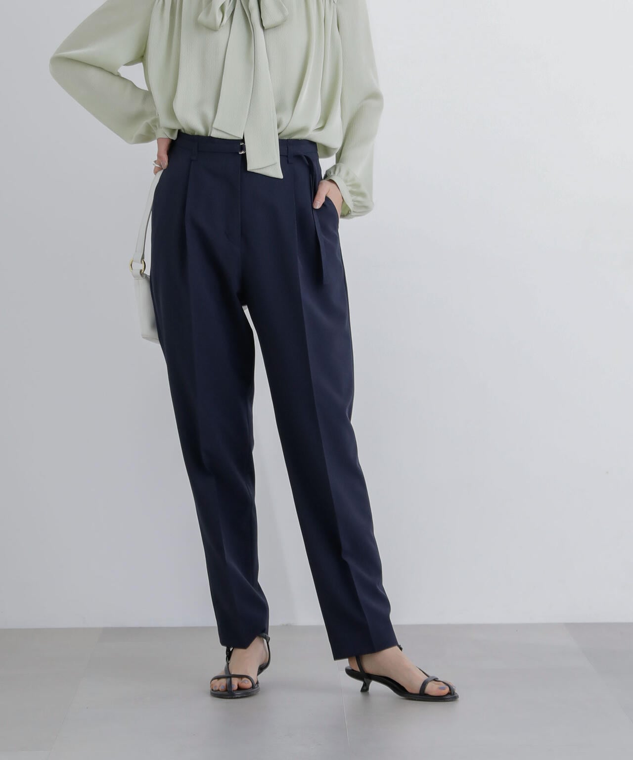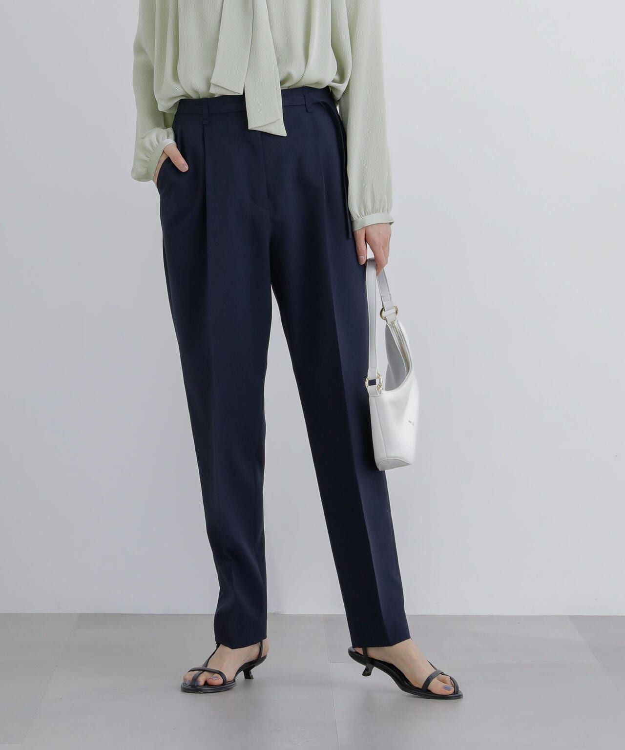 ・すっきりと細見えしながらも1タックで腰周りが気にならないシルエット