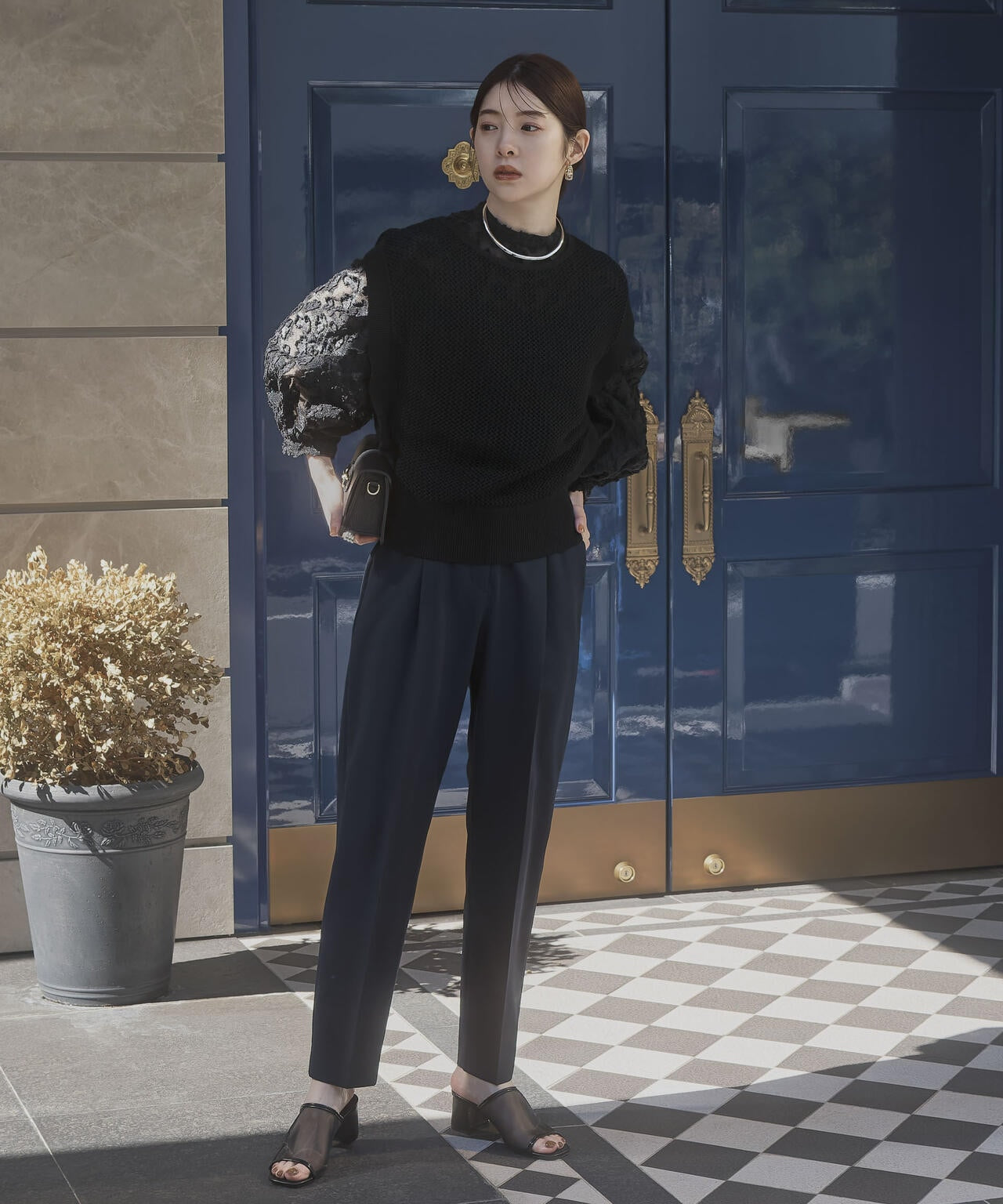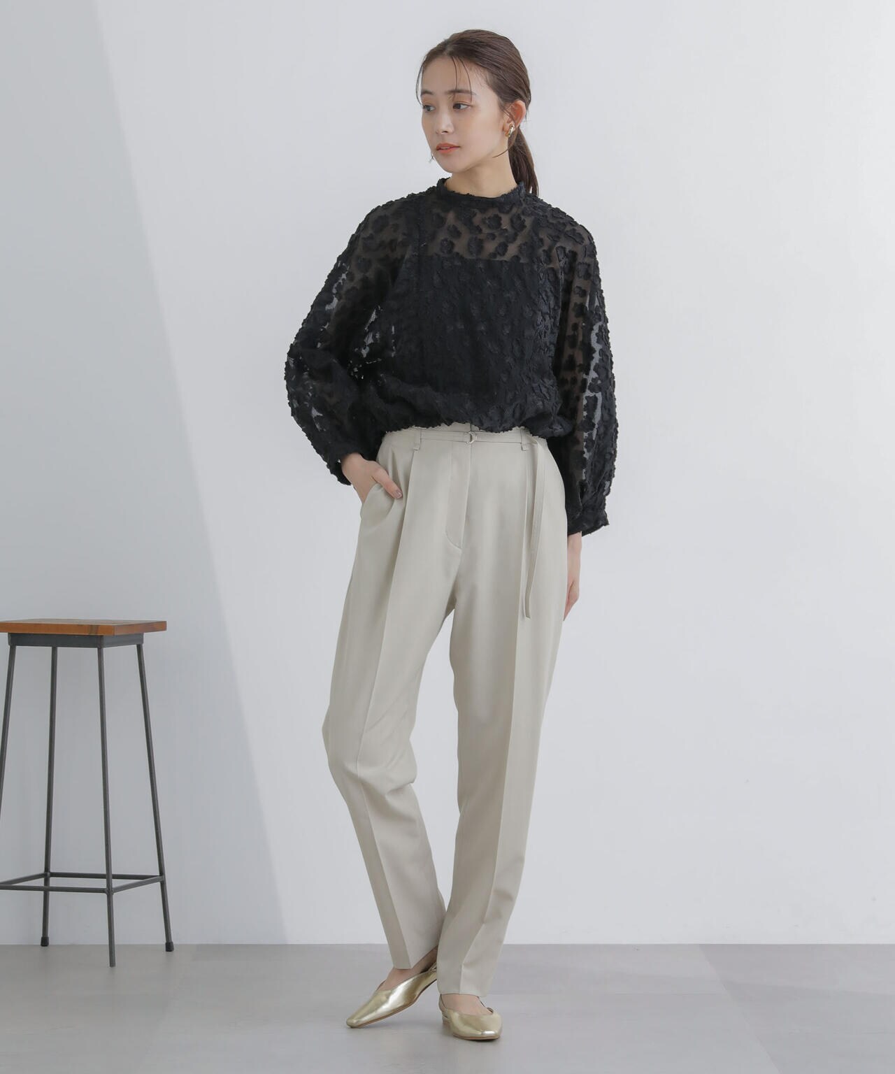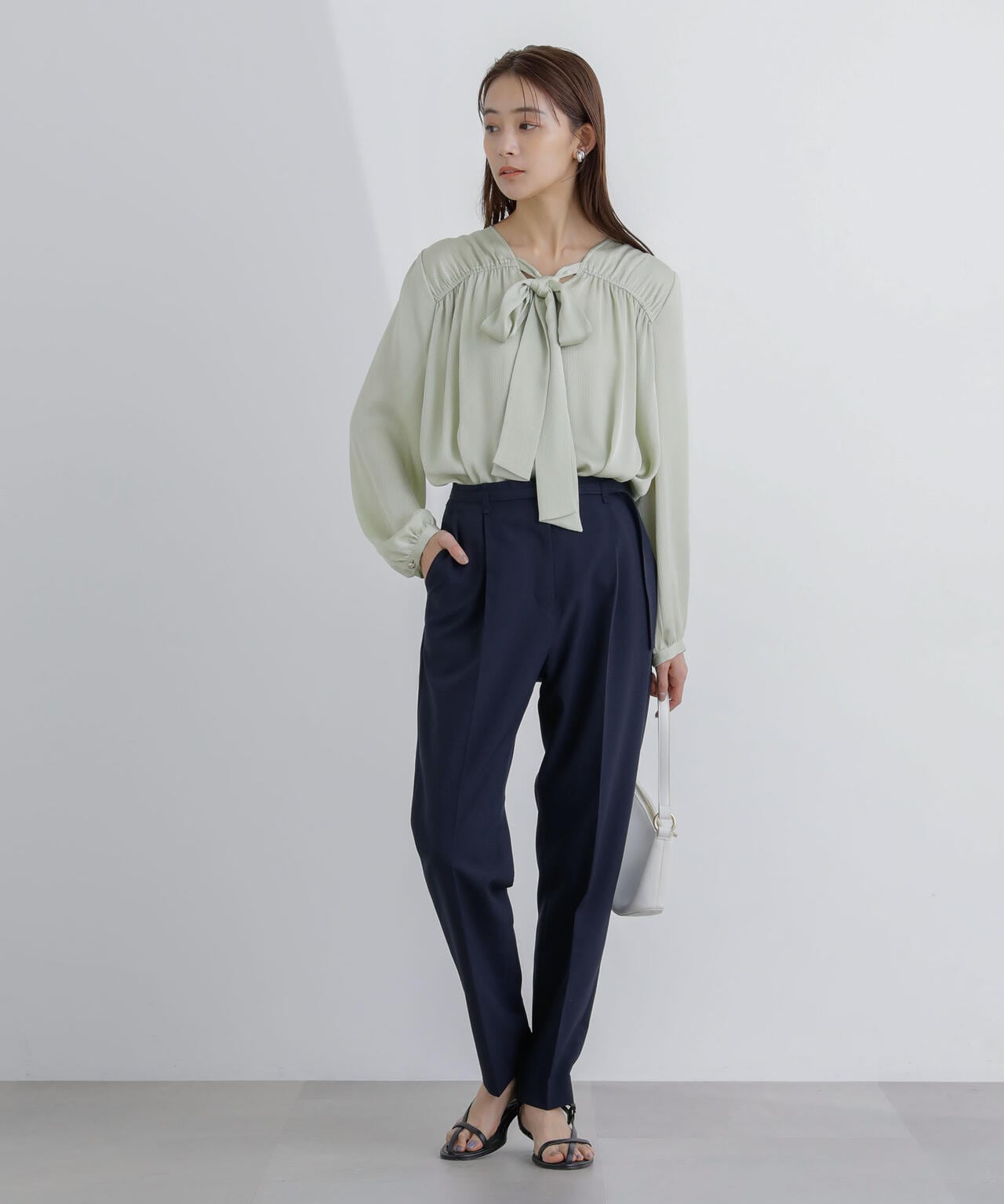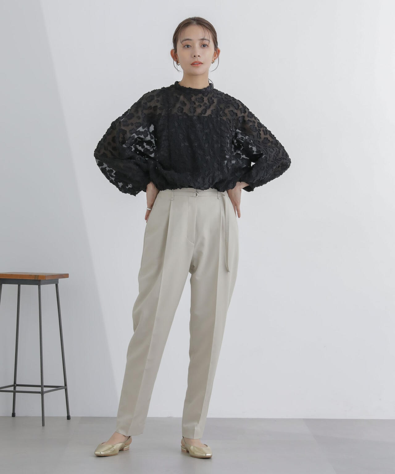 ・すっきりと細見えしながらも1タックで腰周りが気にならないシルエット