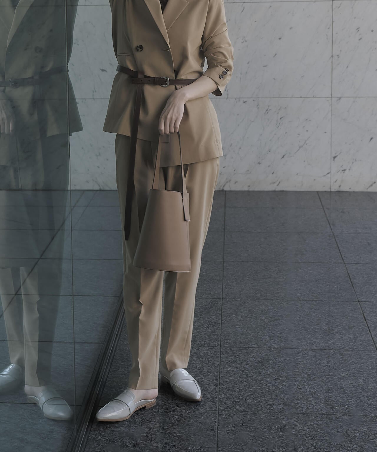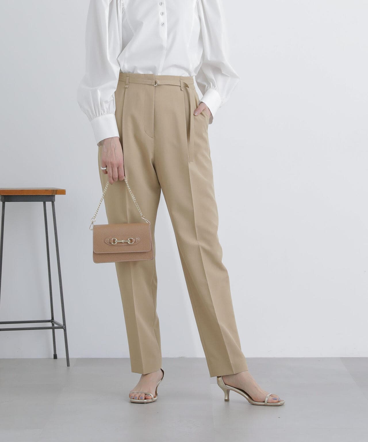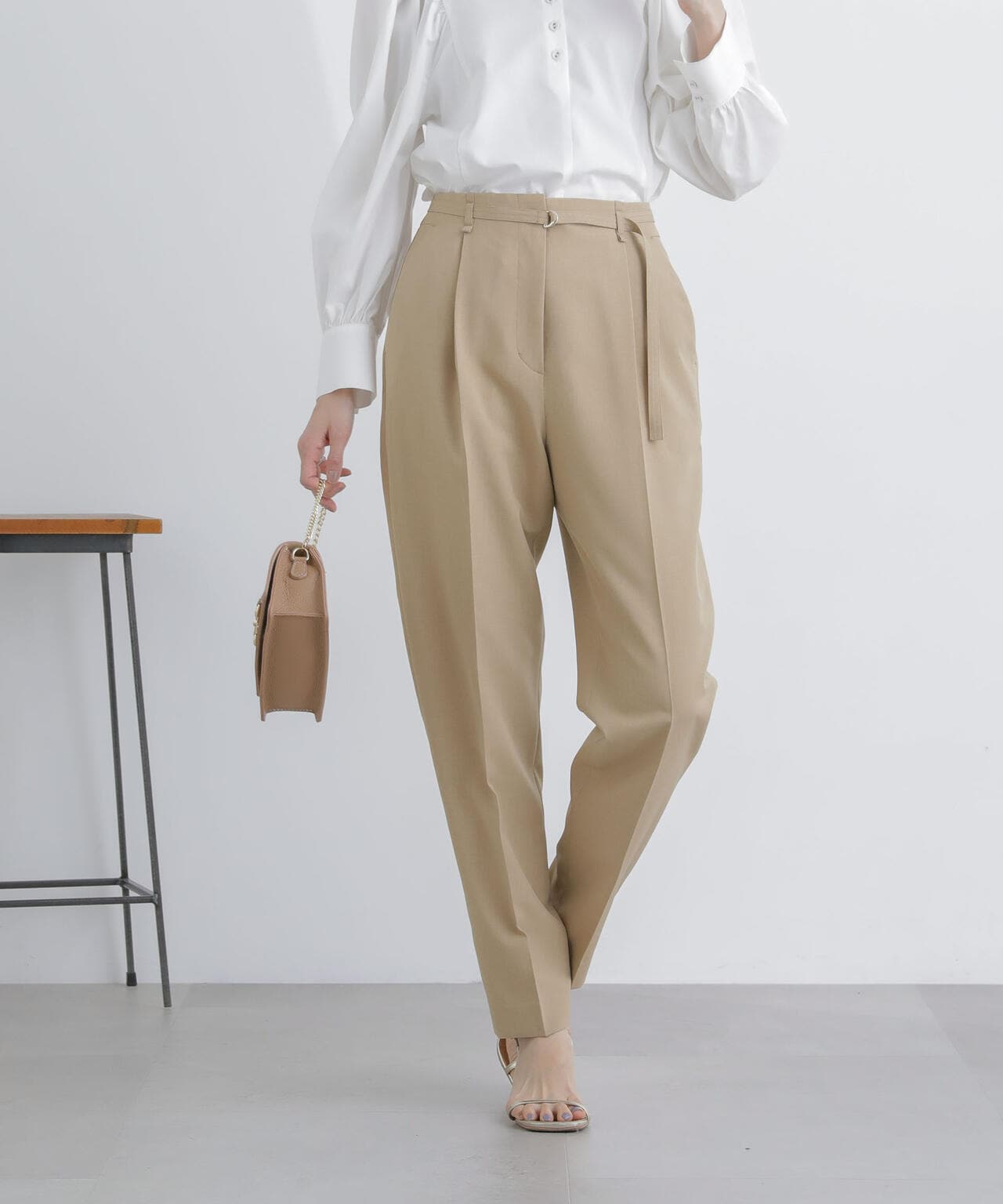 ライトファンクション ベルト付きタックテーパードパンツ(セットアップ可)