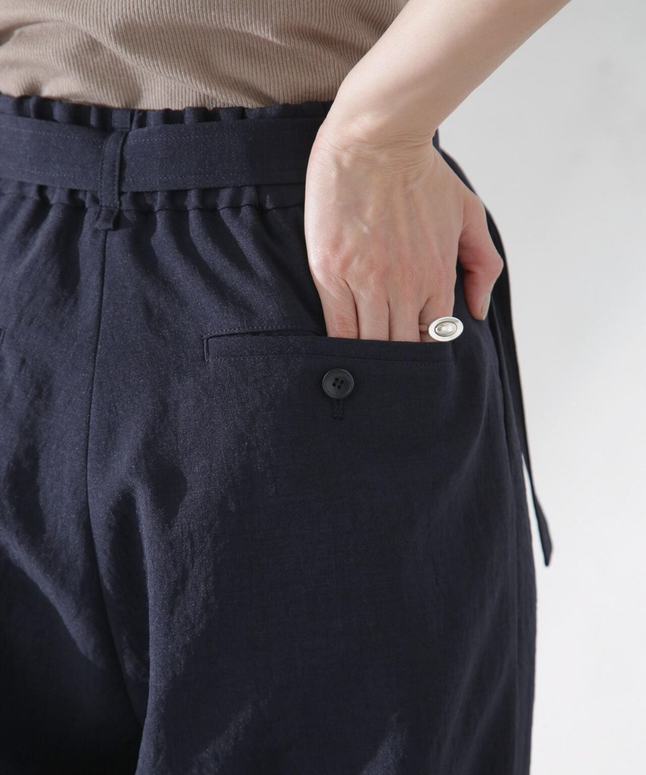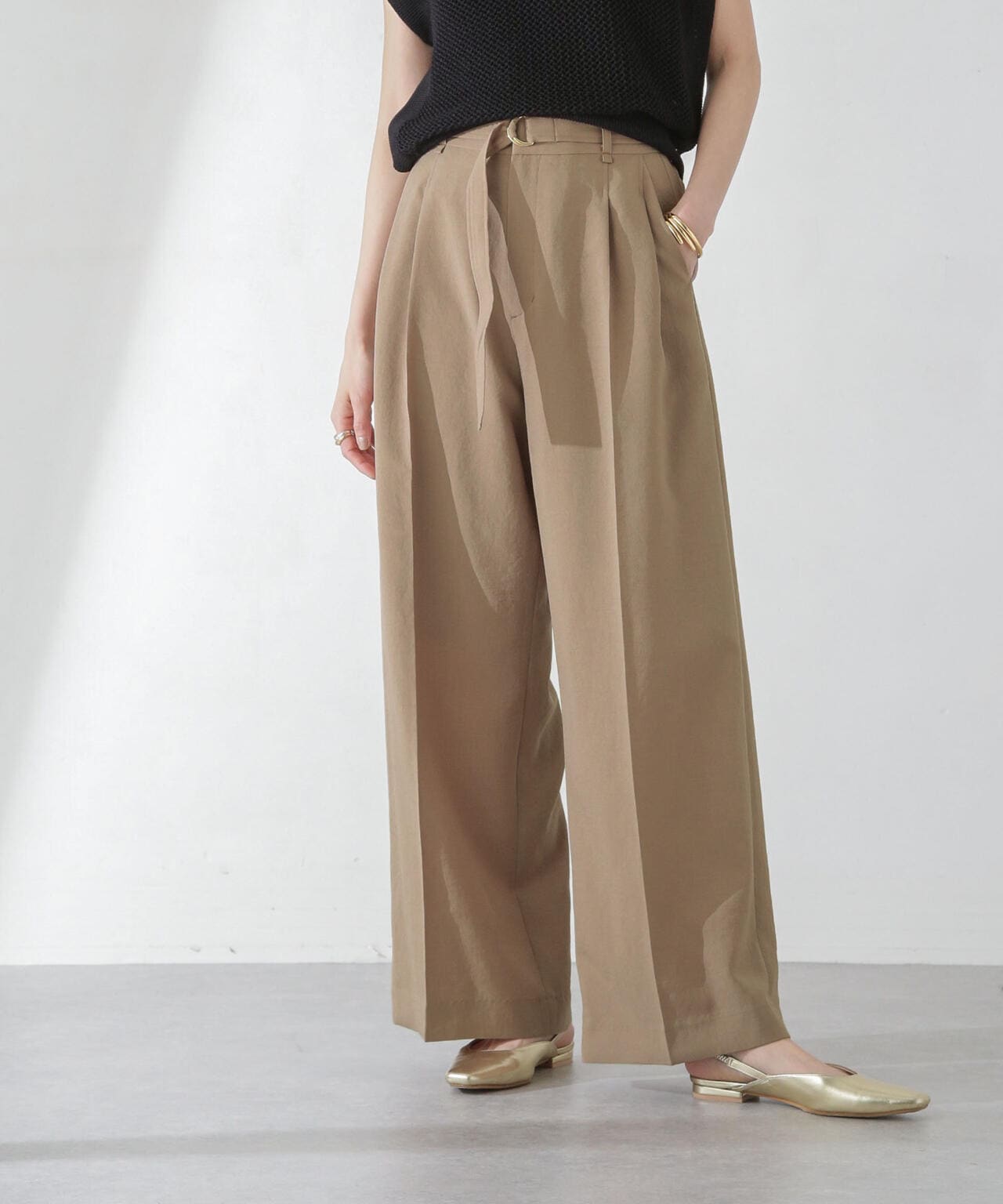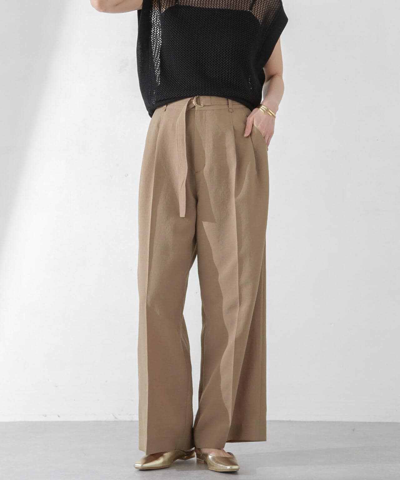 <洗濯機使用可><ノンアイロン>メランジドライ ベルト付きワイドパンツ(セットアップ可)