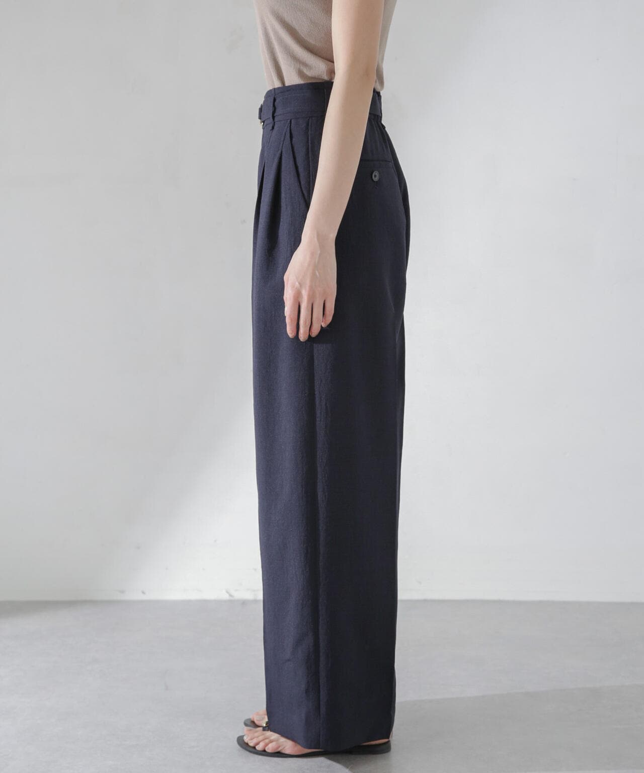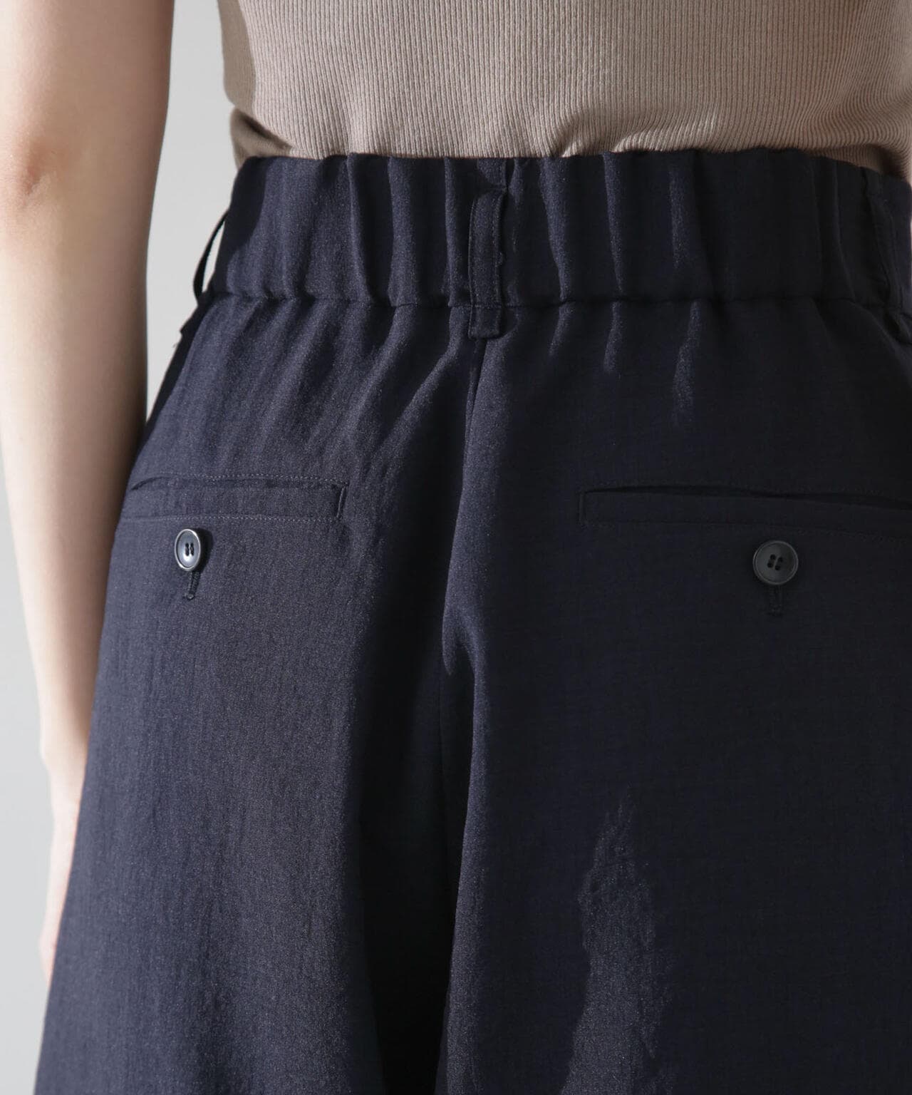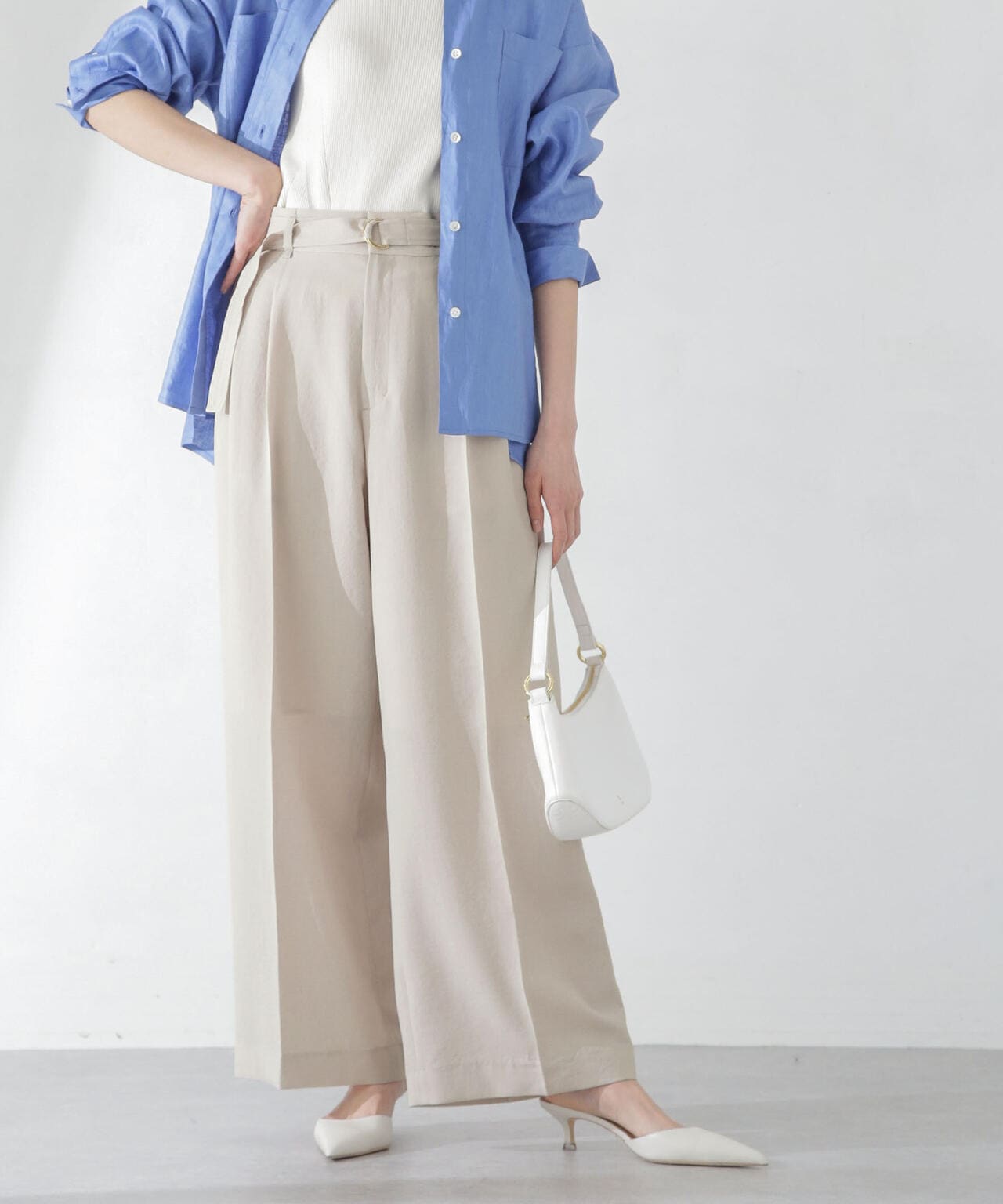 ・麻ライクながらもお手入れしやすいメランジドライシリーズのワイドパンツ