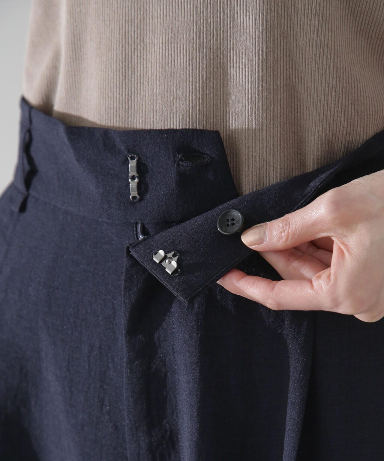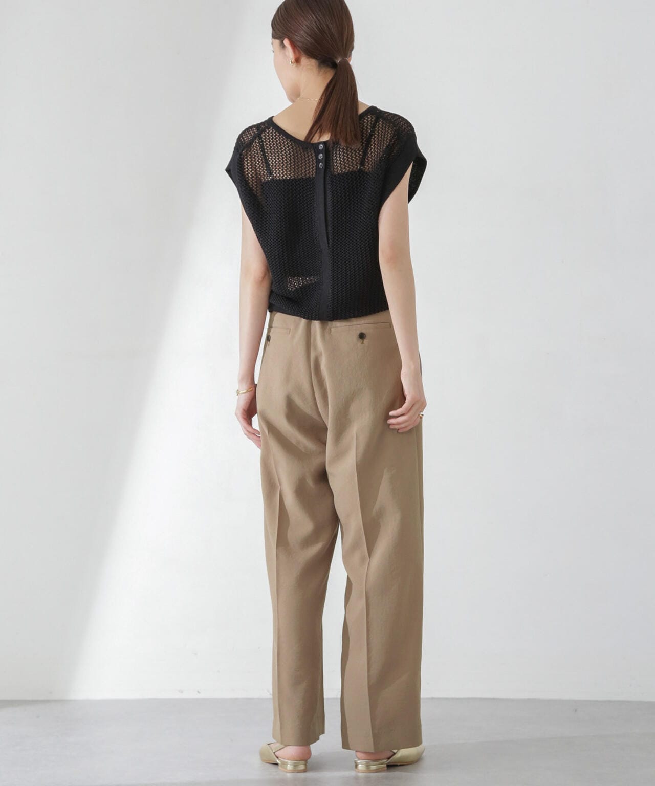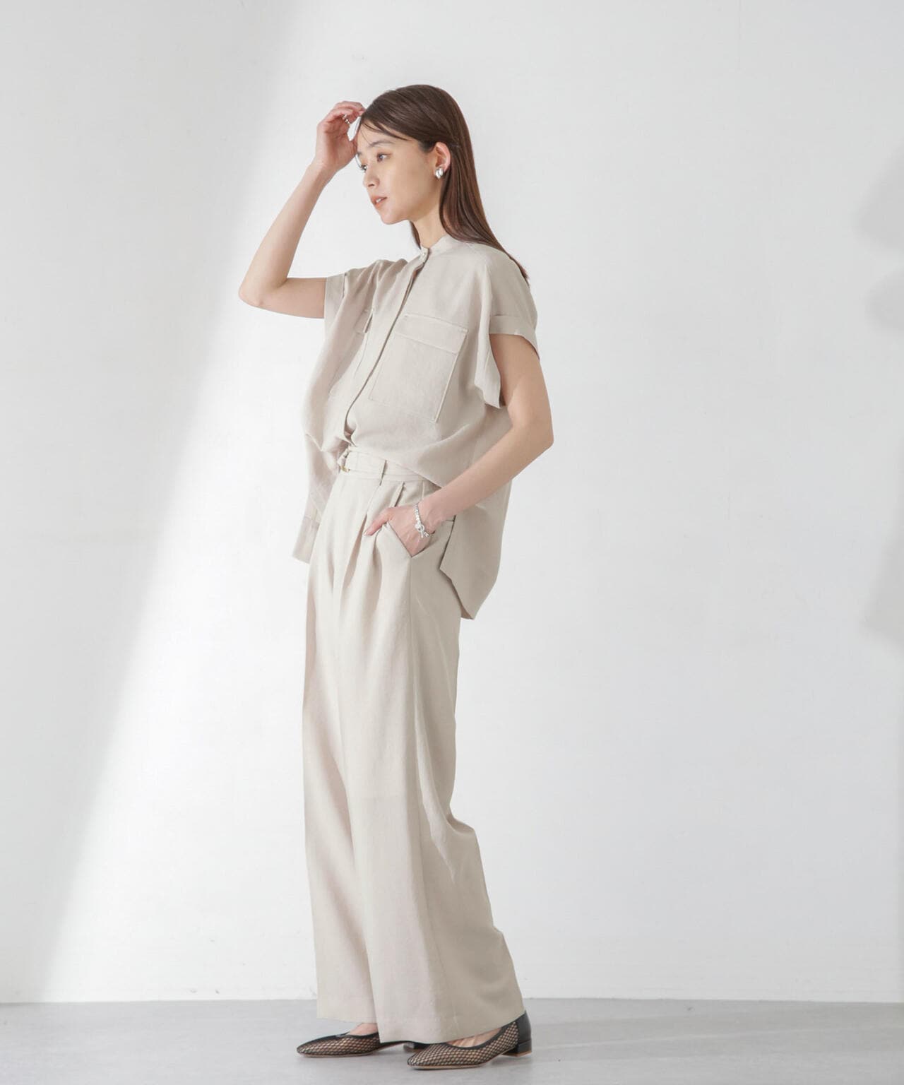・麻ライクながらもお手入れしやすいメランジドライシリーズのワイドパンツ
