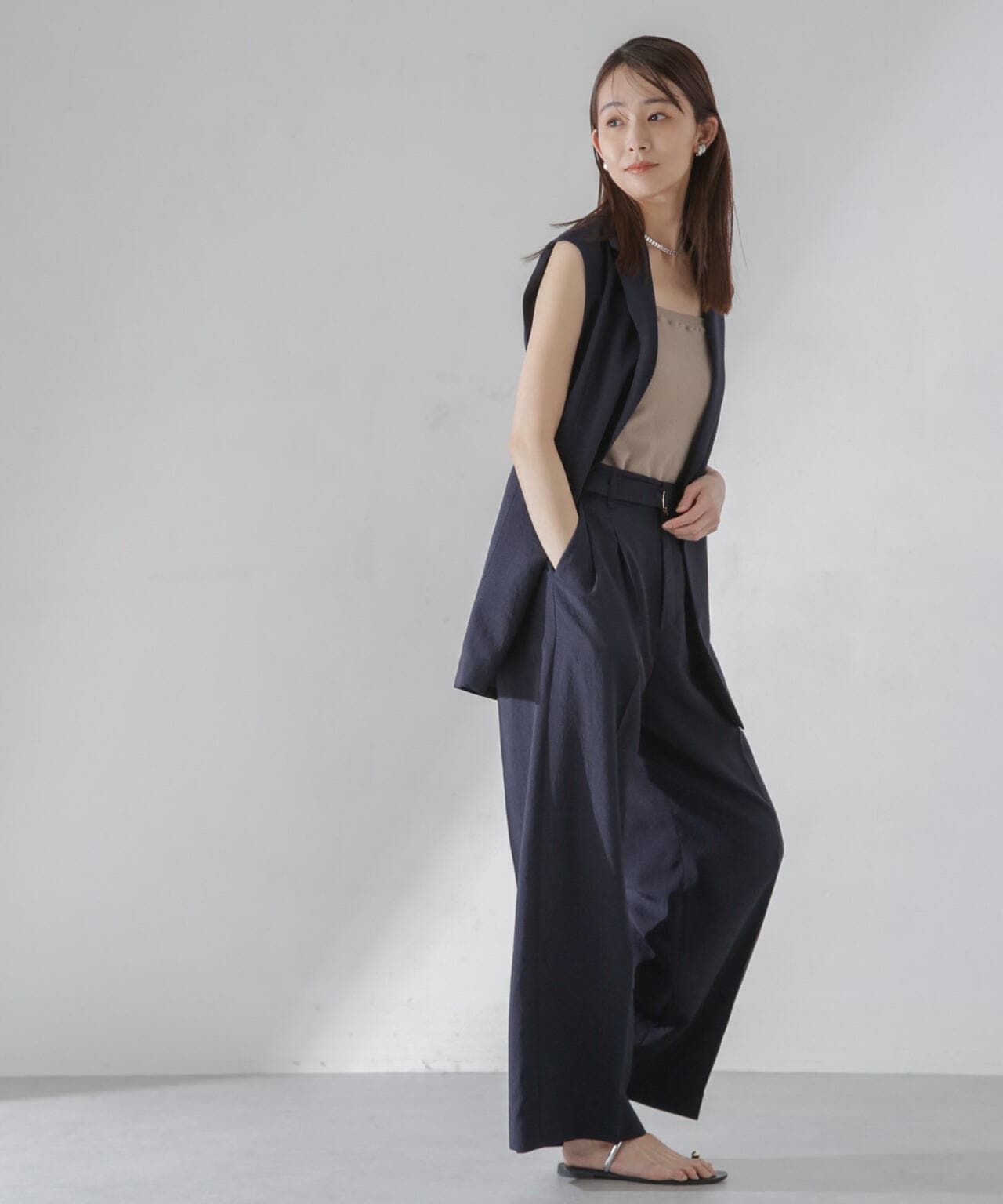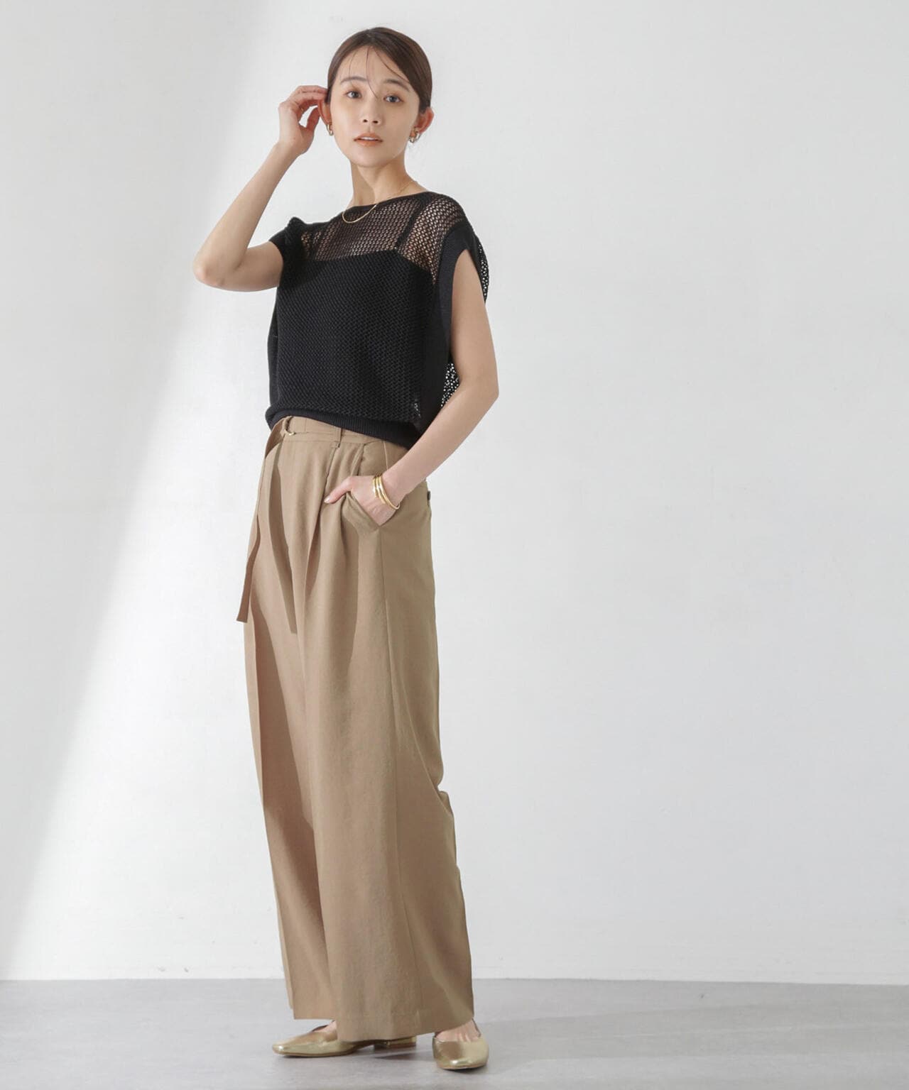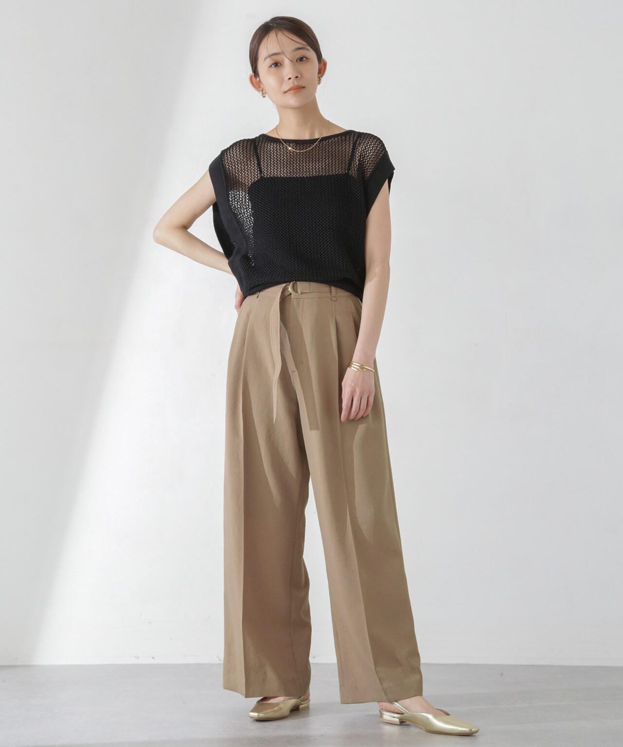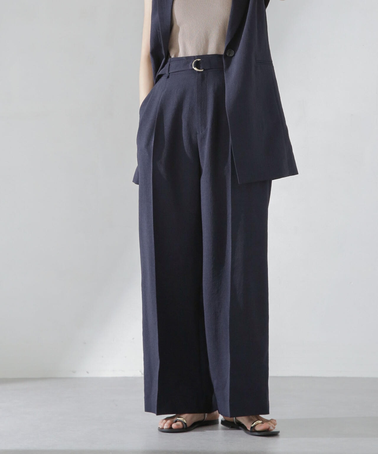 6694227311 メランジドライ ベルト付きワイドパンツ(セットアップ可)