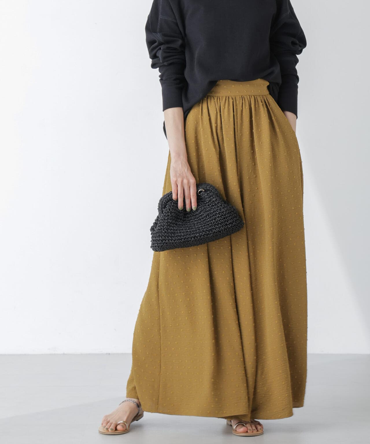 キュロットのようなデザインで、足さばきも良いドットワイドパンツ。小さめのドット柄が幼くなり過ぎず大人な印象で、サイドにポケットが付いているのも嬉しいポイント◎。程よくワイドなシルエットで合わせやすく、カジュアルからフェミニンまで難なくマッチします。