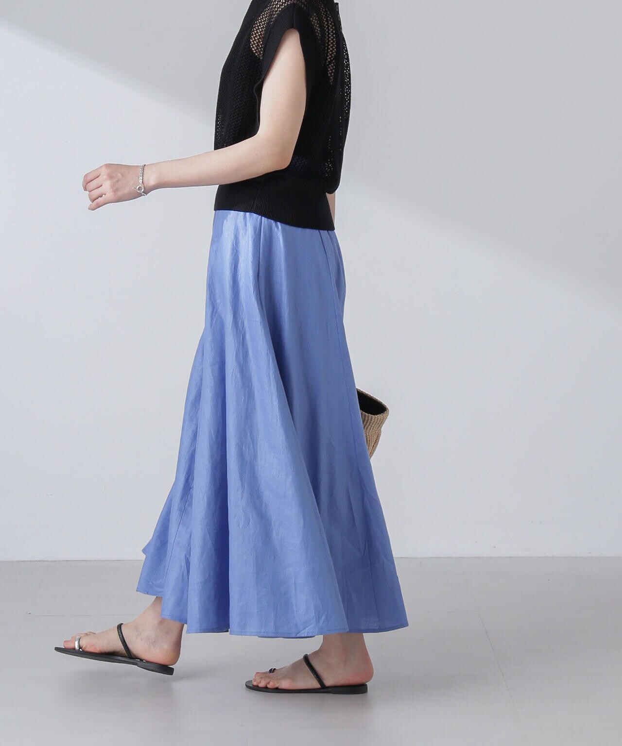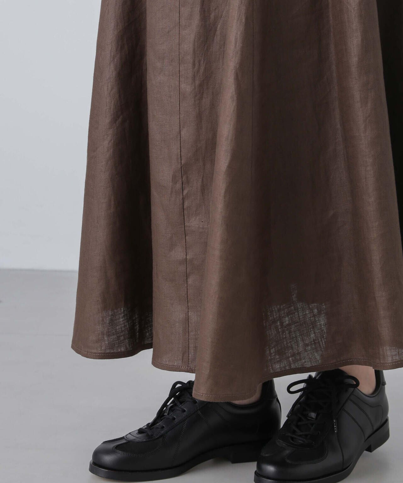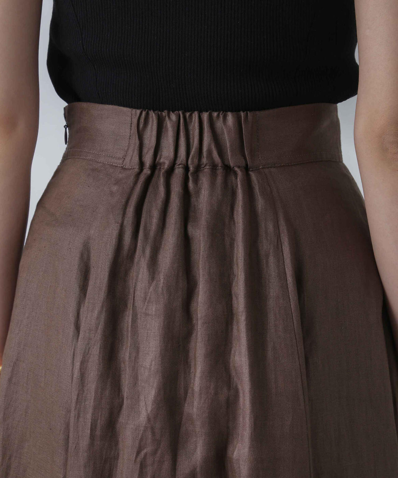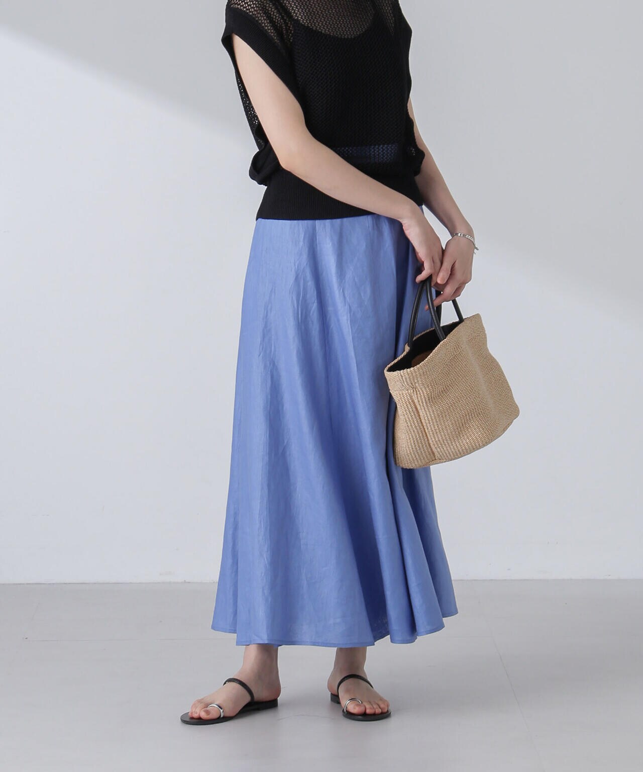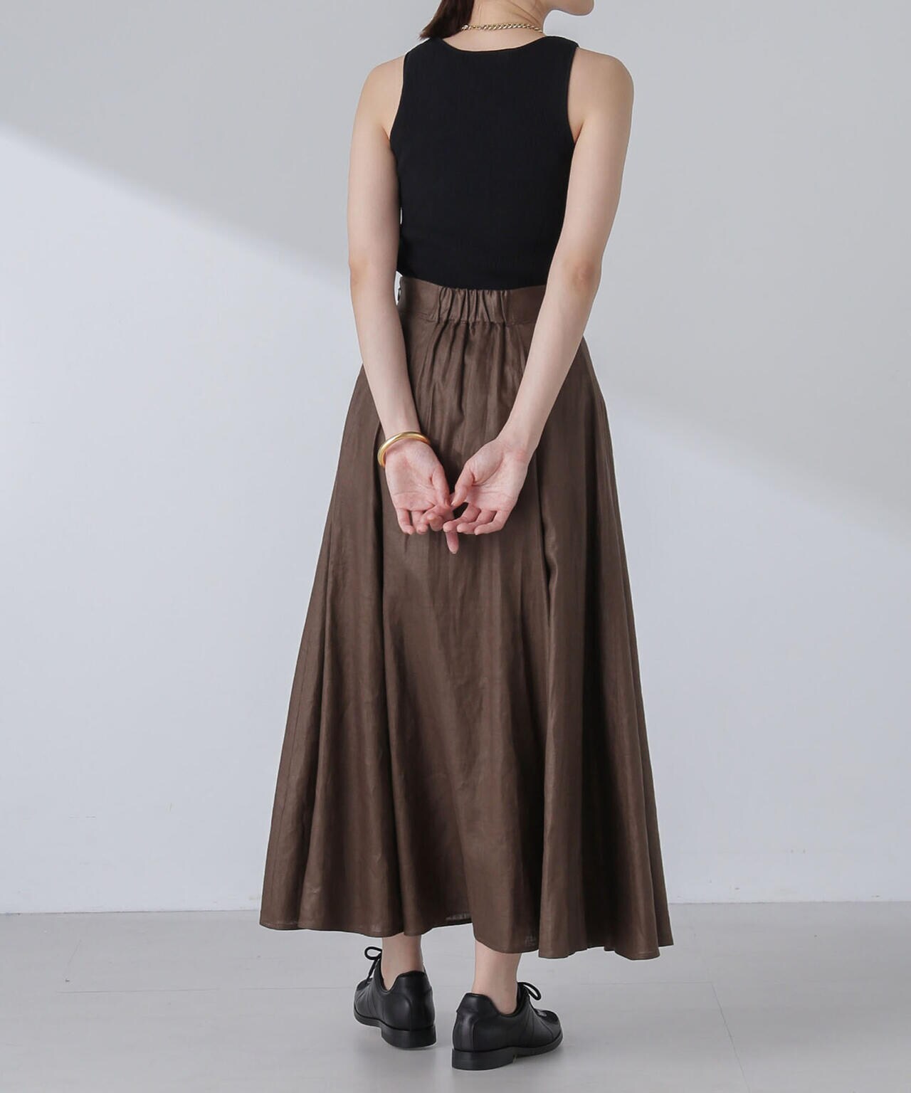 涼し気なリネン生地で仕立てたフレアスカート。ウエストはすっきりと、裾にかけてボリューム感を出すことで、スタイルアップが叶うシルエットに仕上げました。同シリーズのシャツやジレとセットアップスタイルで通勤などのオンスタイルにもおすすめです。