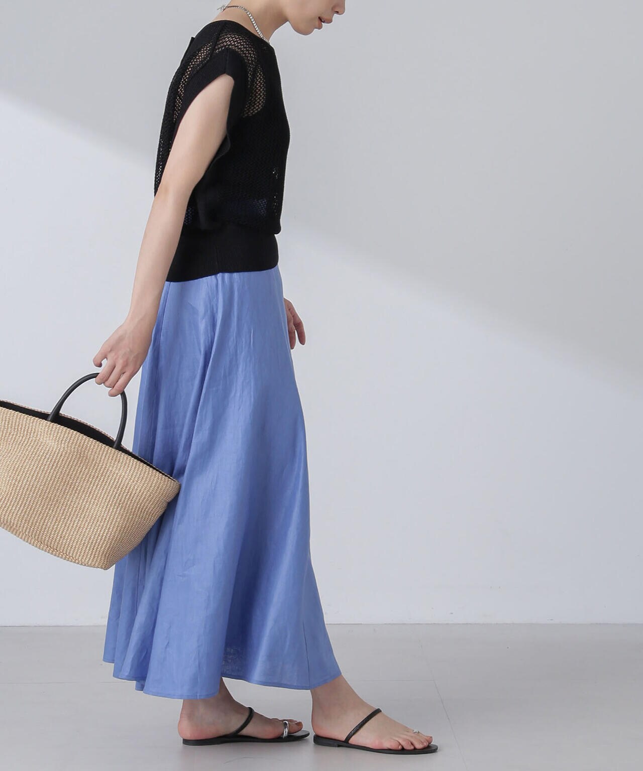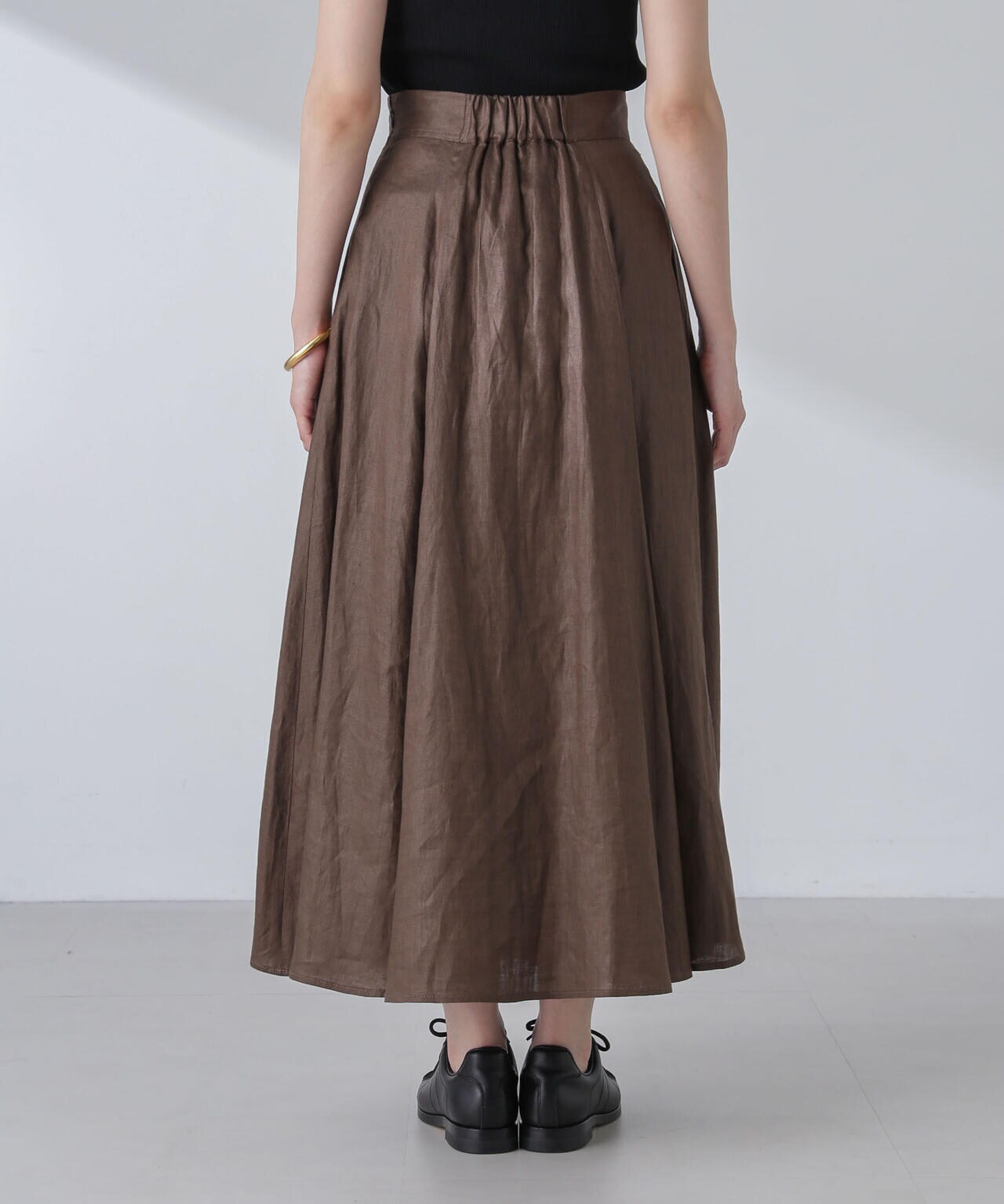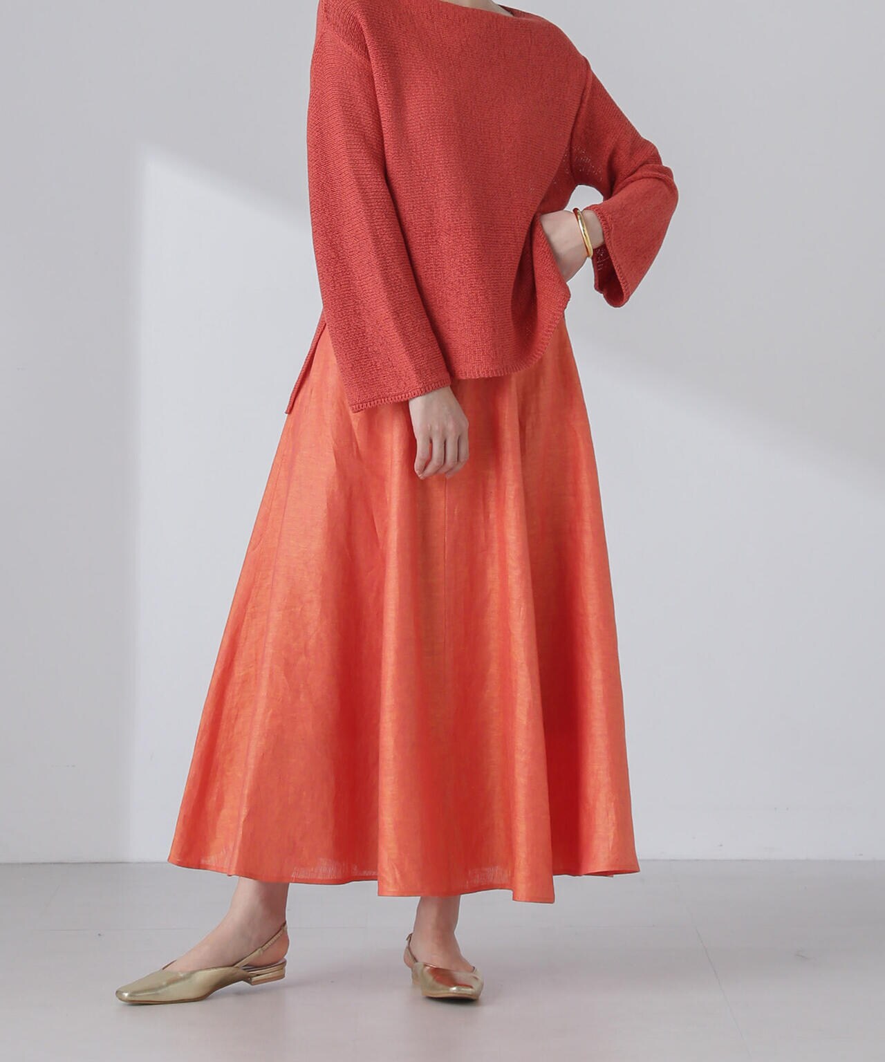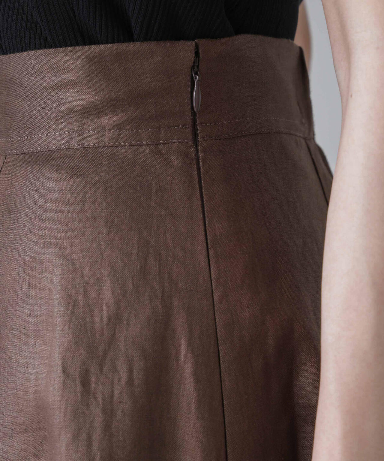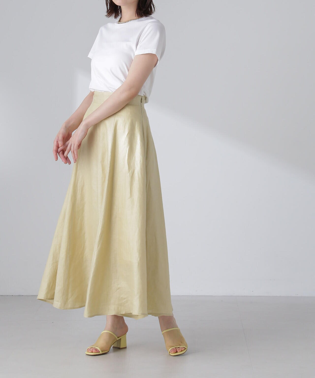 涼し気なリネン生地で仕立てたフレアスカート。ウエストはすっきりと、裾にかけてボリューム感を出すことで、スタイルアップが叶うシルエットに仕上げました。同シリーズのシャツやジレとセットアップスタイルで通勤などのオンスタイルにもおすすめです。