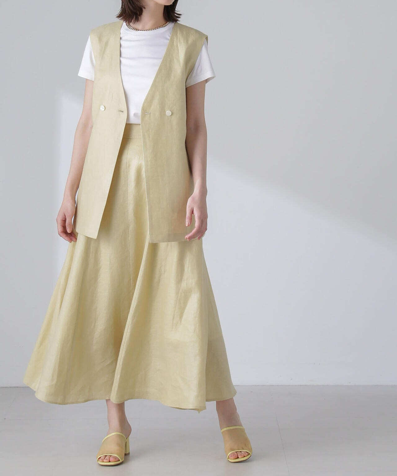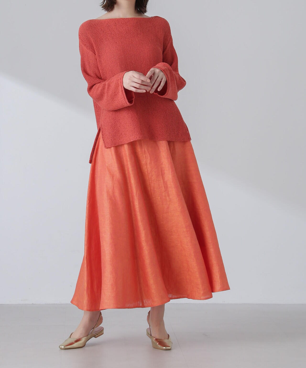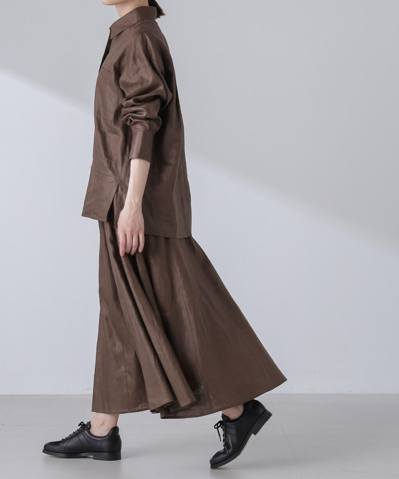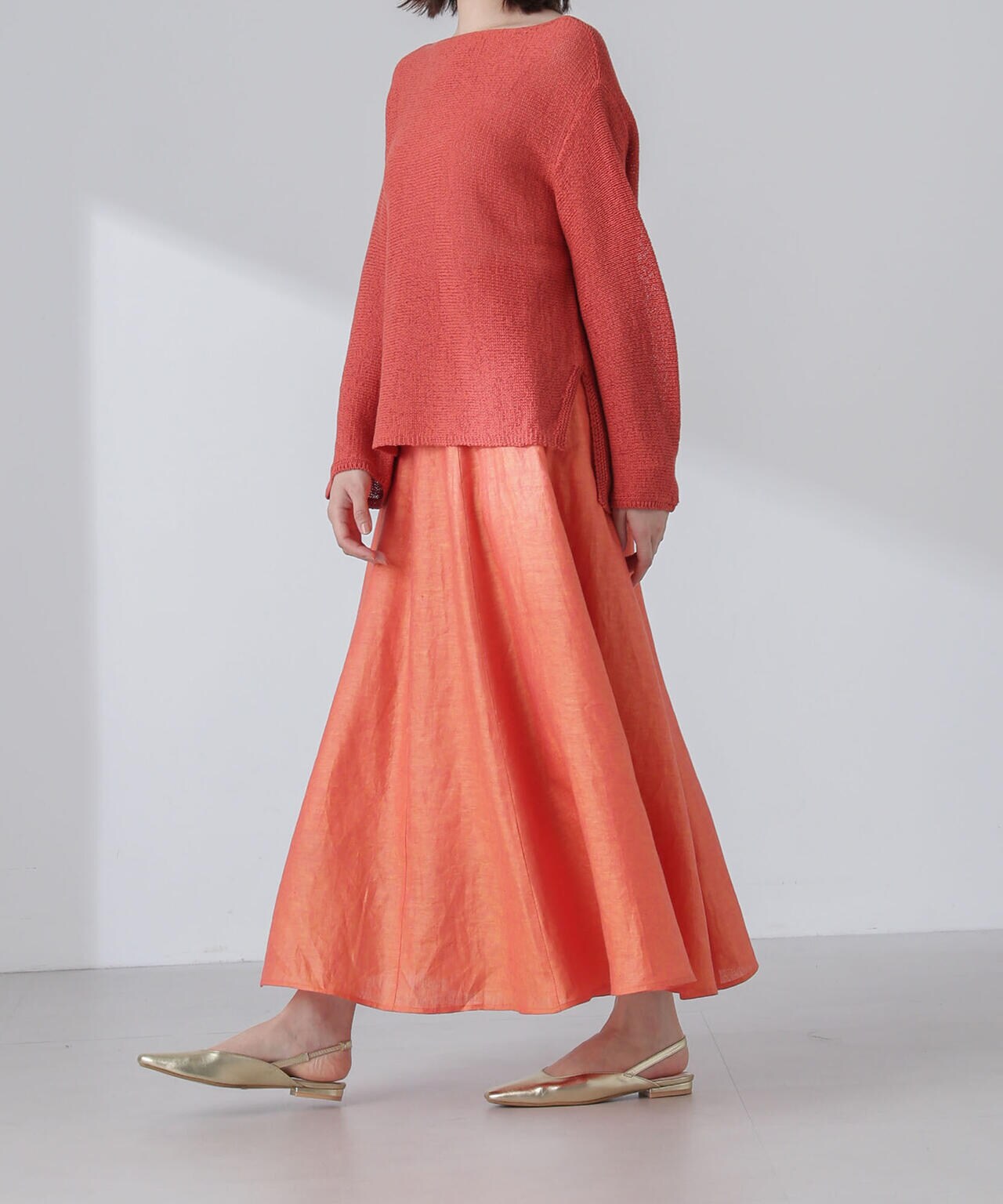 涼し気なリネン生地で仕立てたフレアスカート。ウエストはすっきりと、裾にかけてボリューム感を出すことで、スタイルアップが叶うシルエットに仕上げました。同シリーズのシャツやジレとセットアップスタイルで通勤などのオンスタイルにもおすすめです。