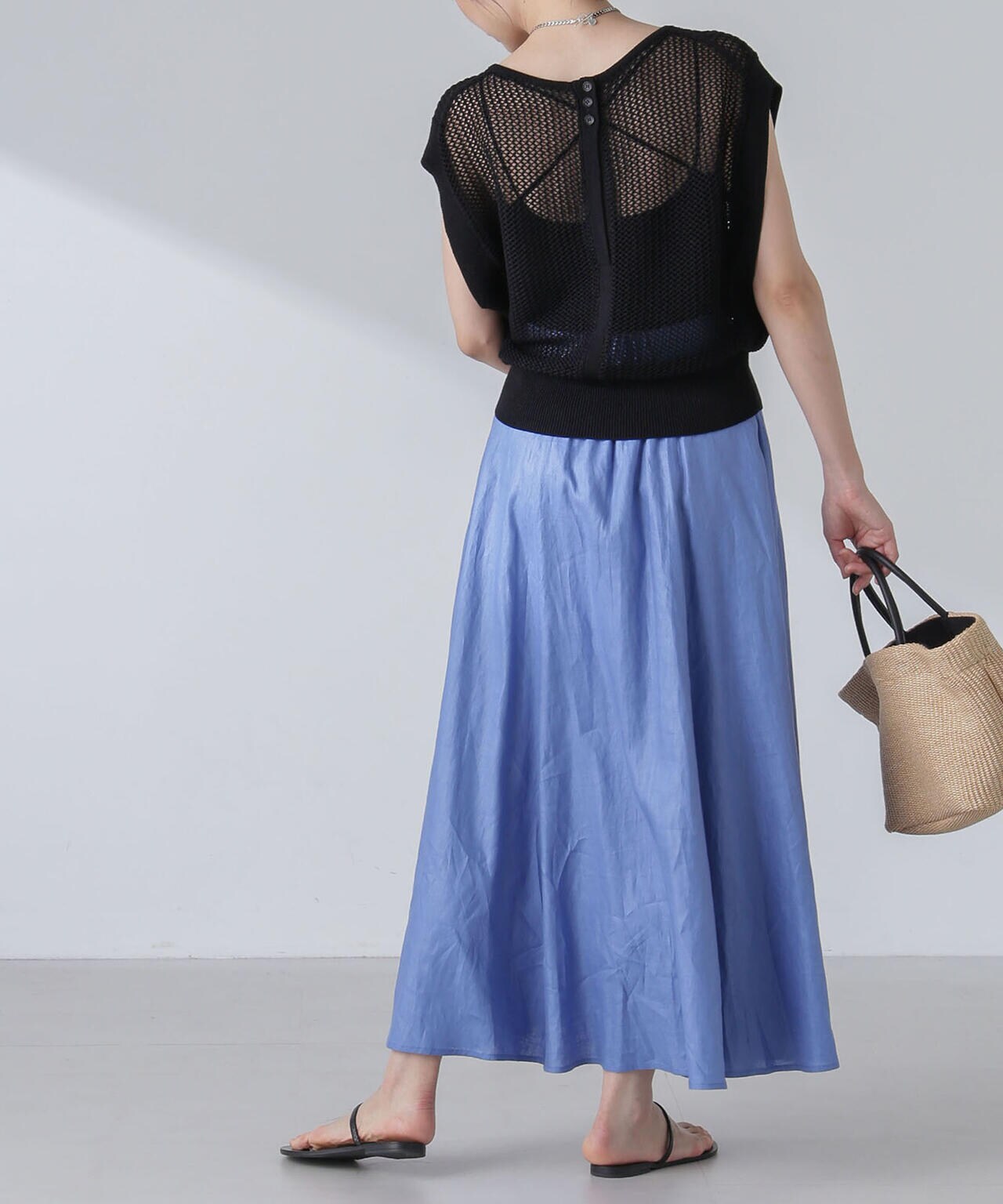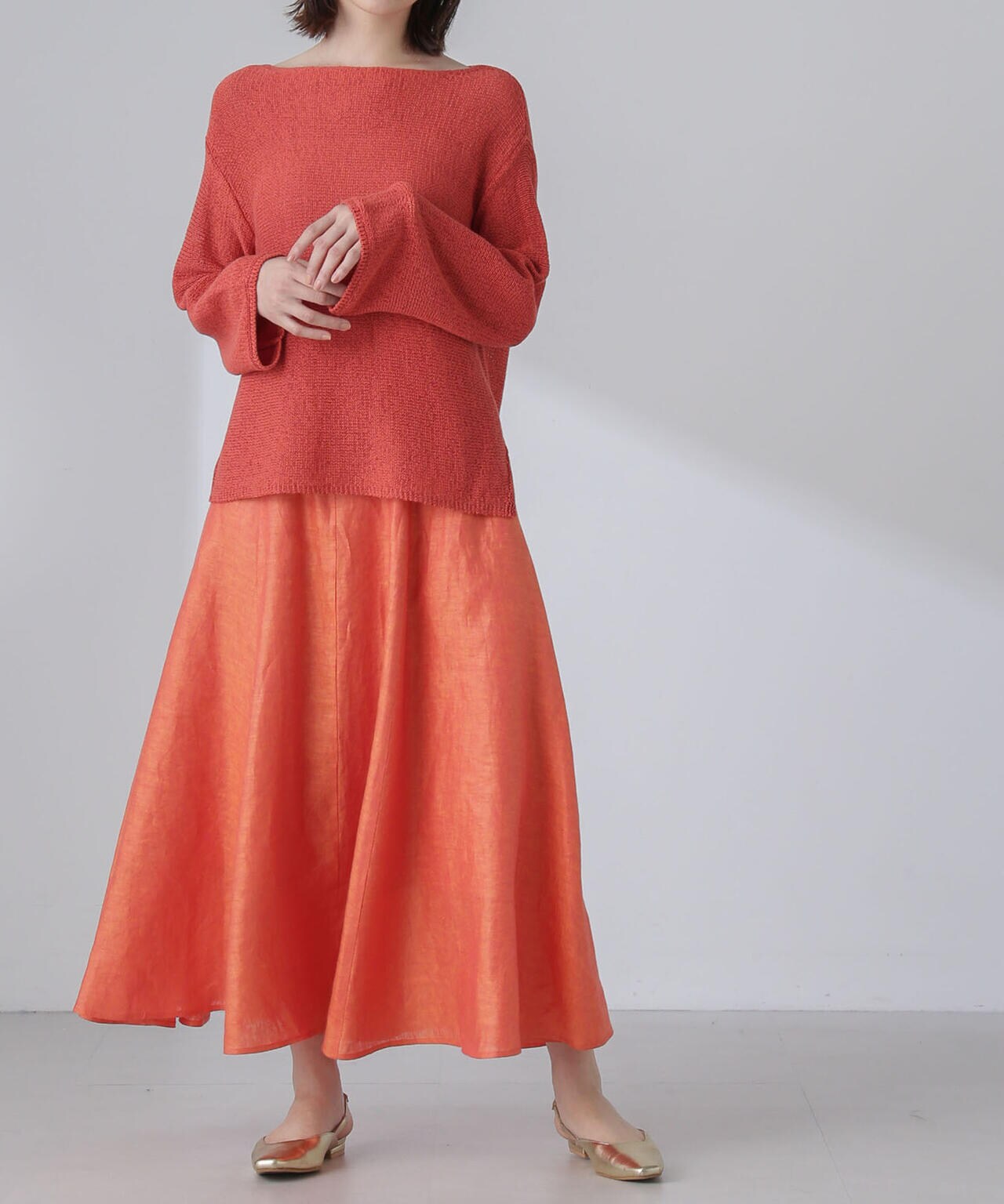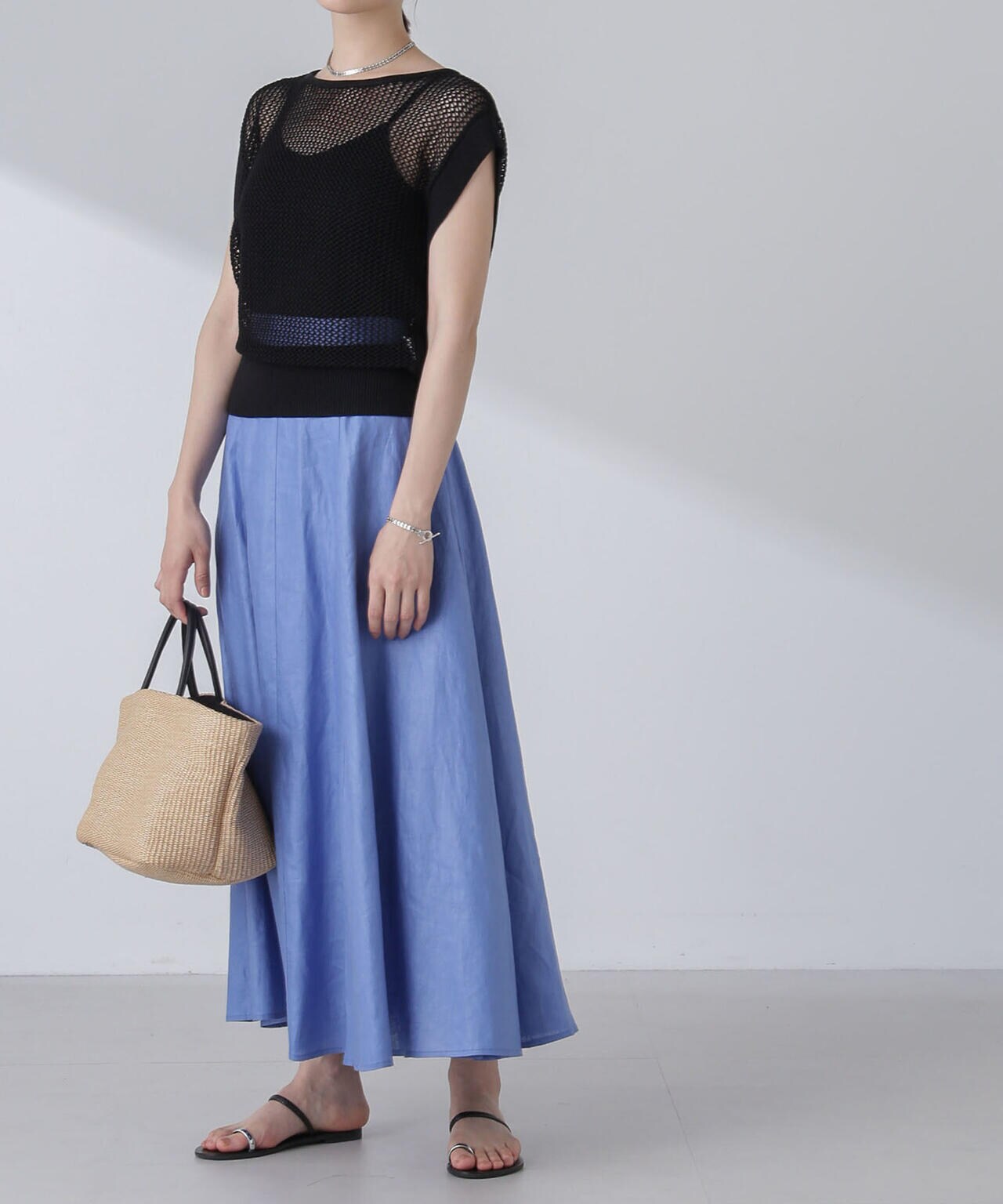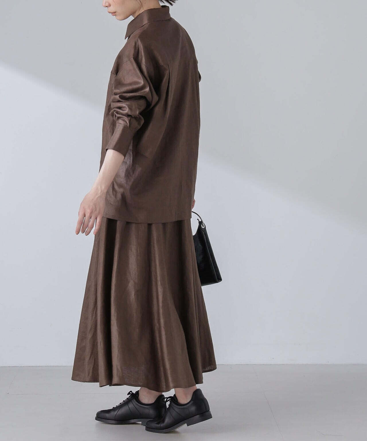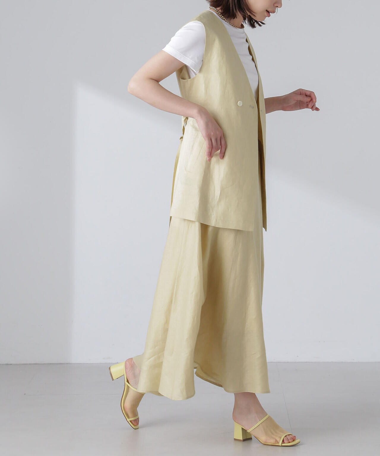 涼し気なリネン生地で仕立てたフレアスカート。ウエストはすっきりと、裾にかけてボリューム感を出すことで、スタイルアップが叶うシルエットに仕上げました。同シリーズのシャツやジレとセットアップスタイルで通勤などのオンスタイルにもおすすめです。