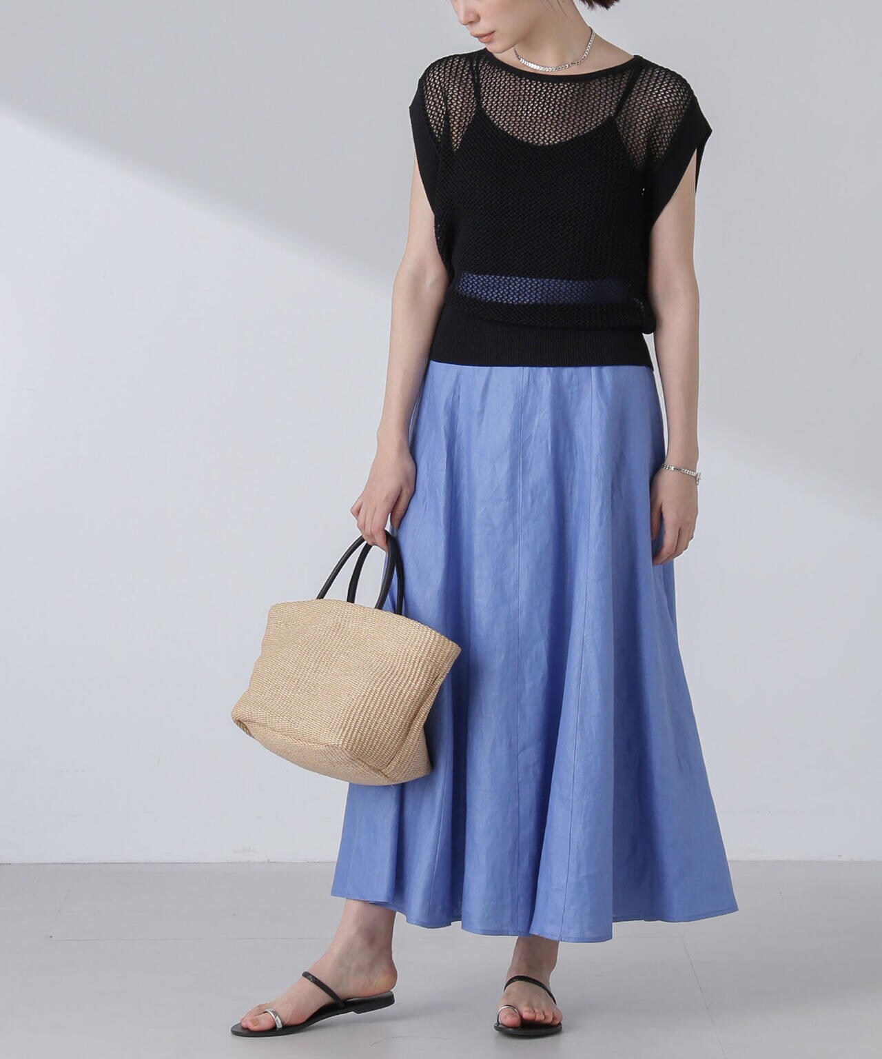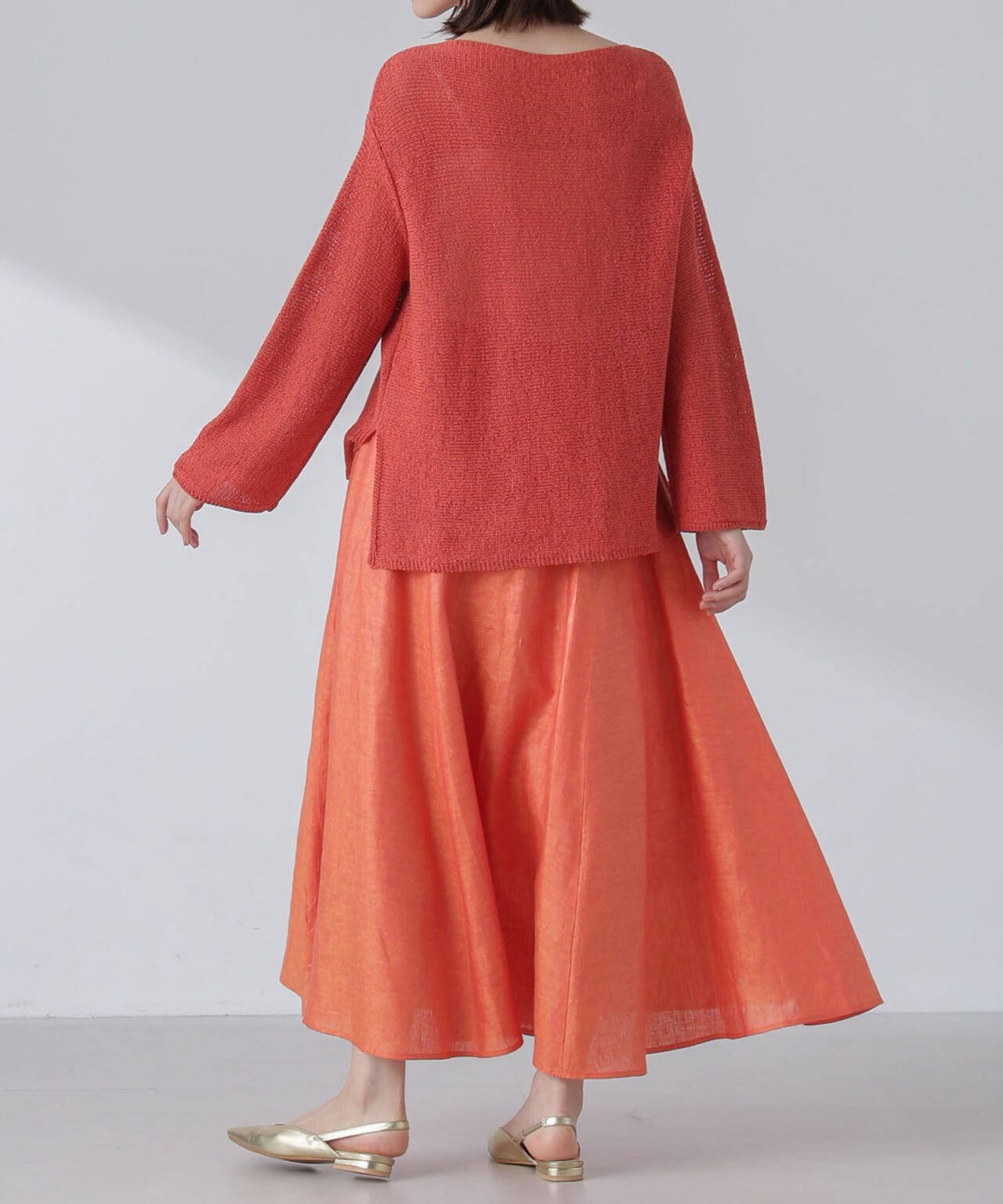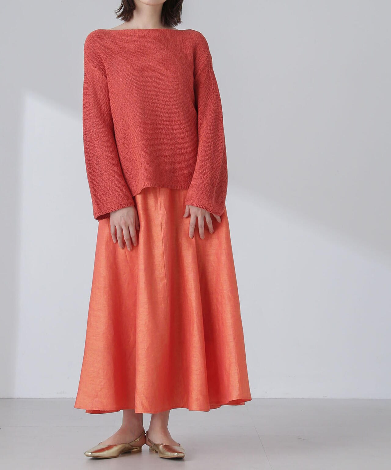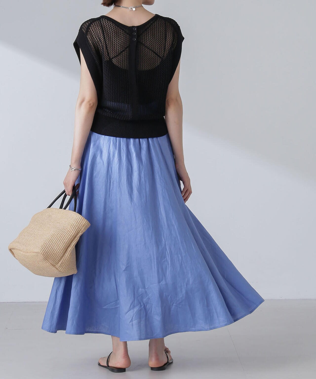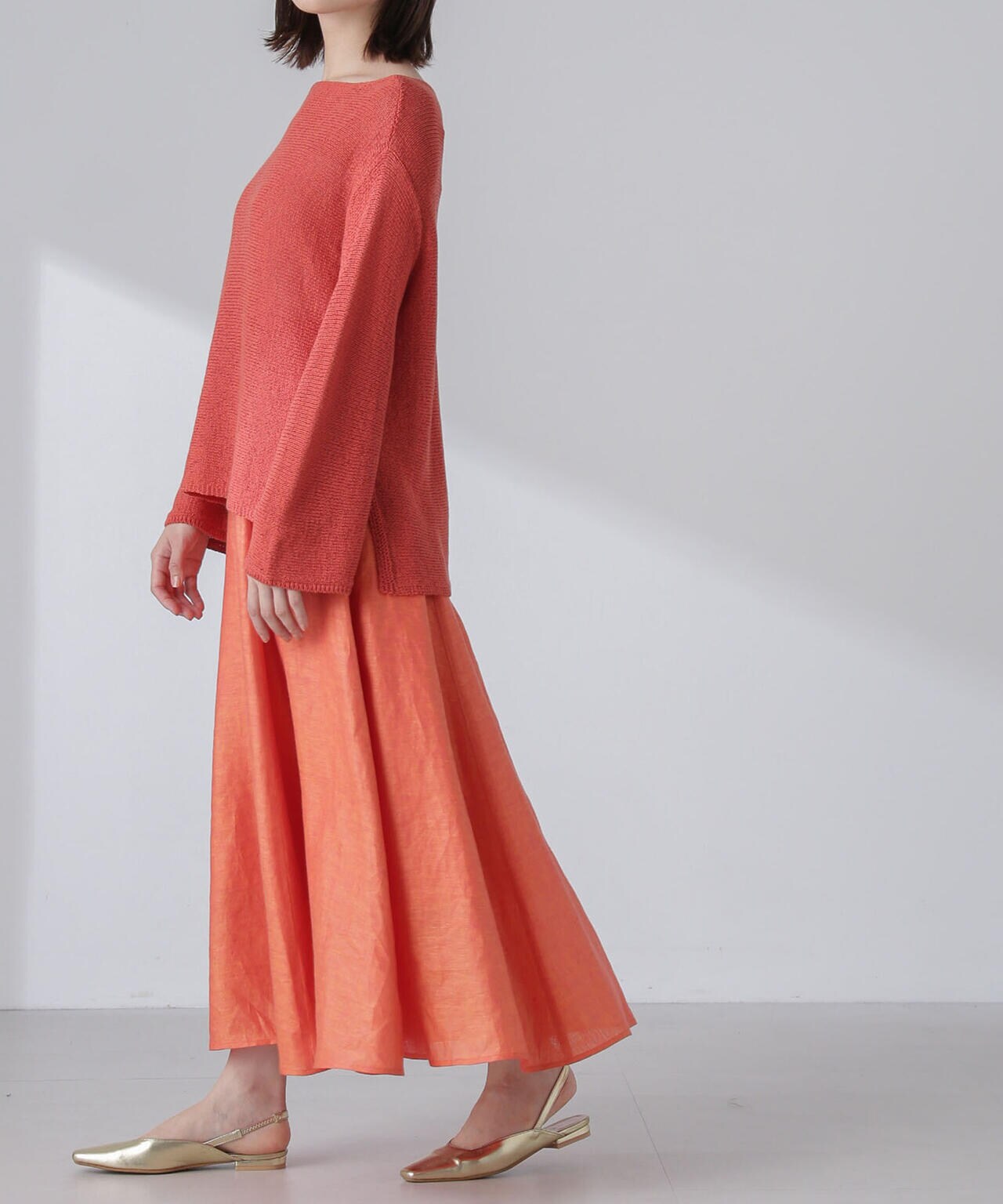 涼し気なリネン生地で仕立てたフレアスカート。ウエストはすっきりと、裾にかけてボリューム感を出すことで、スタイルアップが叶うシルエットに仕上げました。同シリーズのシャツやジレとセットアップスタイルで通勤などのオンスタイルにもおすすめです。