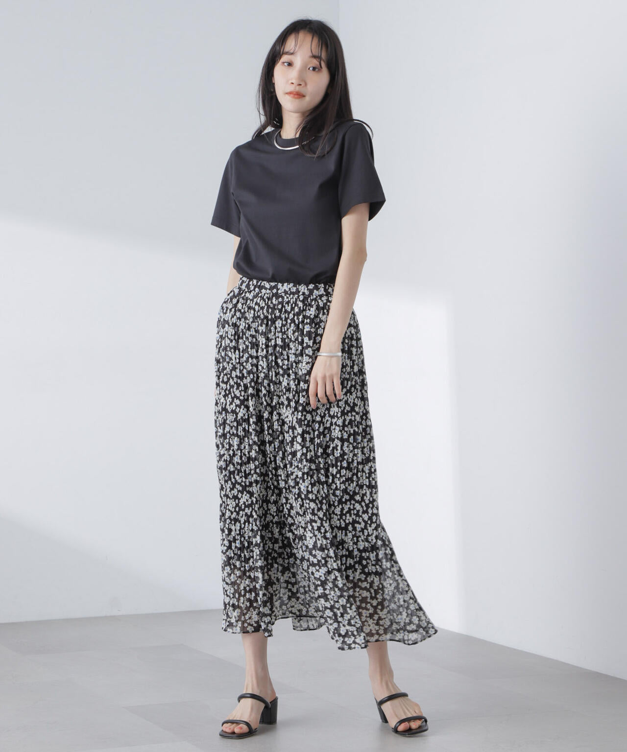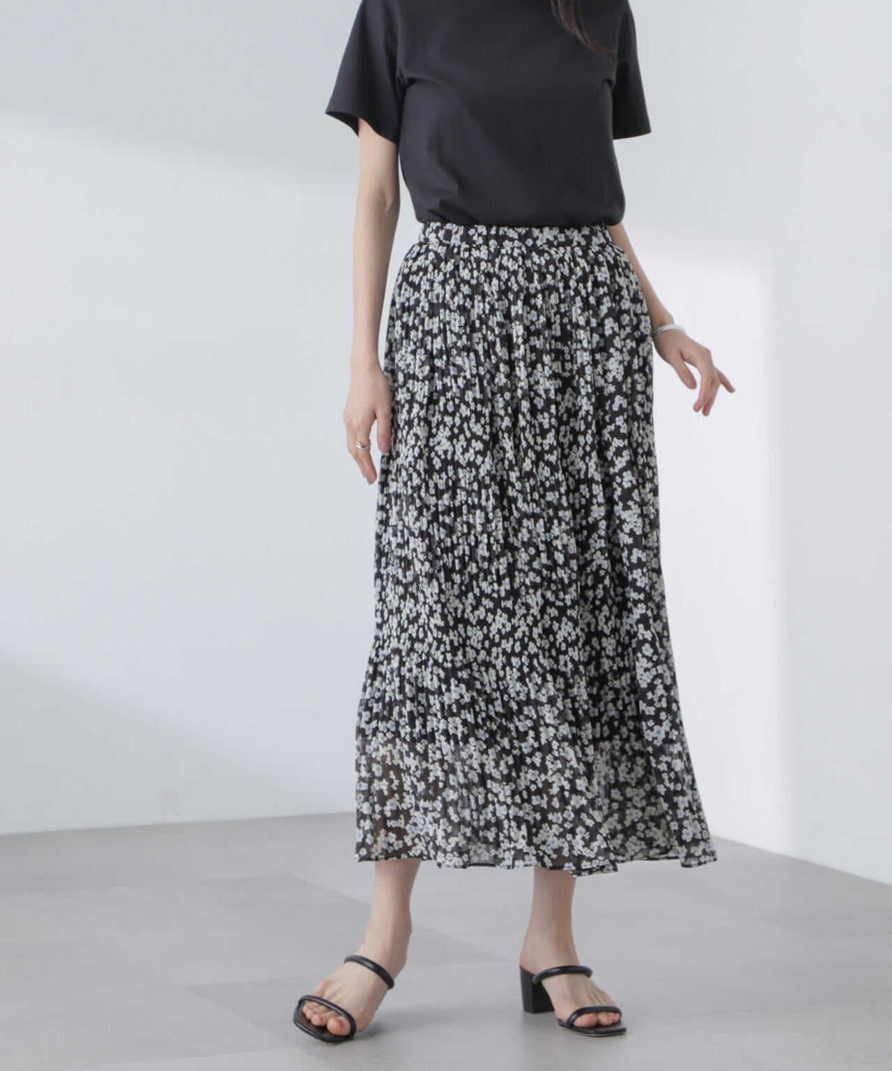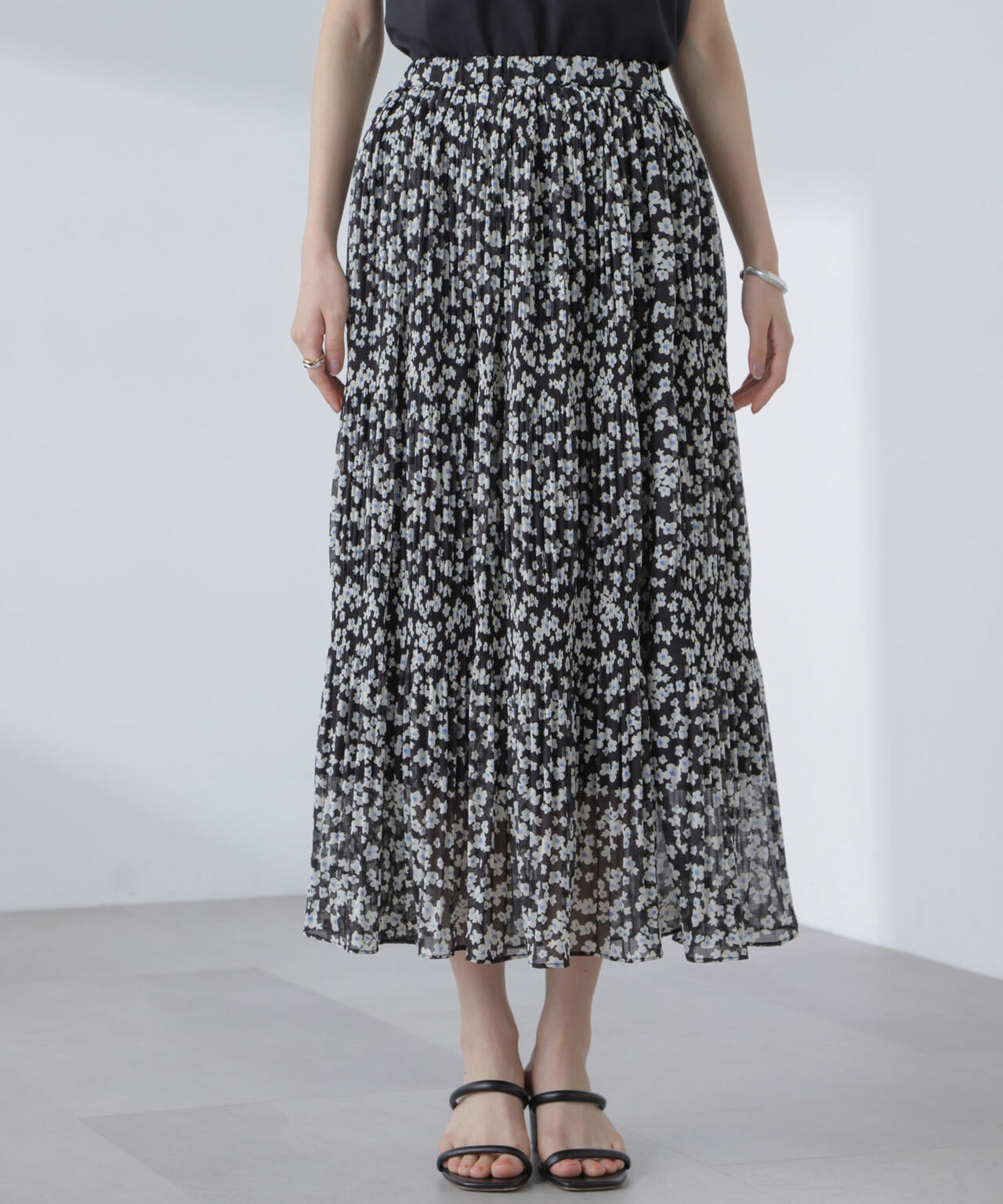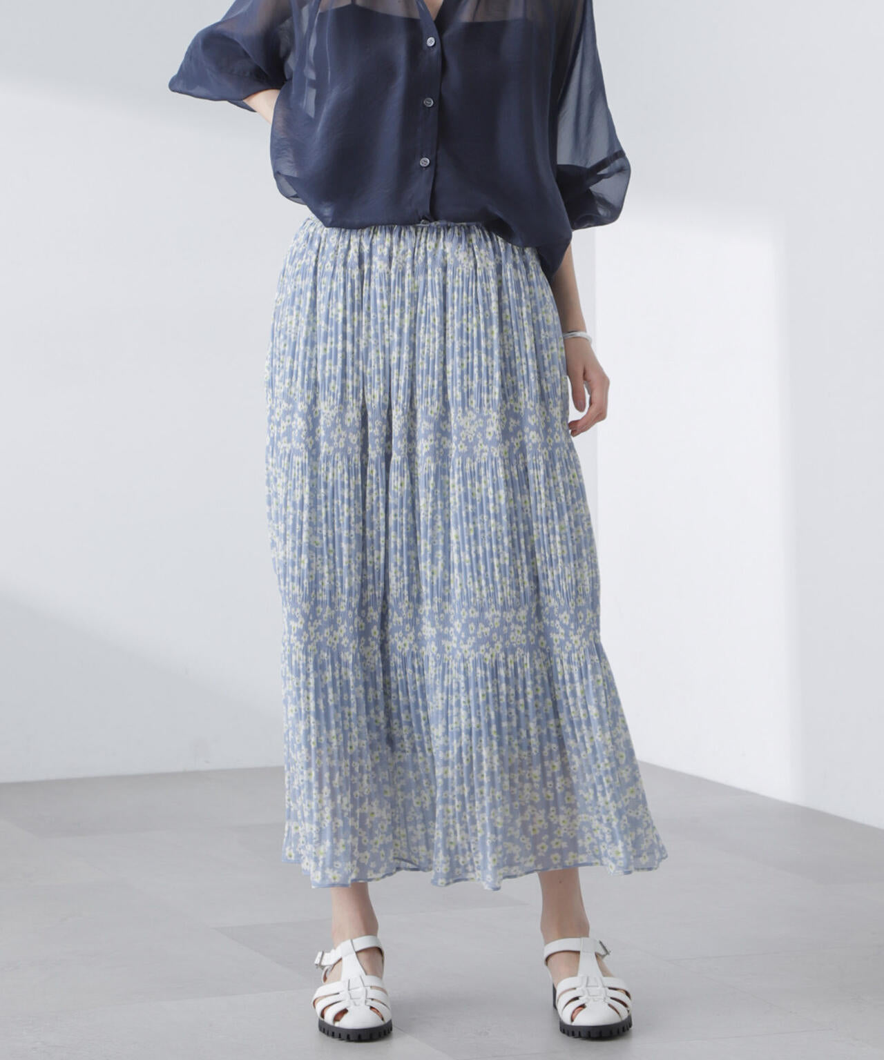 ・マジョリカプリーツでティアード感を持たせた小花柄スカート