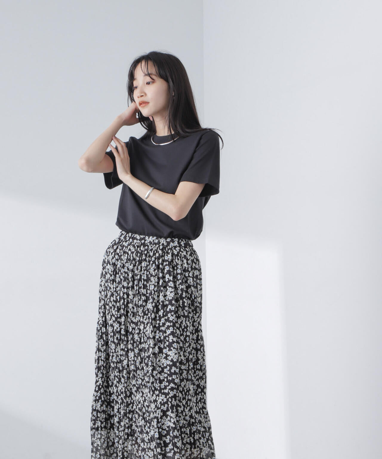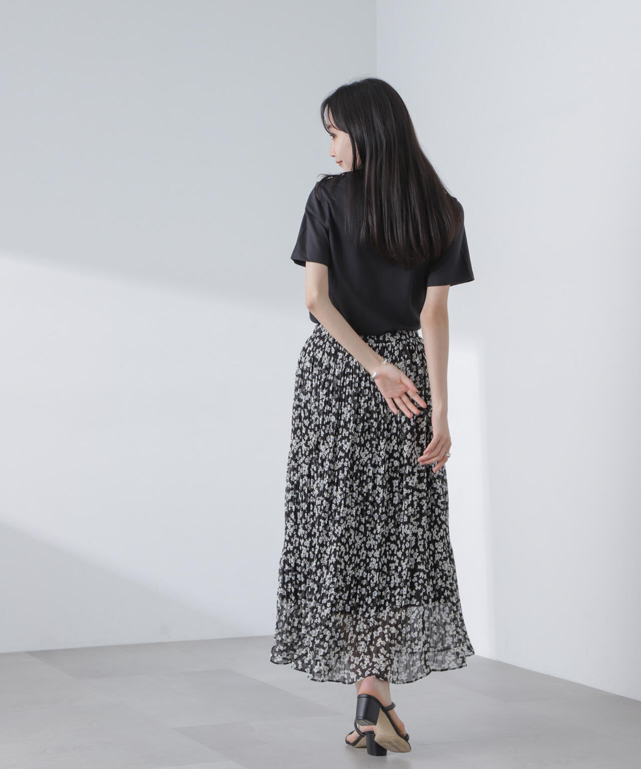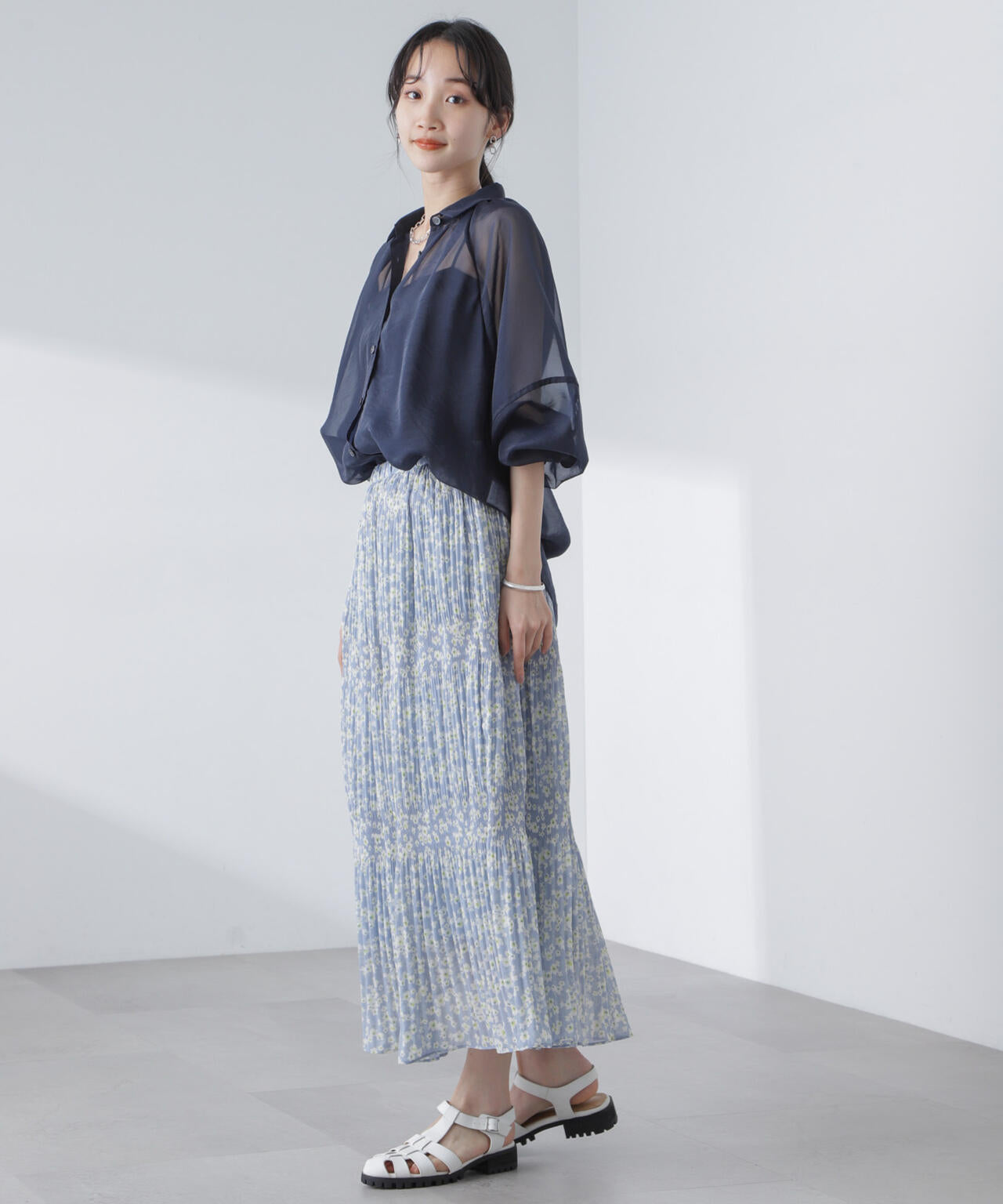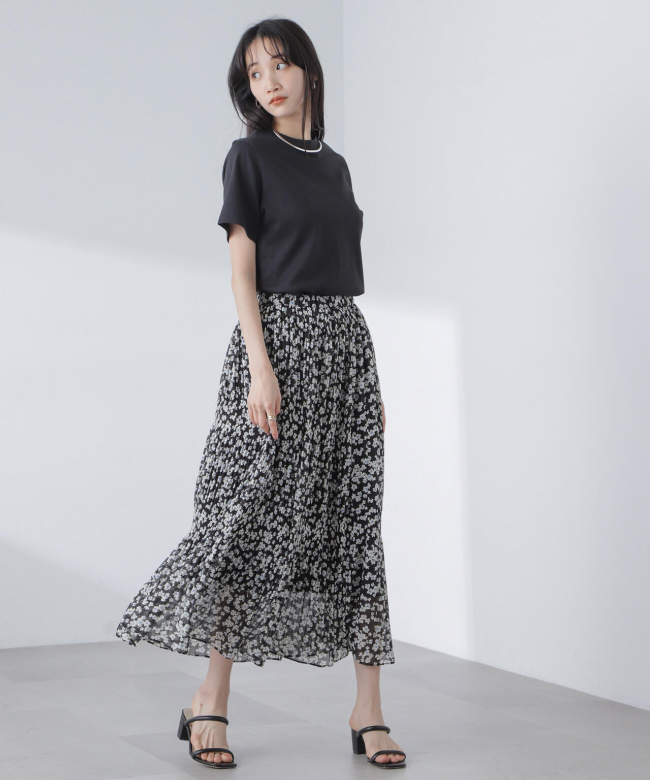 ・マジョリカプリーツでティアード感を持たせた小花柄スカート