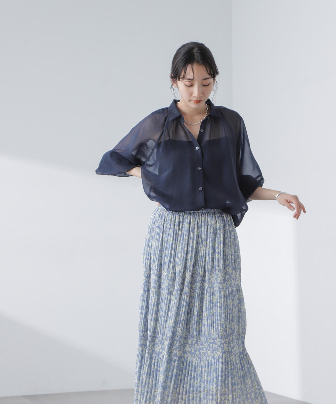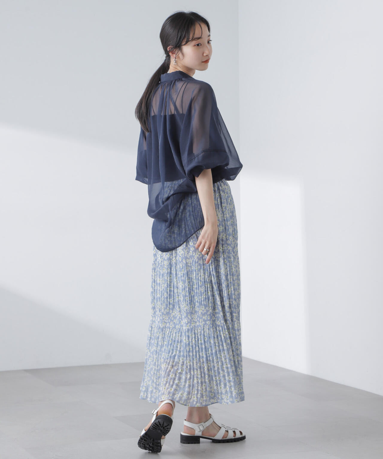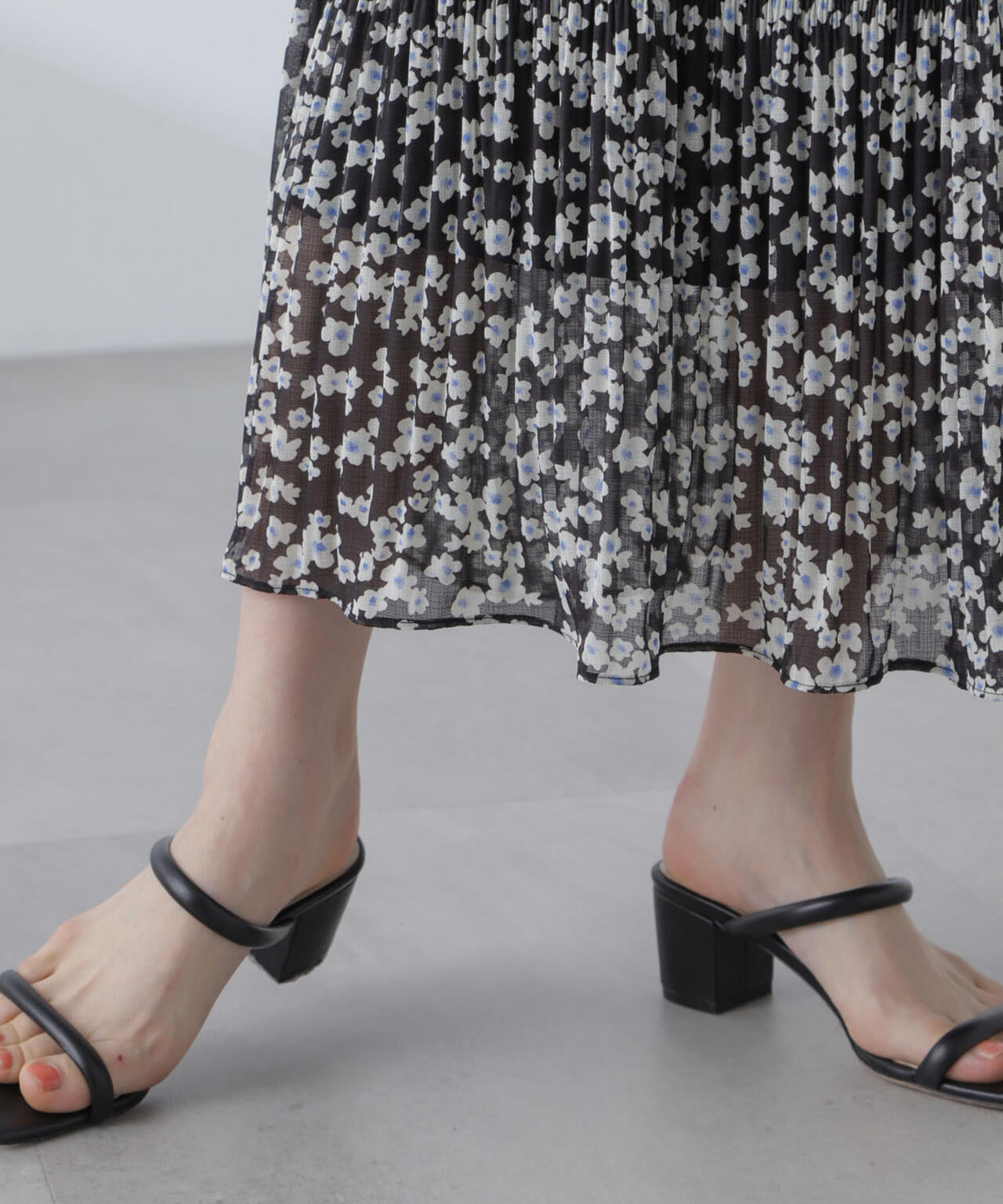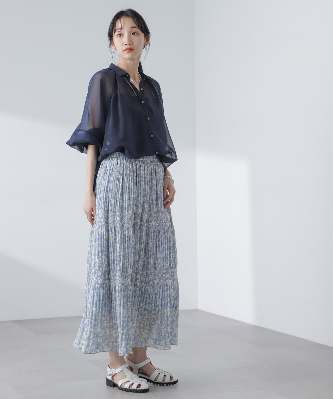 ・マジョリカプリーツでティアード感を持たせた小花柄スカート