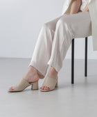 幅広いスタイルに活躍するシンプルなチャンキーヒールサンダル。アッパーとインソールをすべて同色に統一し、脱いだ際にすっきりきれいに見えるデザインに仕上げました。脱ぎ履きやすいアンクルストラップ無しのミュールタイプで、スクエアトゥがほんのりモードな雰囲気を演出。足元が華やかに映るきれいなカラーリングで、ワンピースやスカート、パンツと合わせても素敵です。