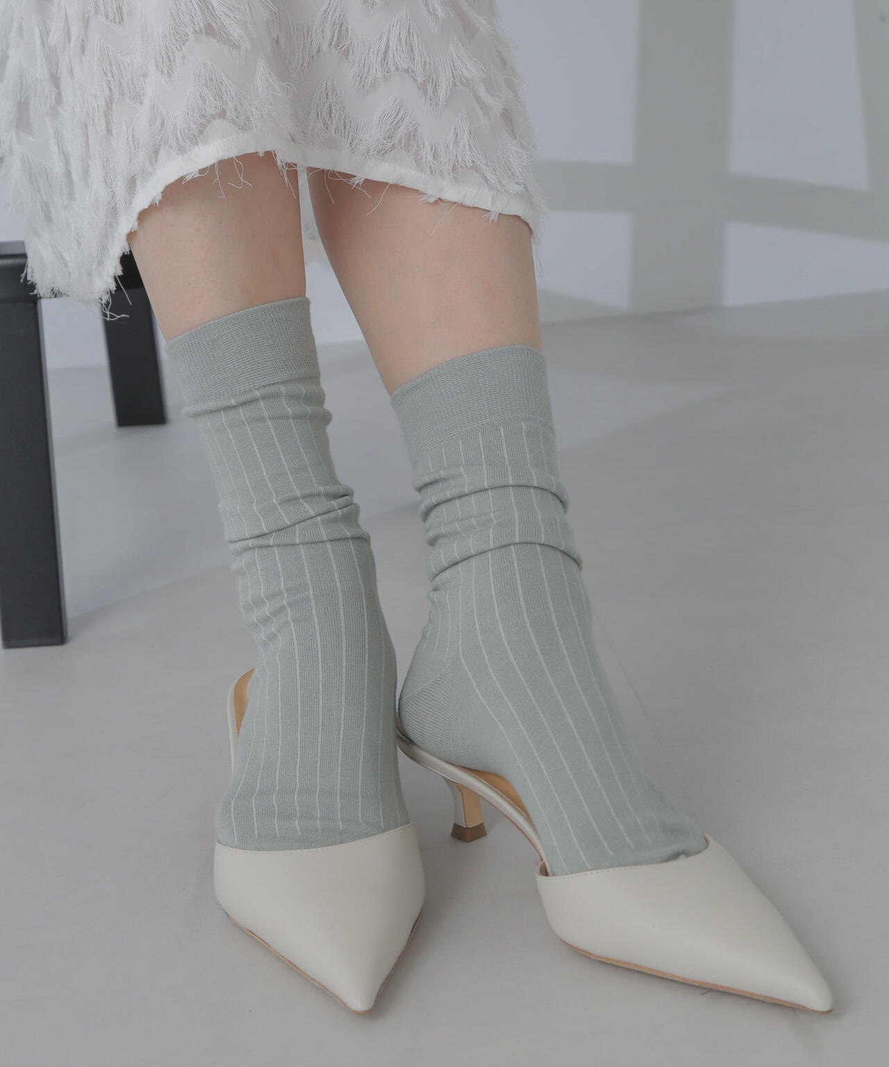 フィット感が心地良いリブソックス。少しくしゅくしゅっとさせて、ローファー合わせも大人可愛くてオススメ。シンプルで使い勝手の良いオフホワイトやグレー、春らしいミントカラーは爽やかな印象に◎。デイリーの着回しからご自宅用まで幅広く活躍します。