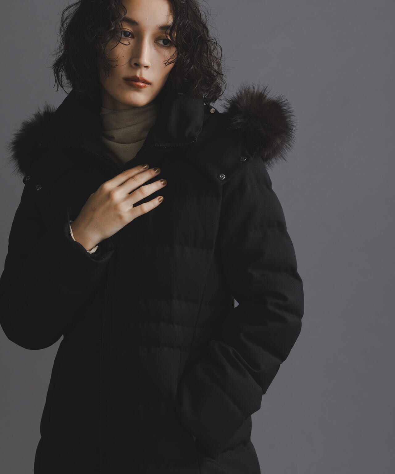 定番人気のロングダウンが今年も登場。フード周りのフェイクファーを、リッチな見た目はキープしつつ、より毛足のある軽いタイプにアップデート。定番的なデザインだからこそ、よりすっきり女性らしく見えるよう、シルエットやバランスにこだわった逸品です。