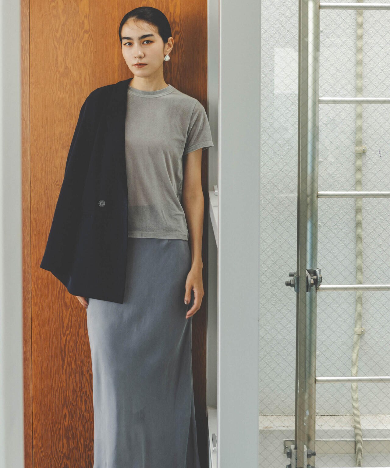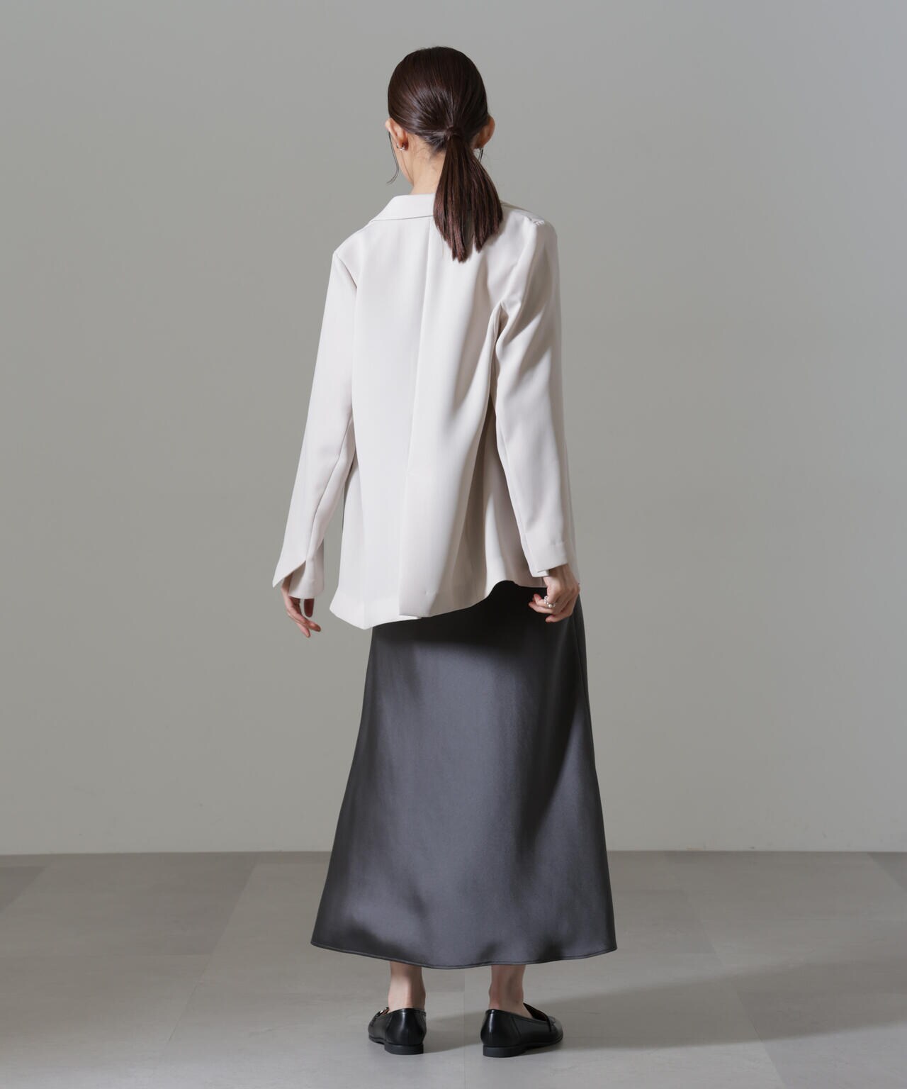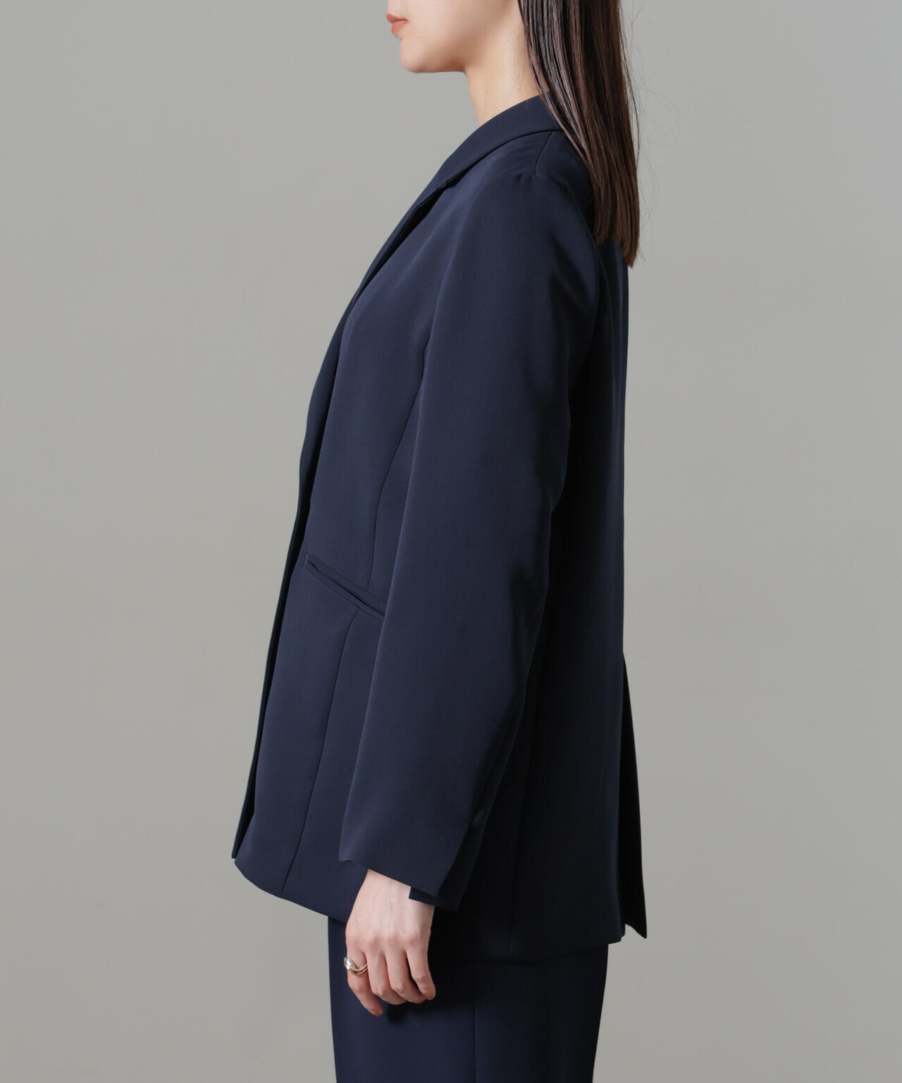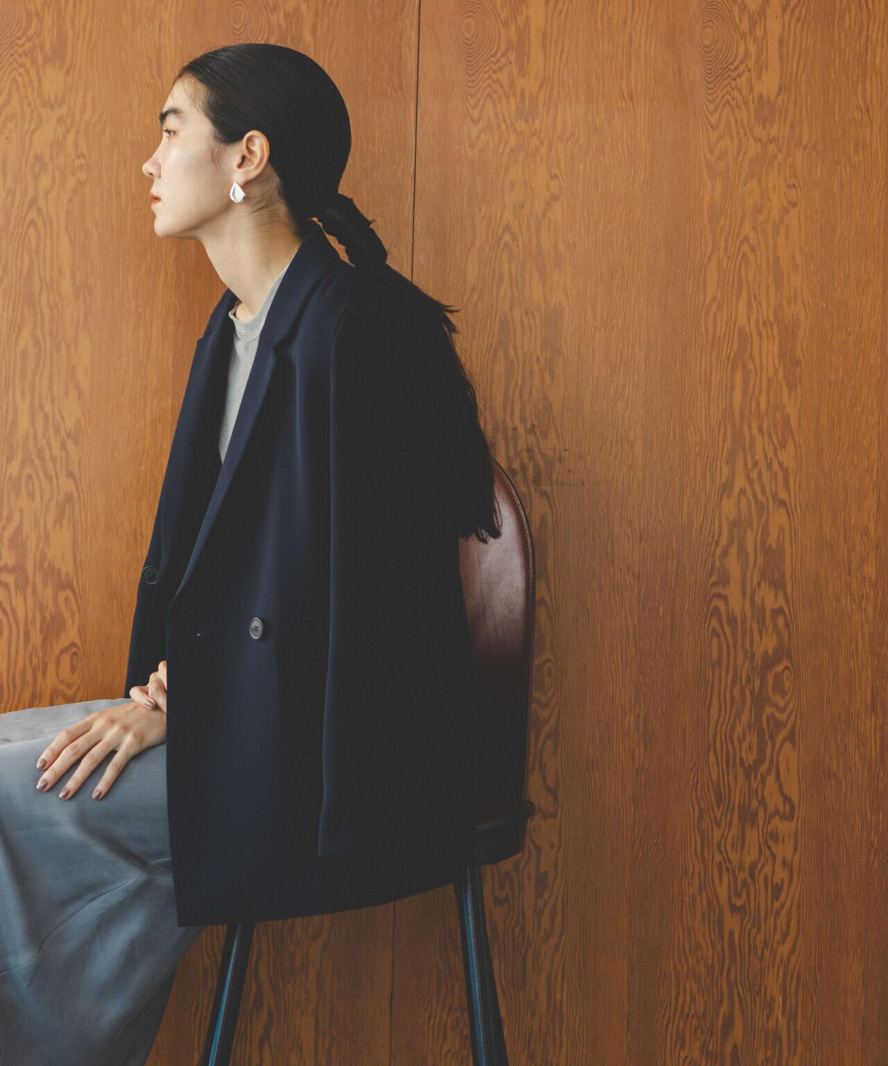ライトでドライな生地感が特徴のダブルジャケット。ボクシーなシルエットでさらっと羽織れて、冷房対策としてラフに持ち歩きもできる魅力の一枚。程よく少し長めな着丈で合わせるボトムを選ばず、きちんと感がありつつ着心地も快適。同シリーズのボトムとセットアップスタイルはもちろん、単品使いもしやすく幅広いシーンで重宝します。