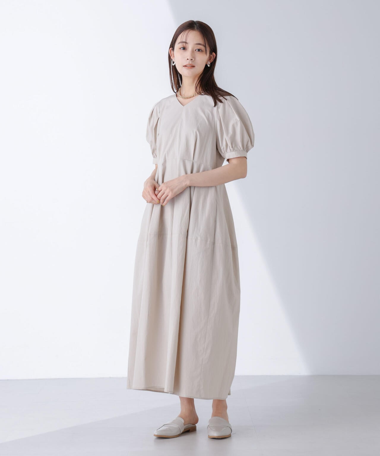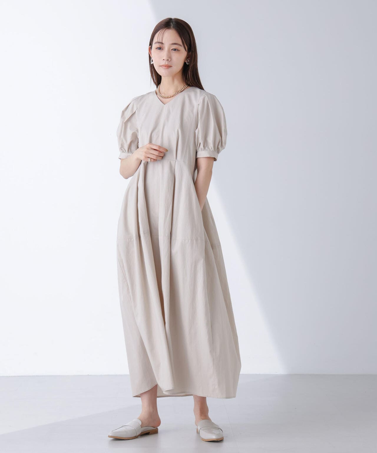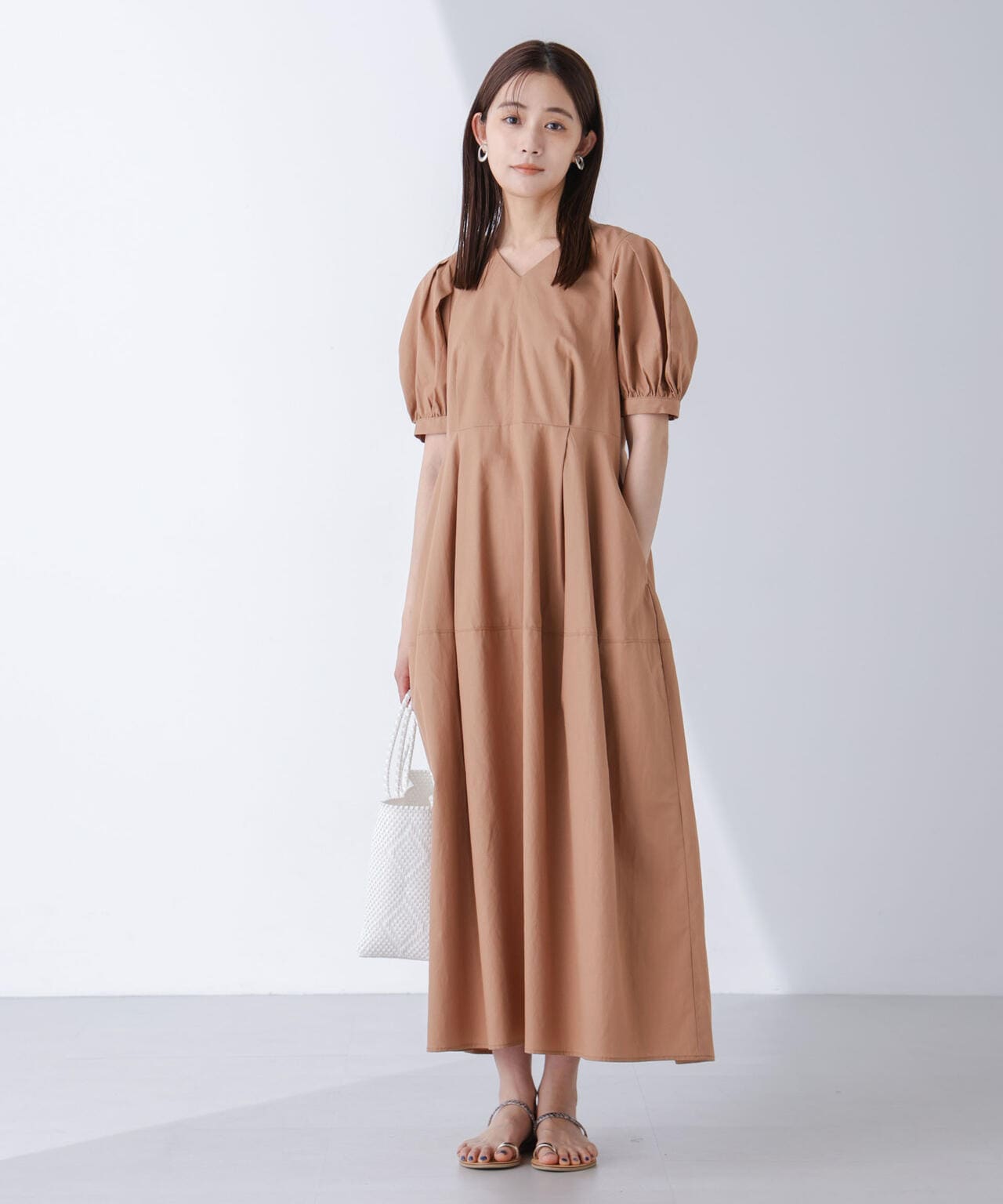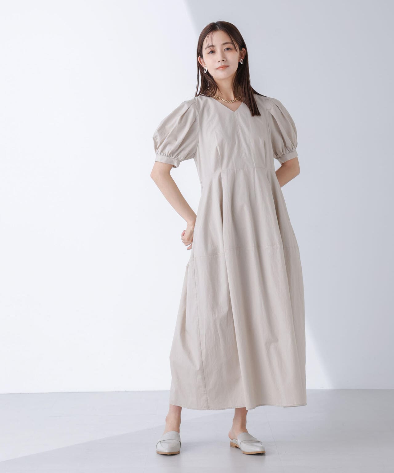 時短でコーディネートが決まる、夏素材のデザインワンピース。ボリュームのある袖やランタン切り替えのスカートシルエットが、トレンド感を演出します。涼し気な印象の浅めのVネックで、インナーを問わずに着られるのもうれしいポイント。サンダルやかごバック等夏の小物をプラスして、リゾートやレジャーシーンにも活躍が期待できる逸品です。