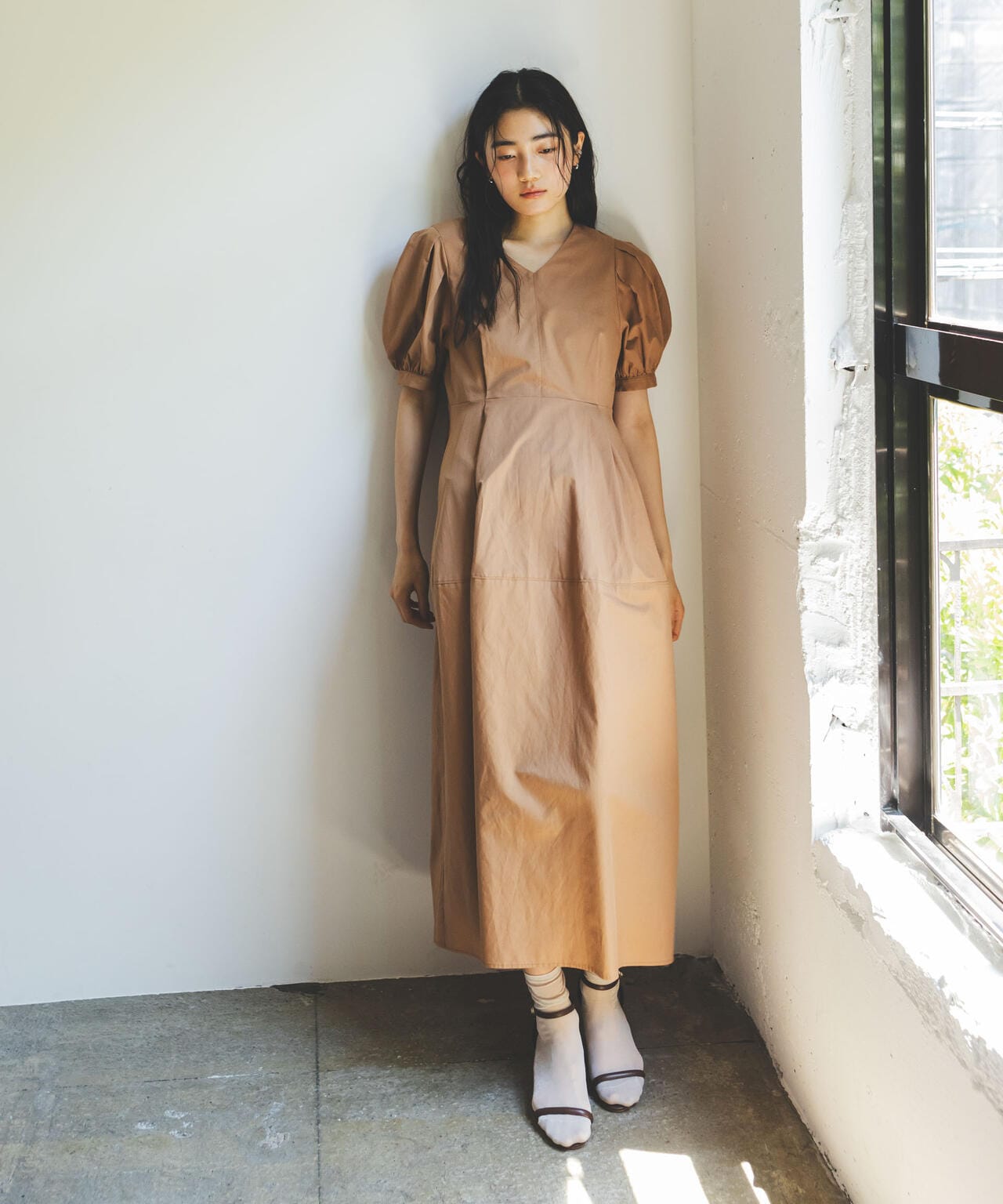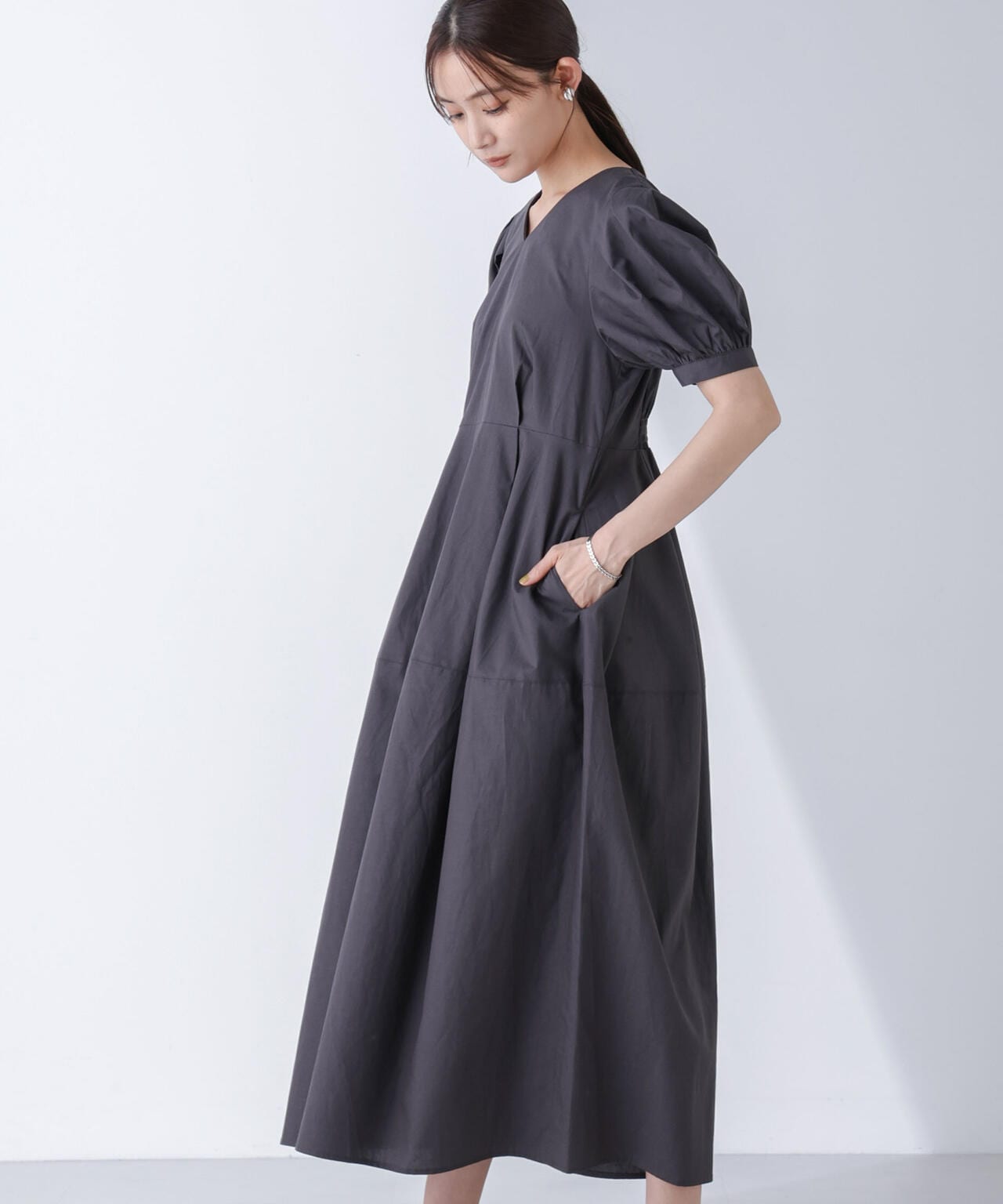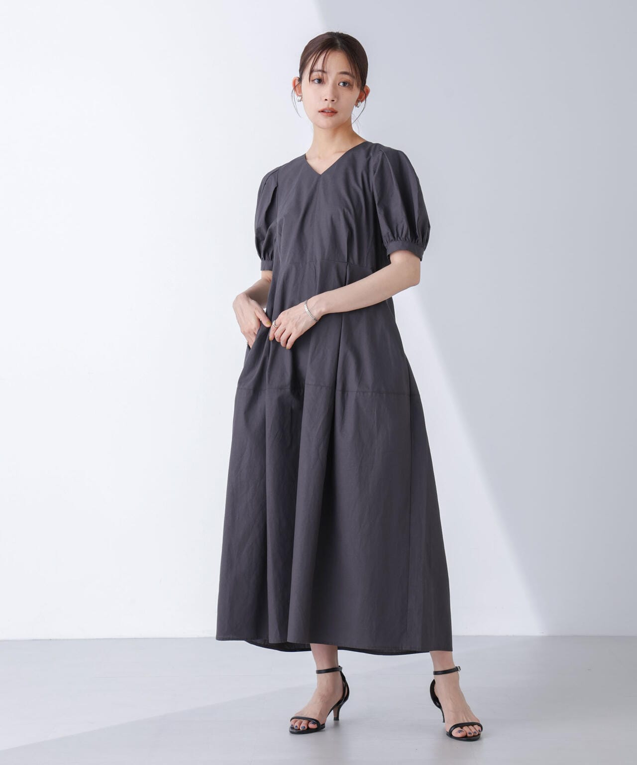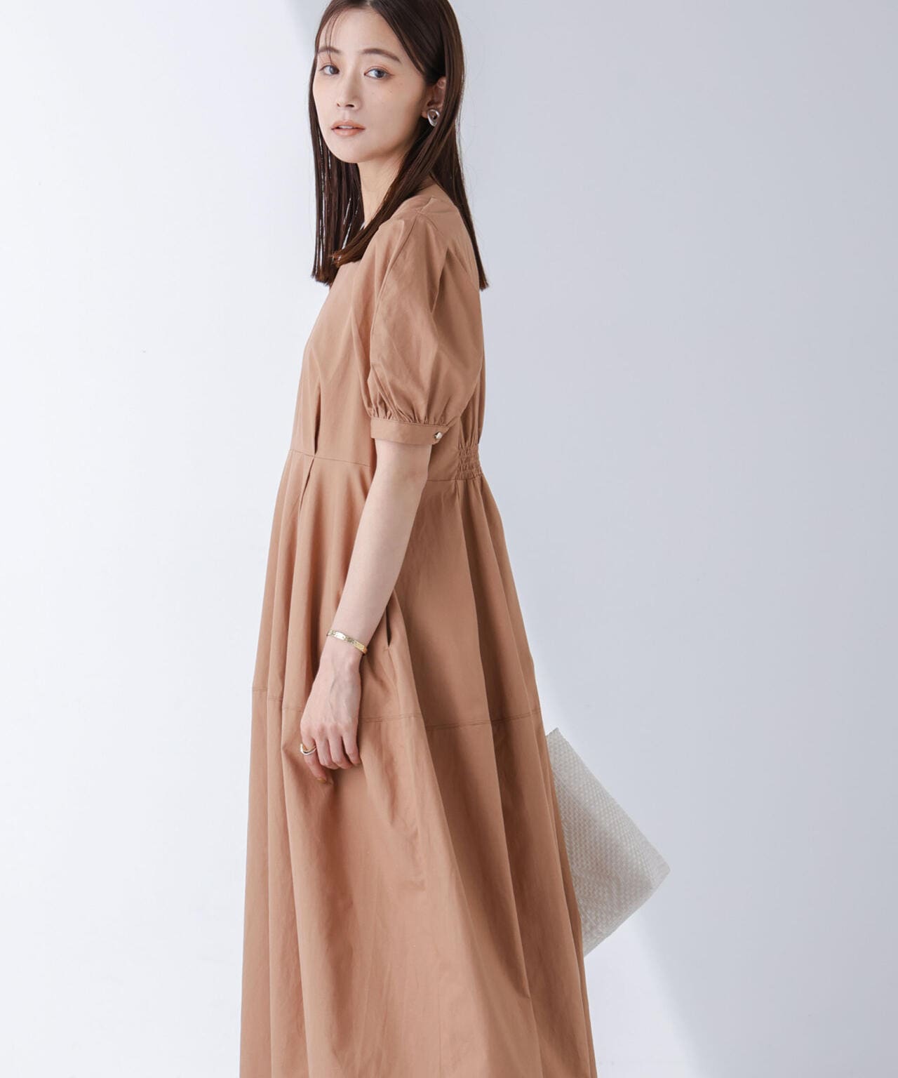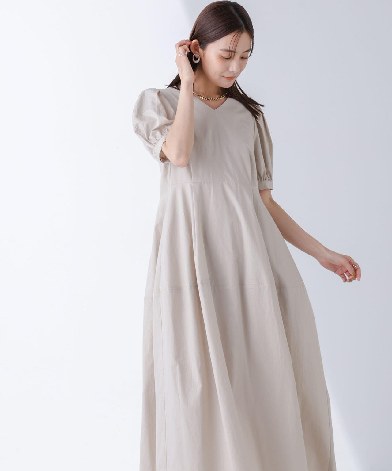 時短でコーディネートが決まる、夏素材のデザインワンピース。ボリュームのある袖やランタン切り替えのスカートシルエットが、トレンド感を演出します。涼し気な印象の浅めのVネックで、インナーを問わずに着られるのもうれしいポイント。サンダルやかごバック等夏の小物をプラスして、リゾートやレジャーシーンにも活躍が期待できる逸品です。
