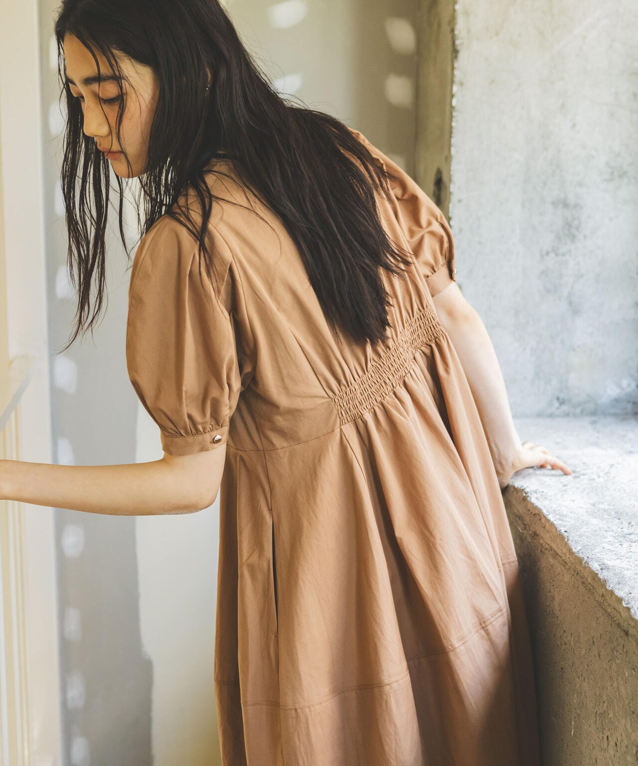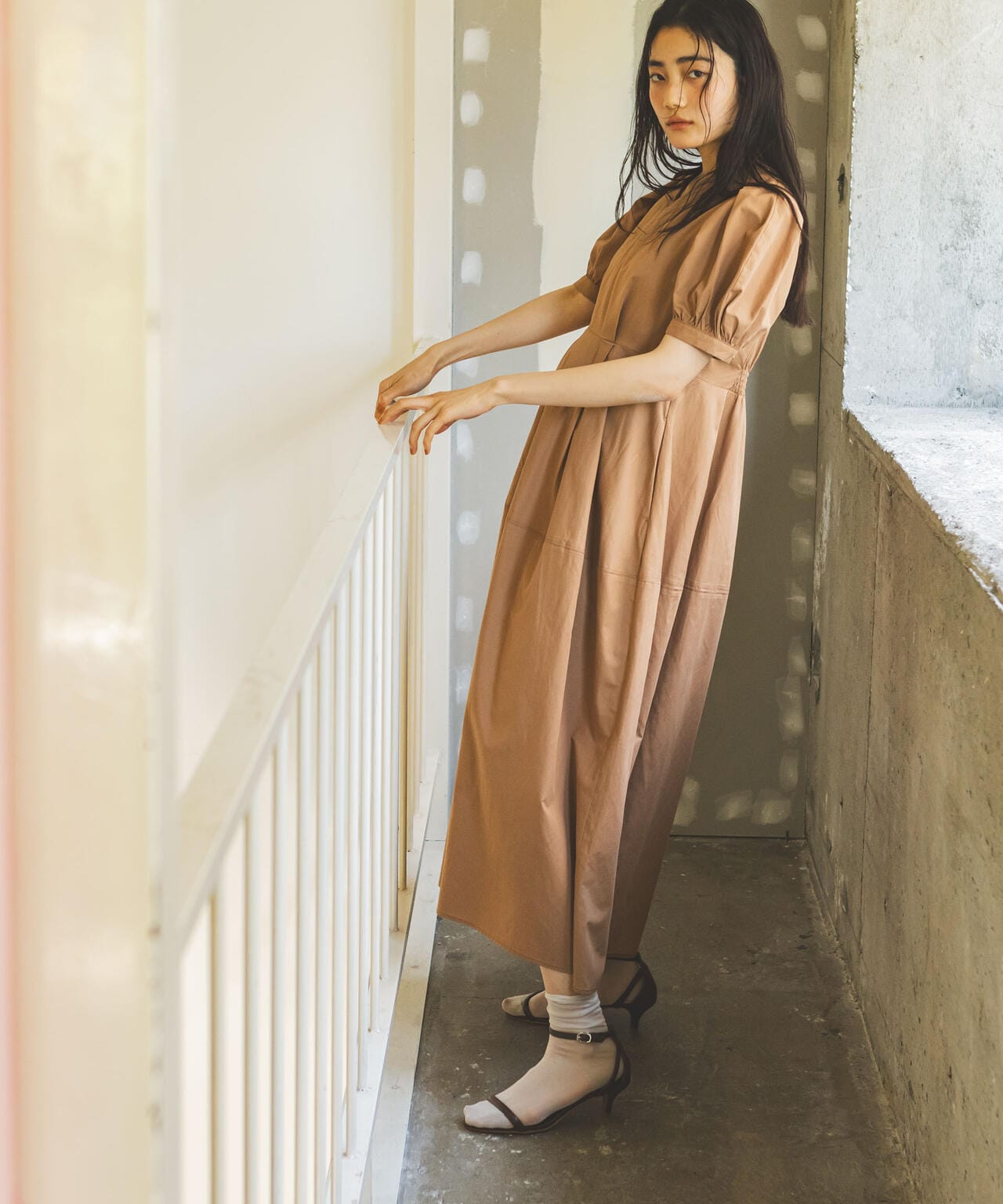 ・二の腕カバーにも◎なタックでボリュームを付けたカーブ袖