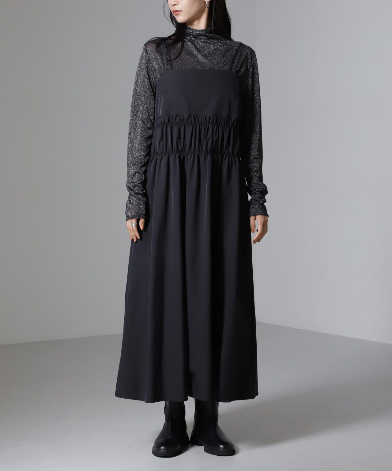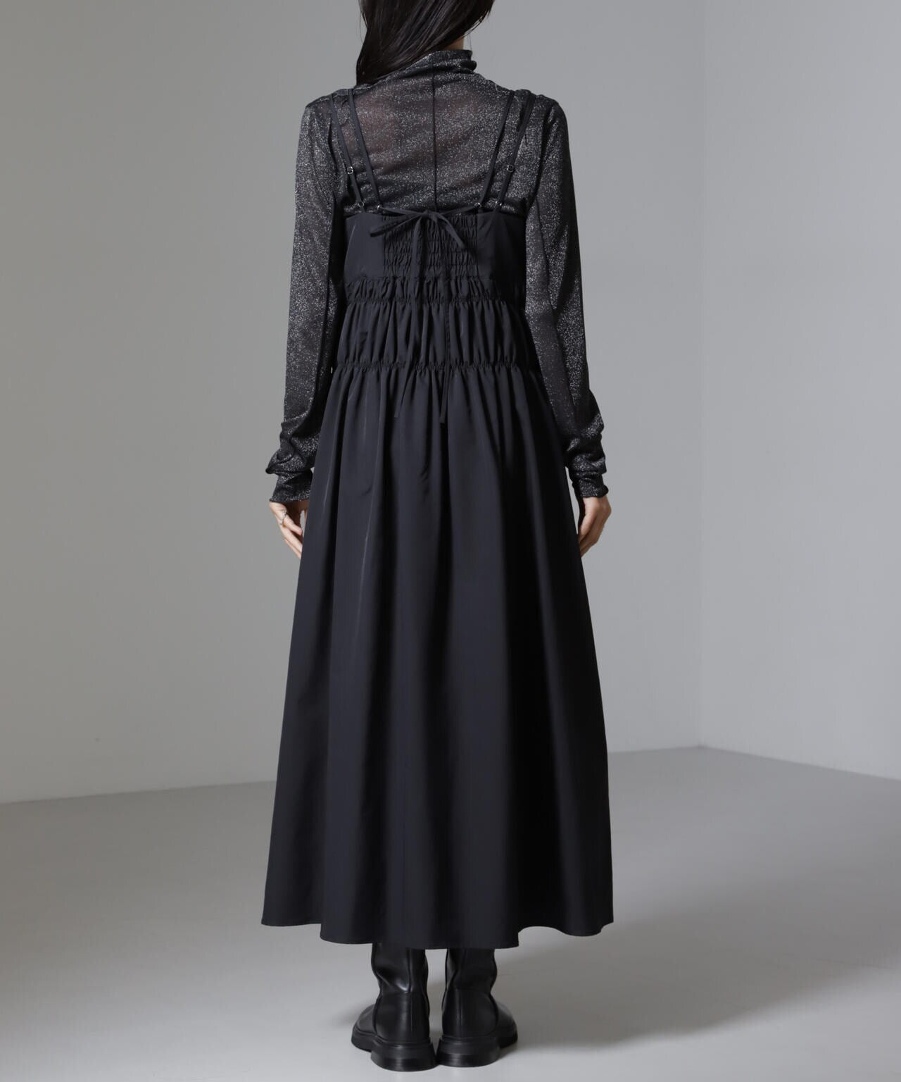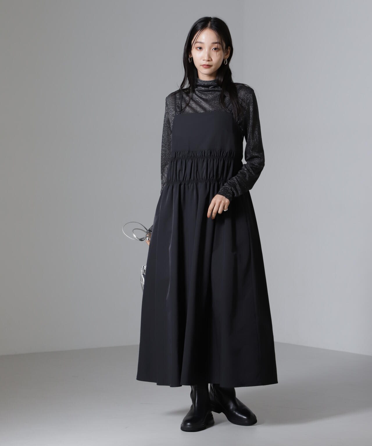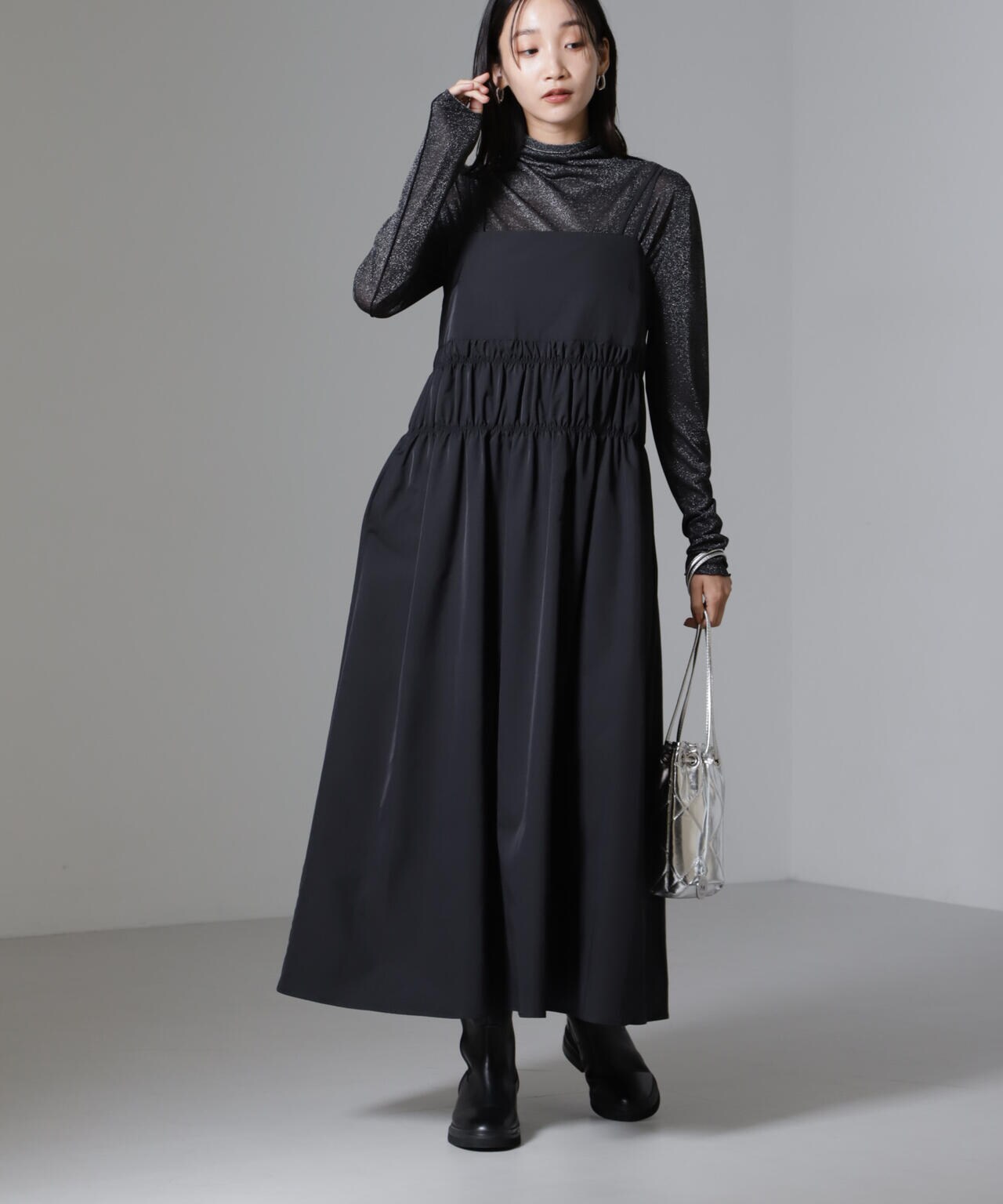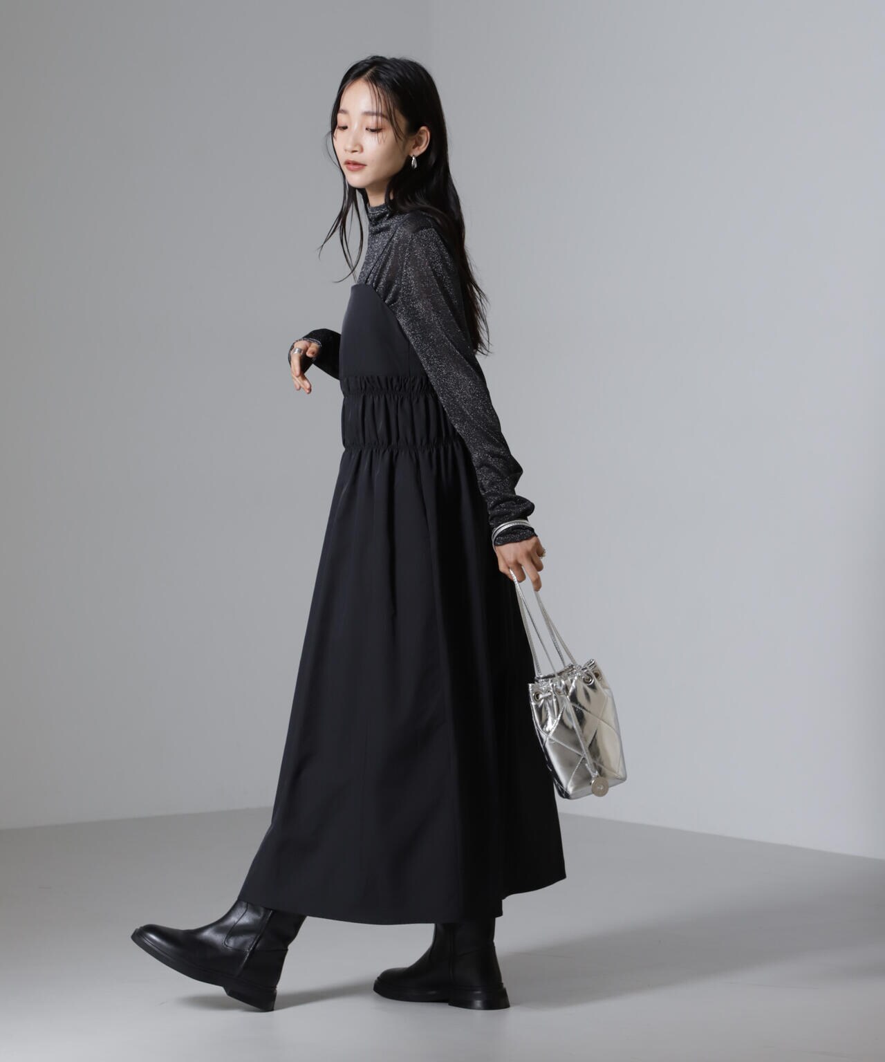 シャンブレータフタ生地を使用した季節問わず活躍するキャミワンピース。角度によって色の見え方が変わるので、カラーによって表情の違いを楽しめるアイテム。