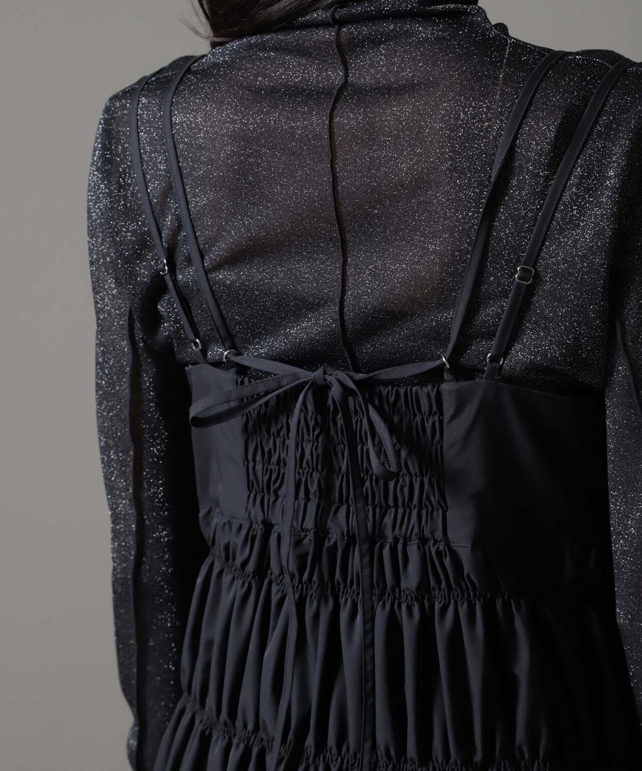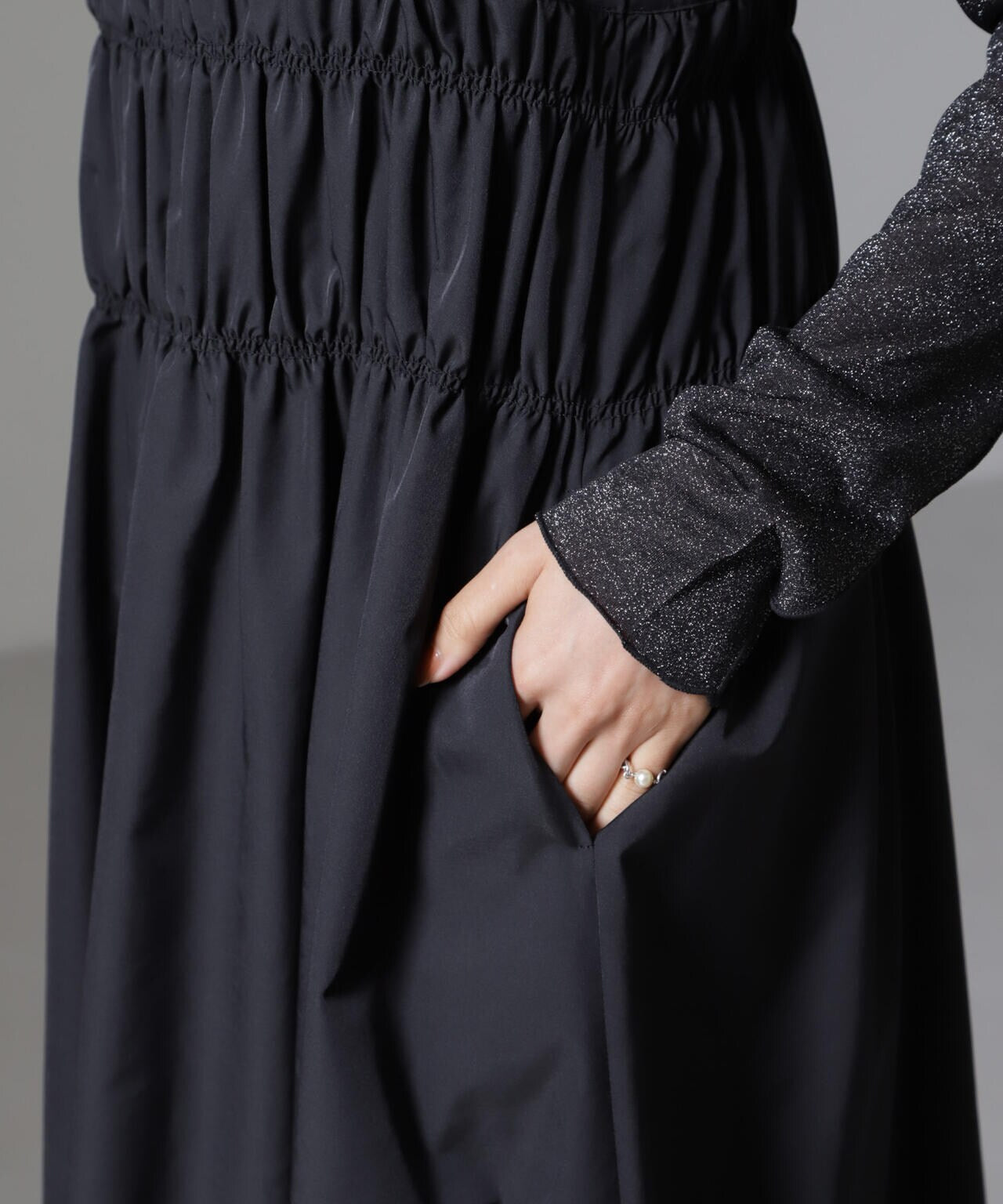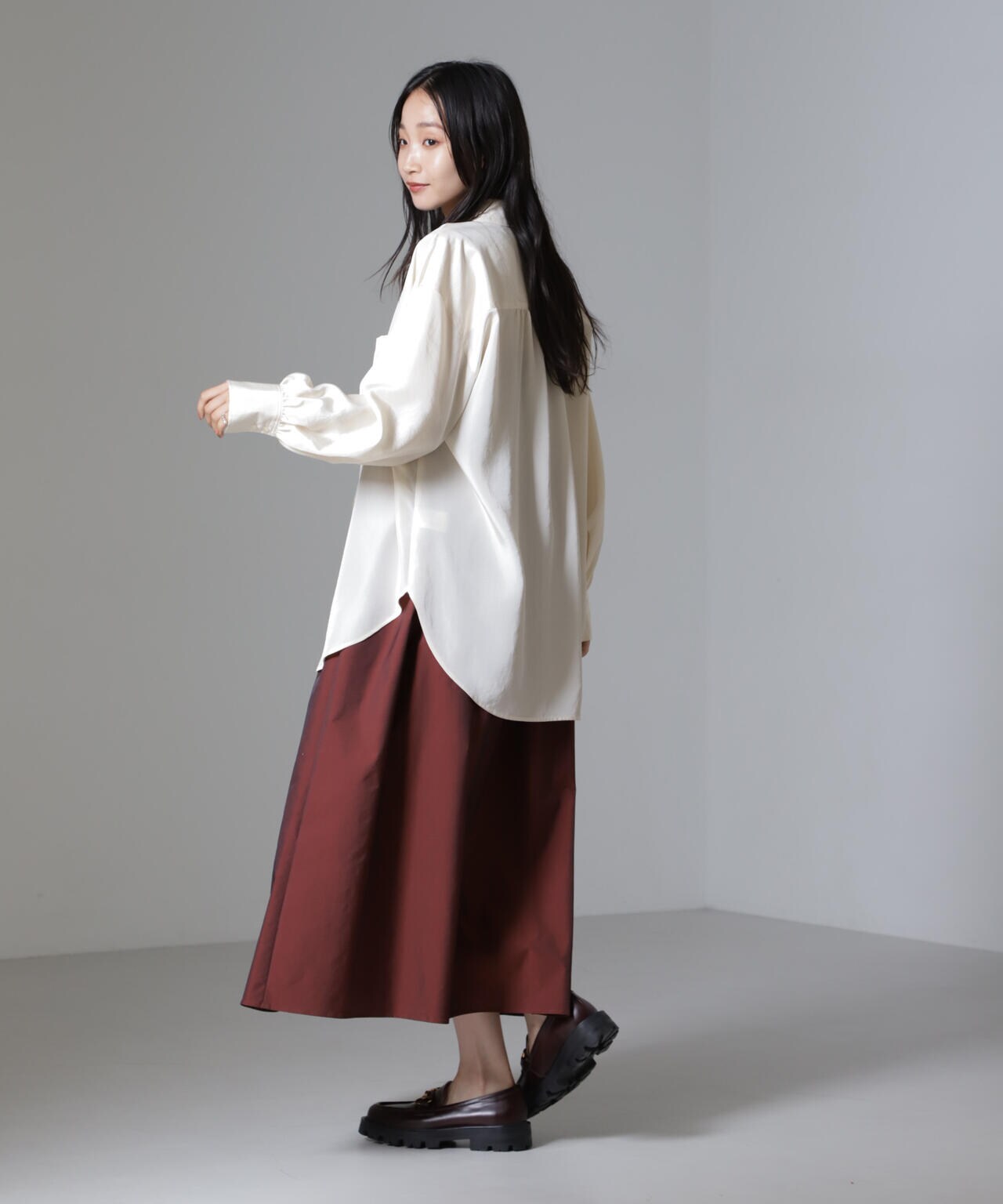 ・スカート上部のクシャっとしたギャザーのデザインが女性らしさをプラス