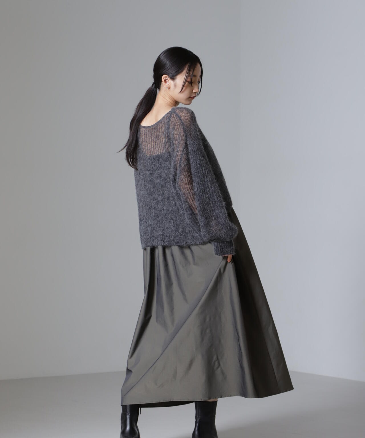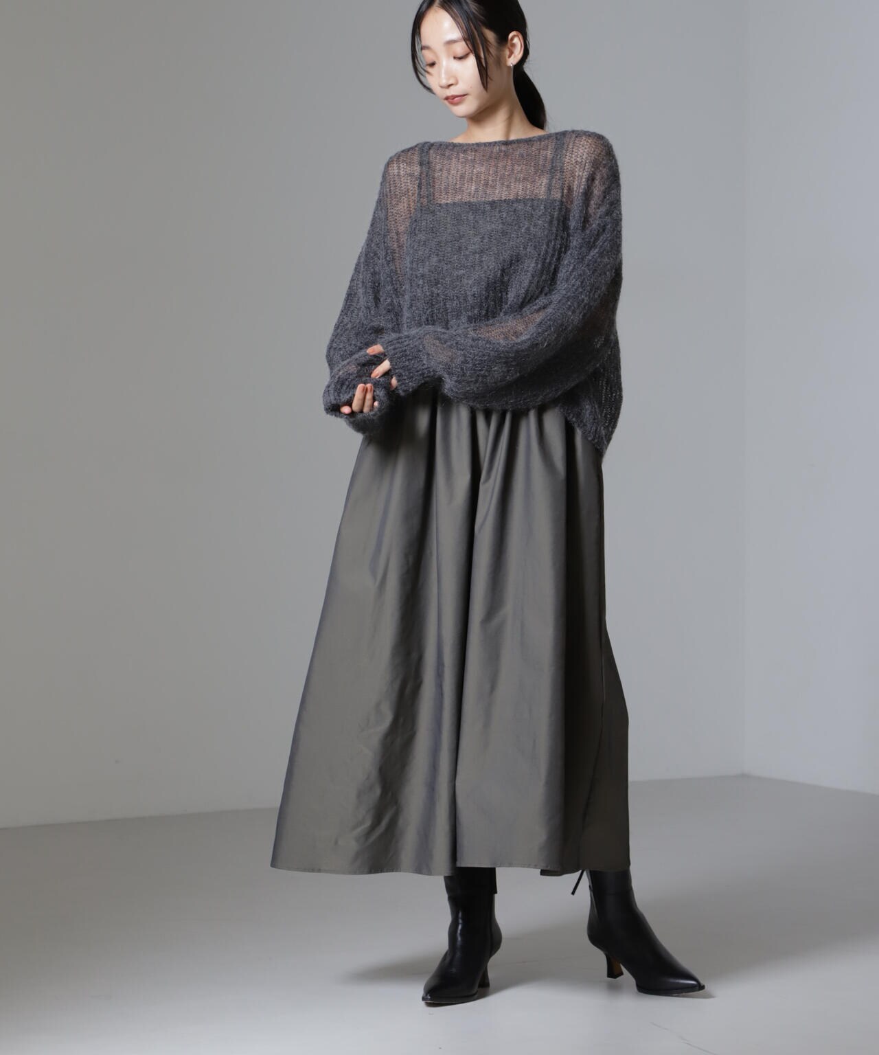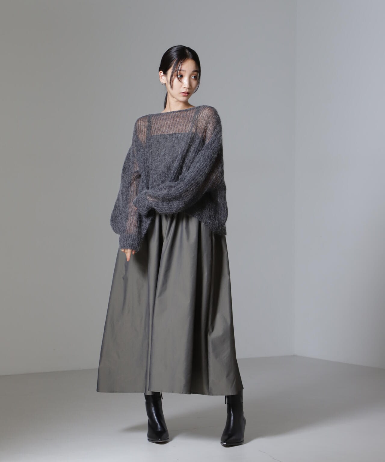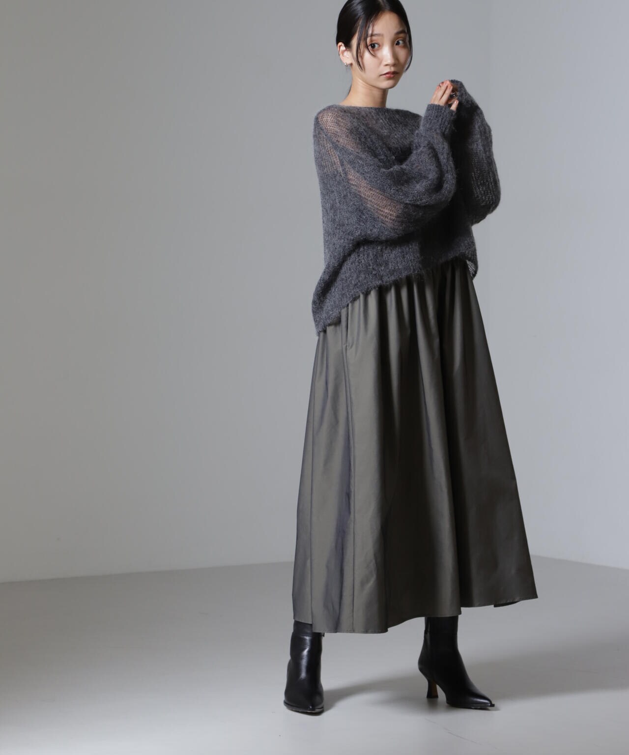 ・冬はざっくりニットを上から着ることでスカートのみ見せるスタイリングもオススメ