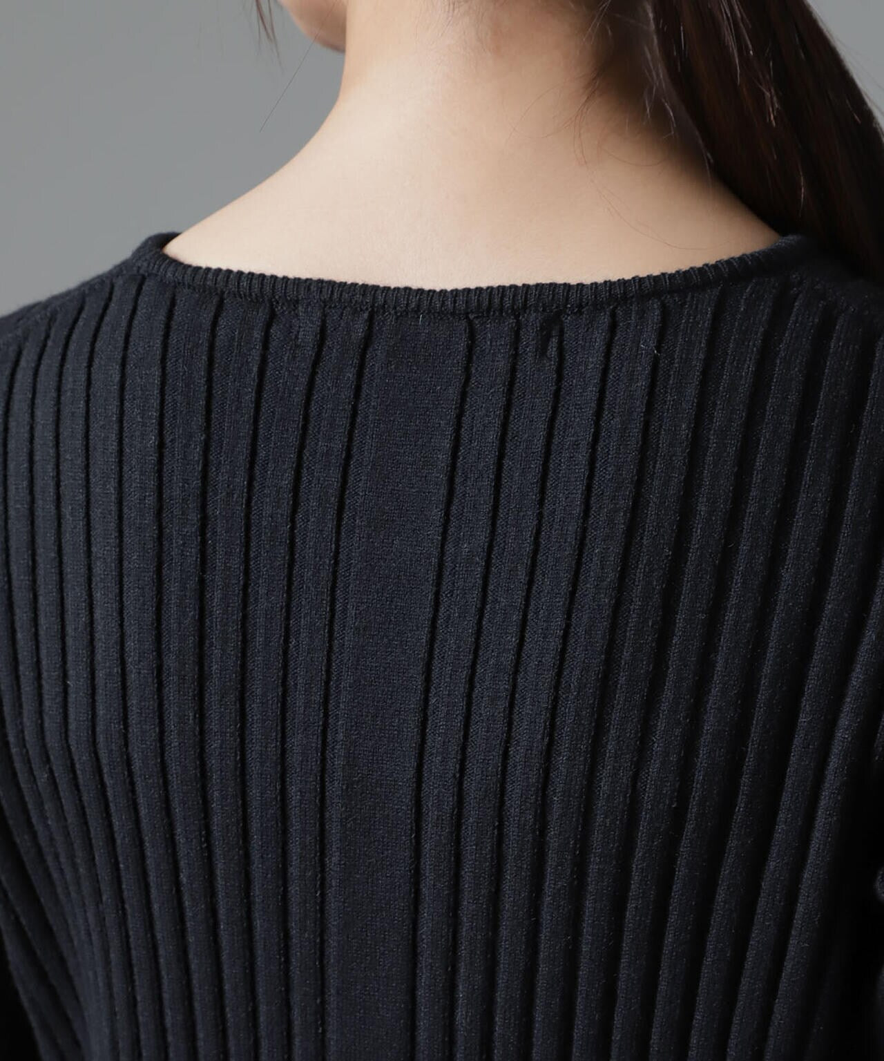 ・畦編みの縦柄とVネックでスッキリときれい目なムードに◎