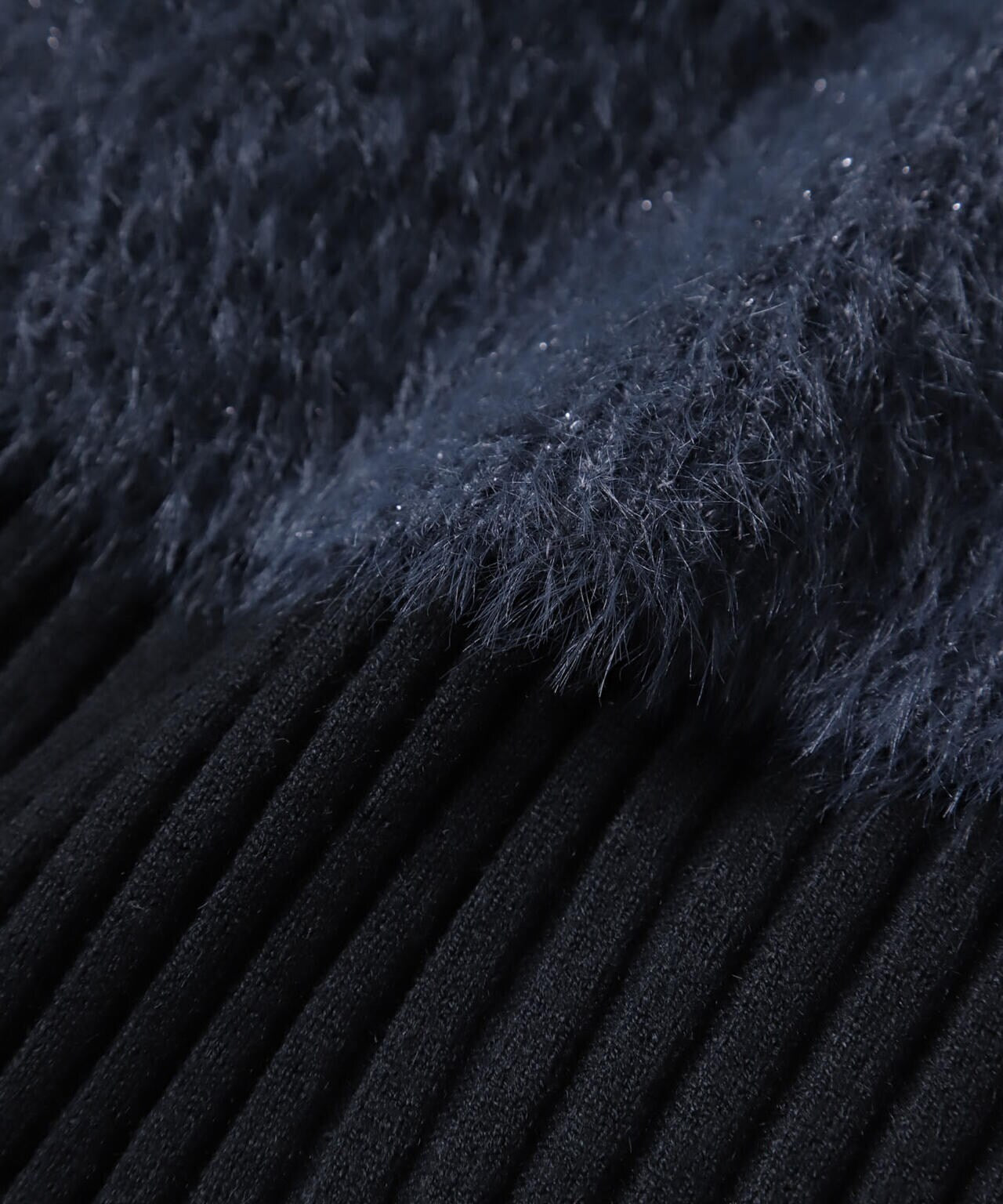 ・毛足の長いラグジュアリーなフェザーに上品なラメを引きそろえたニット