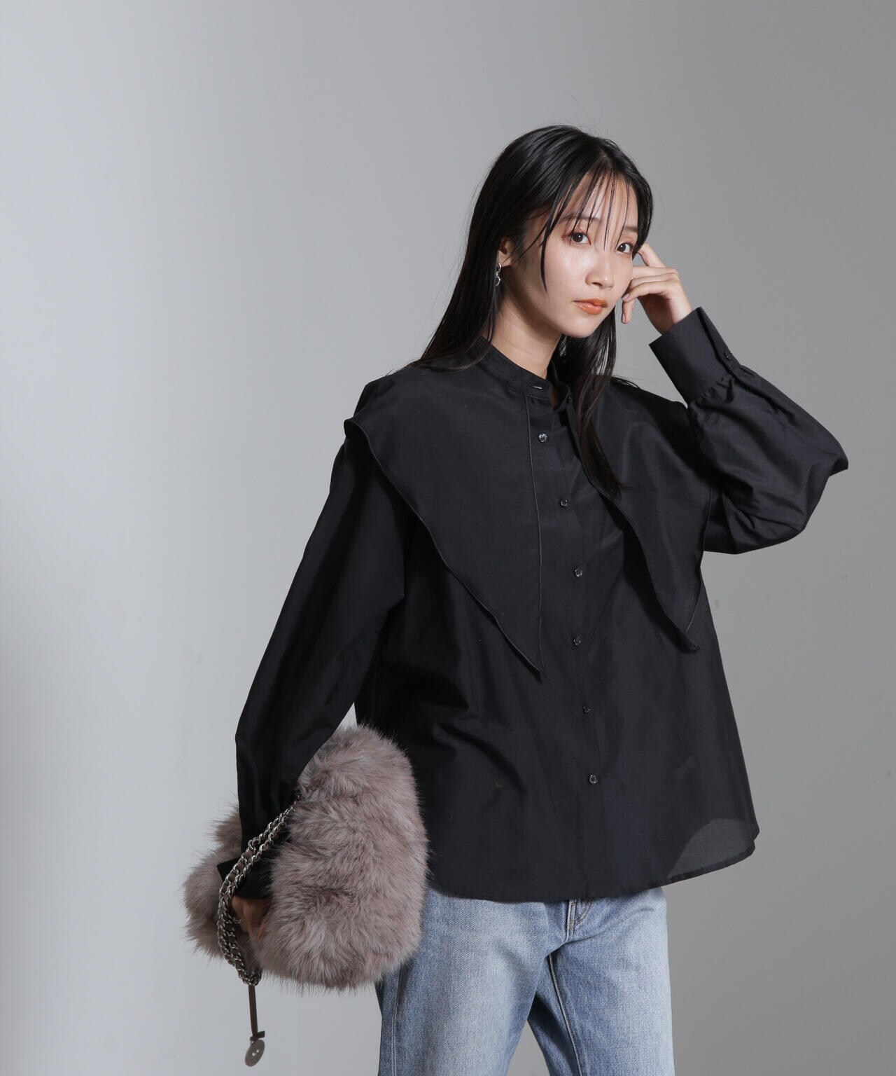 着るだけでトレンドを纏えるビッグカラーシャツ。生地はシルク混で肌触りが柔らかく、光沢感が上品な他にはない一枚です!