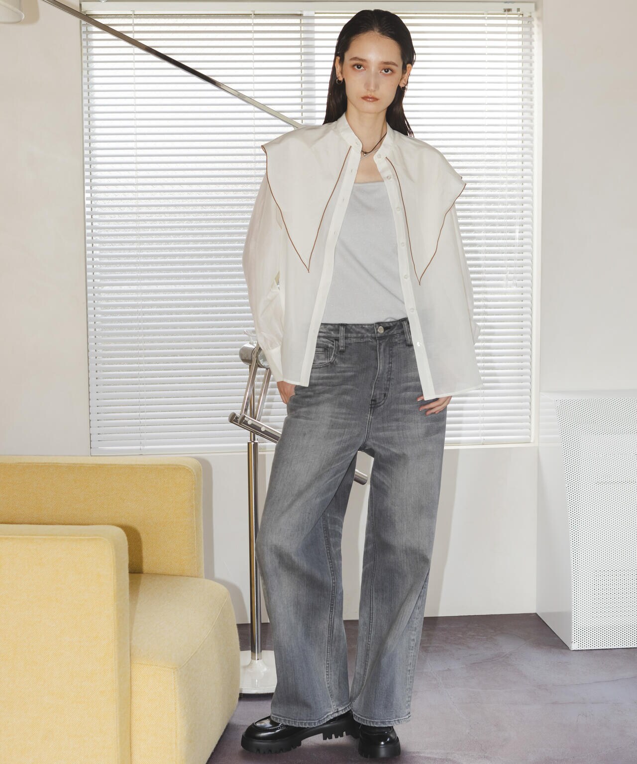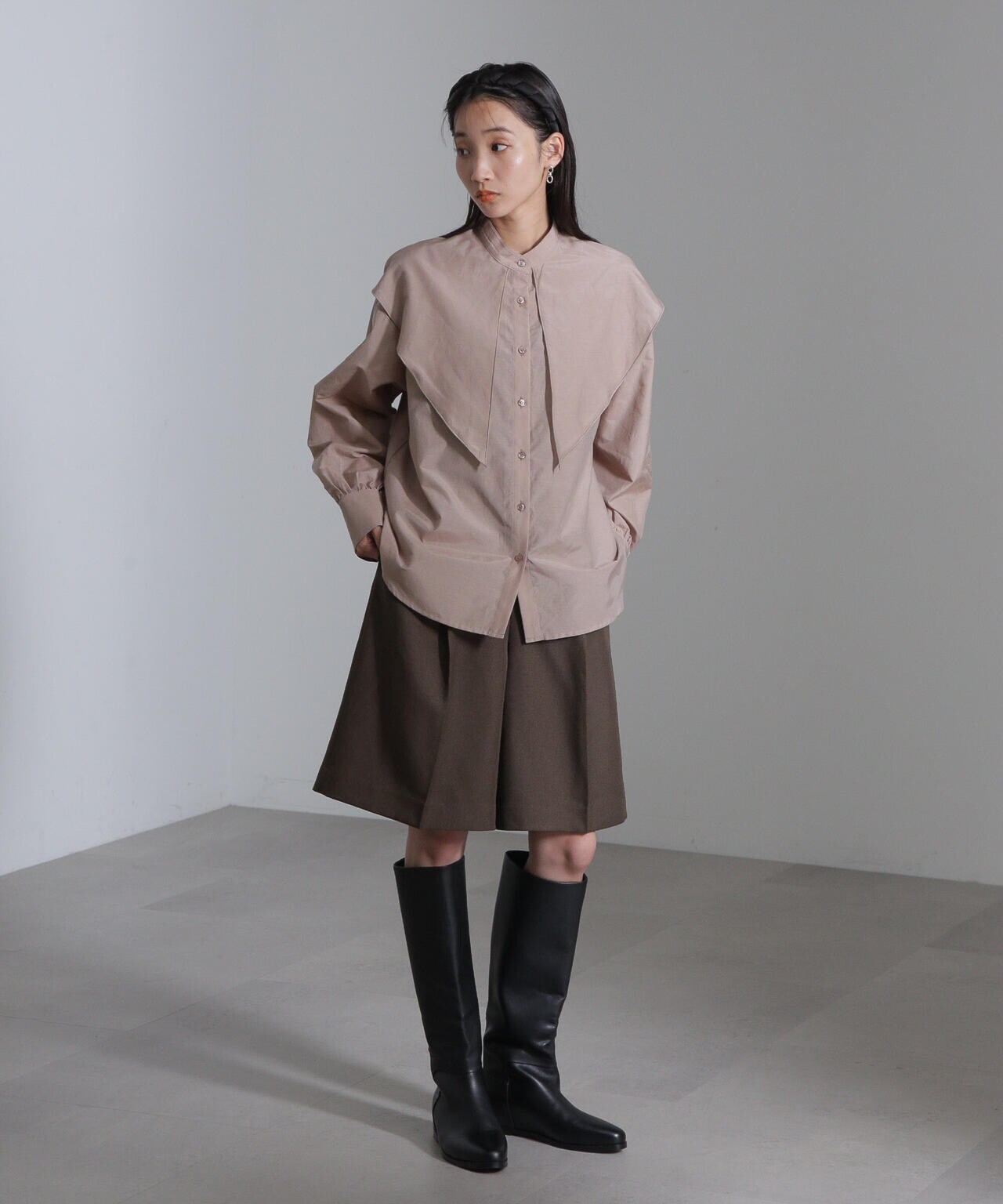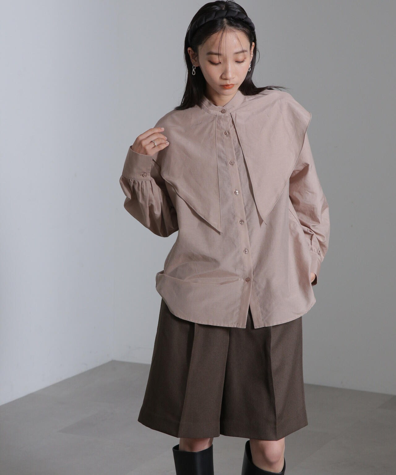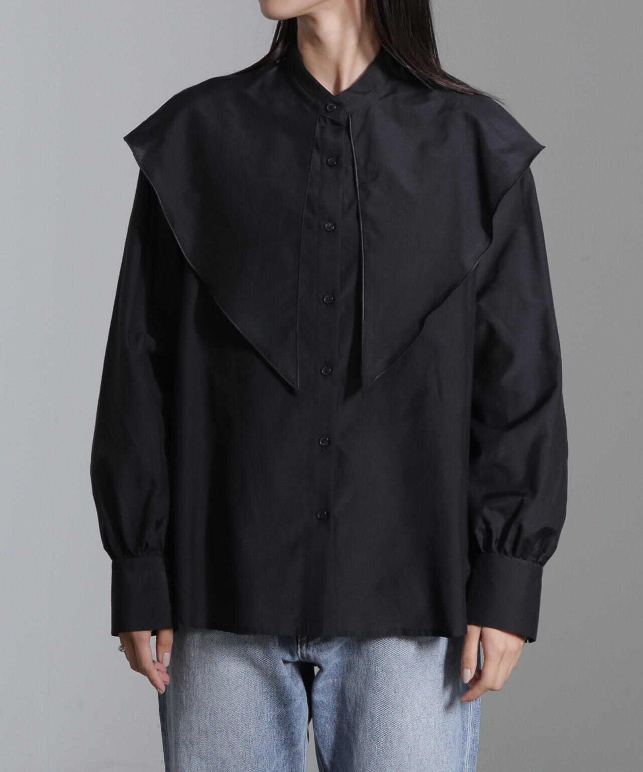 ・上品で光沢感のあるビッグカラーシャツ