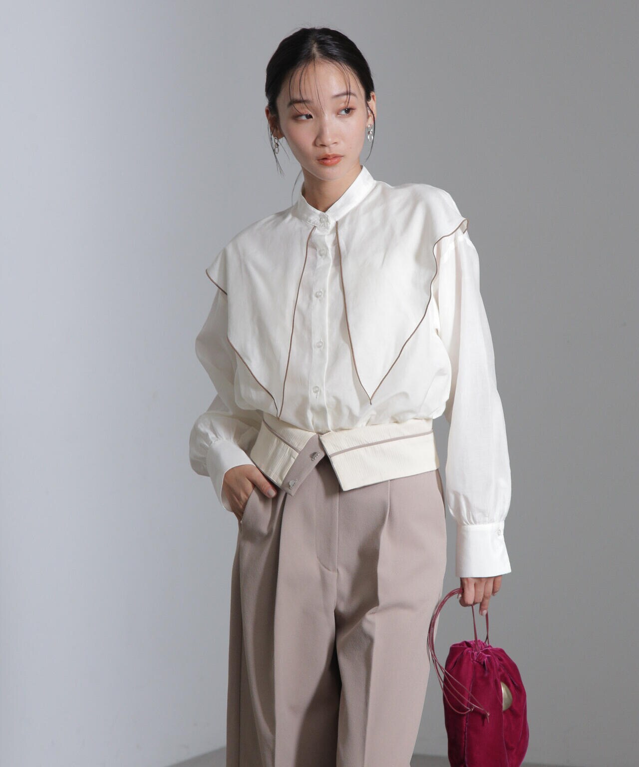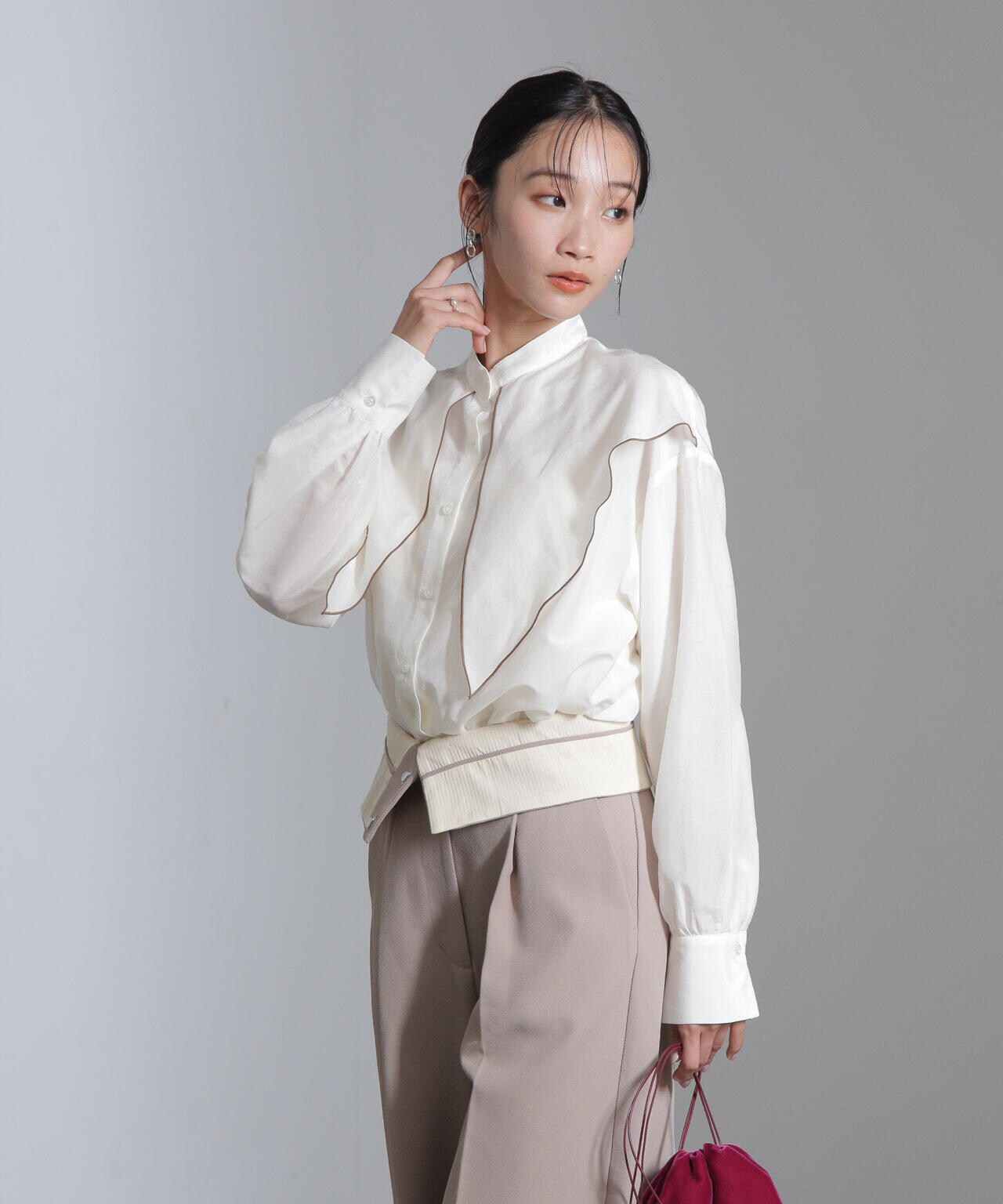 6694220318 シルク混フロントフリルブラウス
