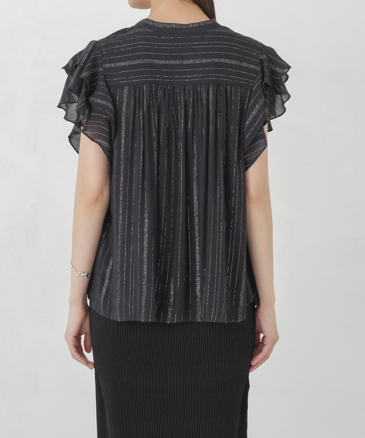 インドラメストライプフレアブラウス