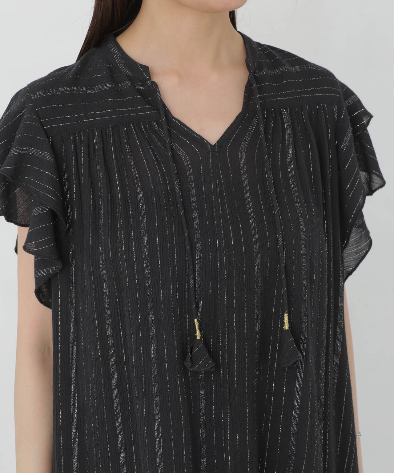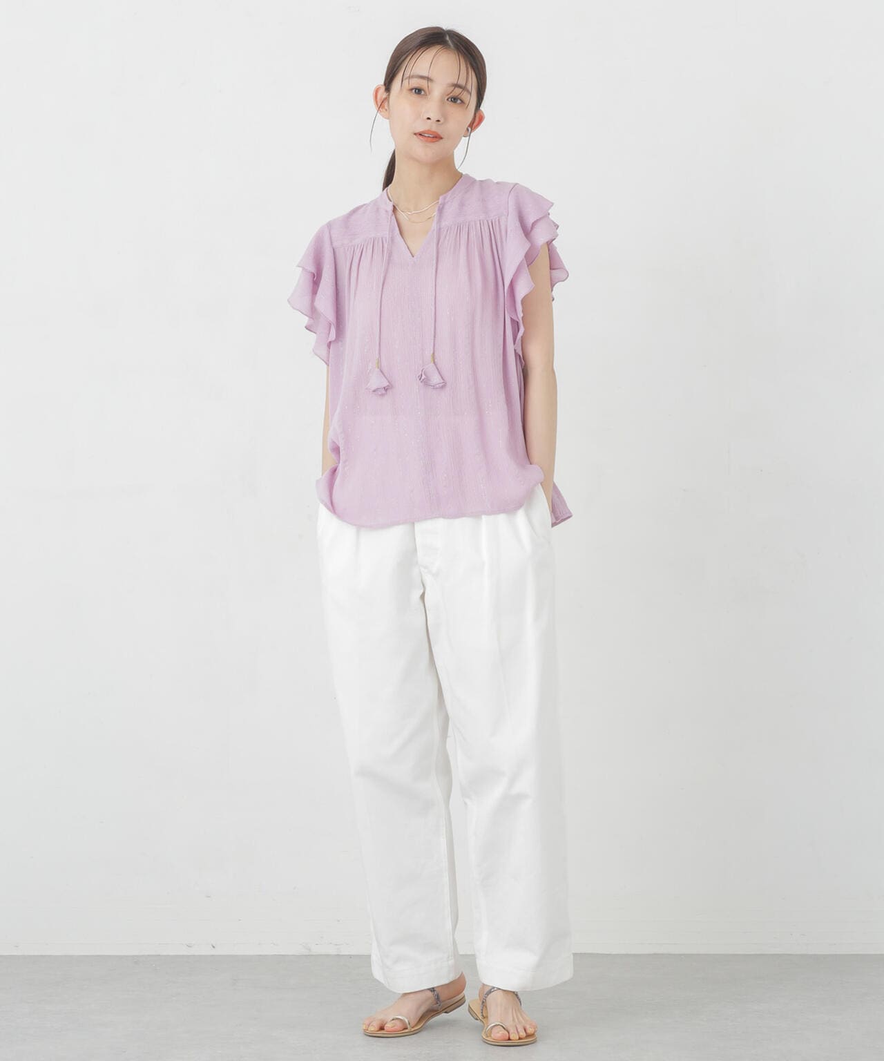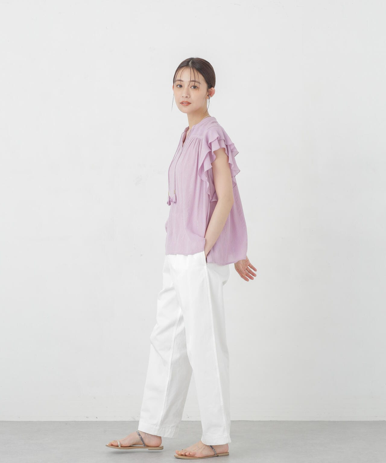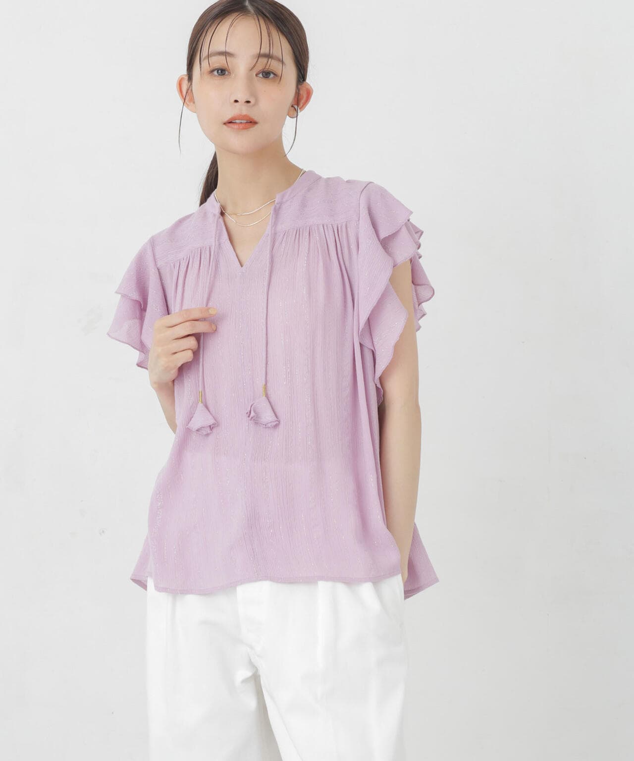『女性らしく華やぎを添える2重の袖フリル』