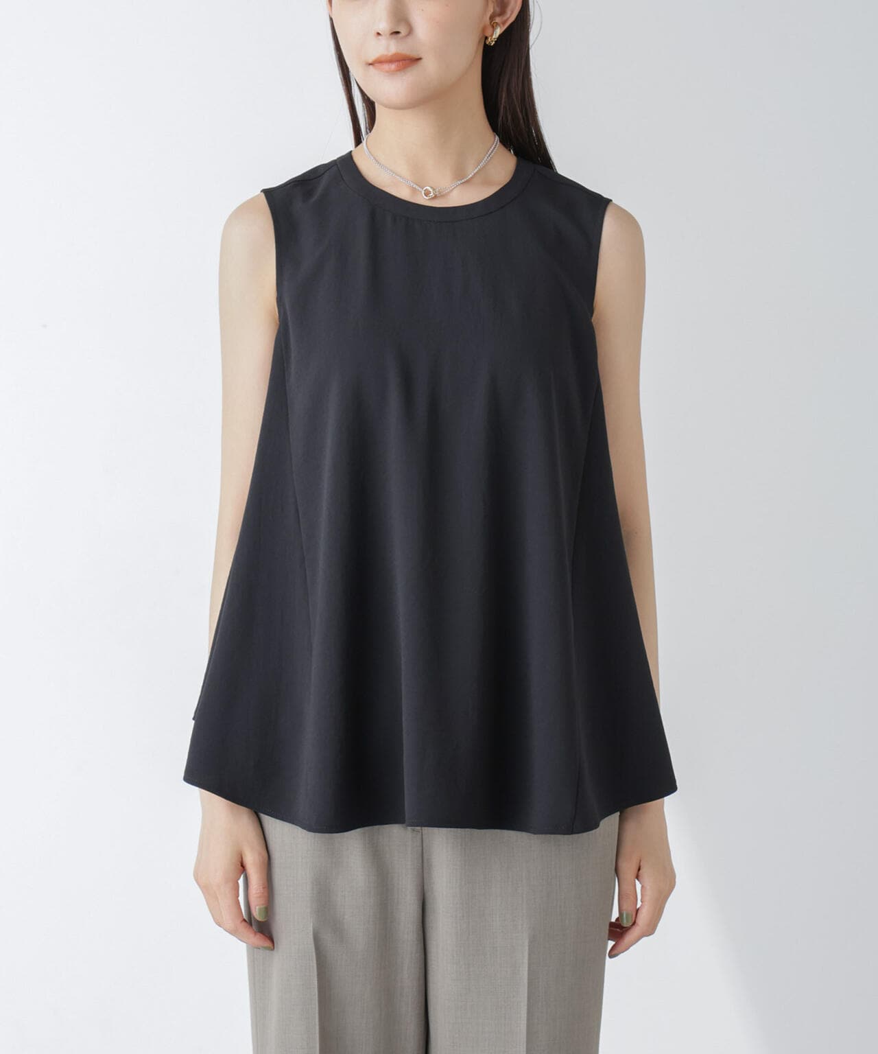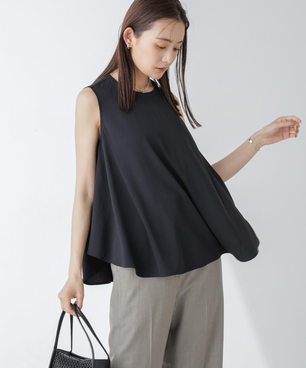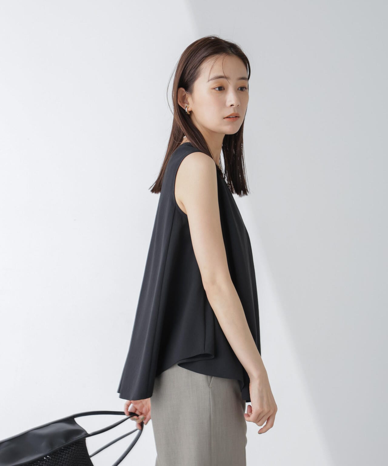 リラックス感がありながらもキレイ目なスタイルが様になる、イージーファンクションシリーズのノースリーブブラウス。きちんと見えるクルーネックに、両サイドに揺れるドレープ感とタックを取ったバックスタイルがエレガントな雰囲気を演出。少し長めの着丈と裾にかけて絶妙に広がるシルエットが品良く様になるから、通勤や休日のお出掛けシーンなど幅広く活躍します。