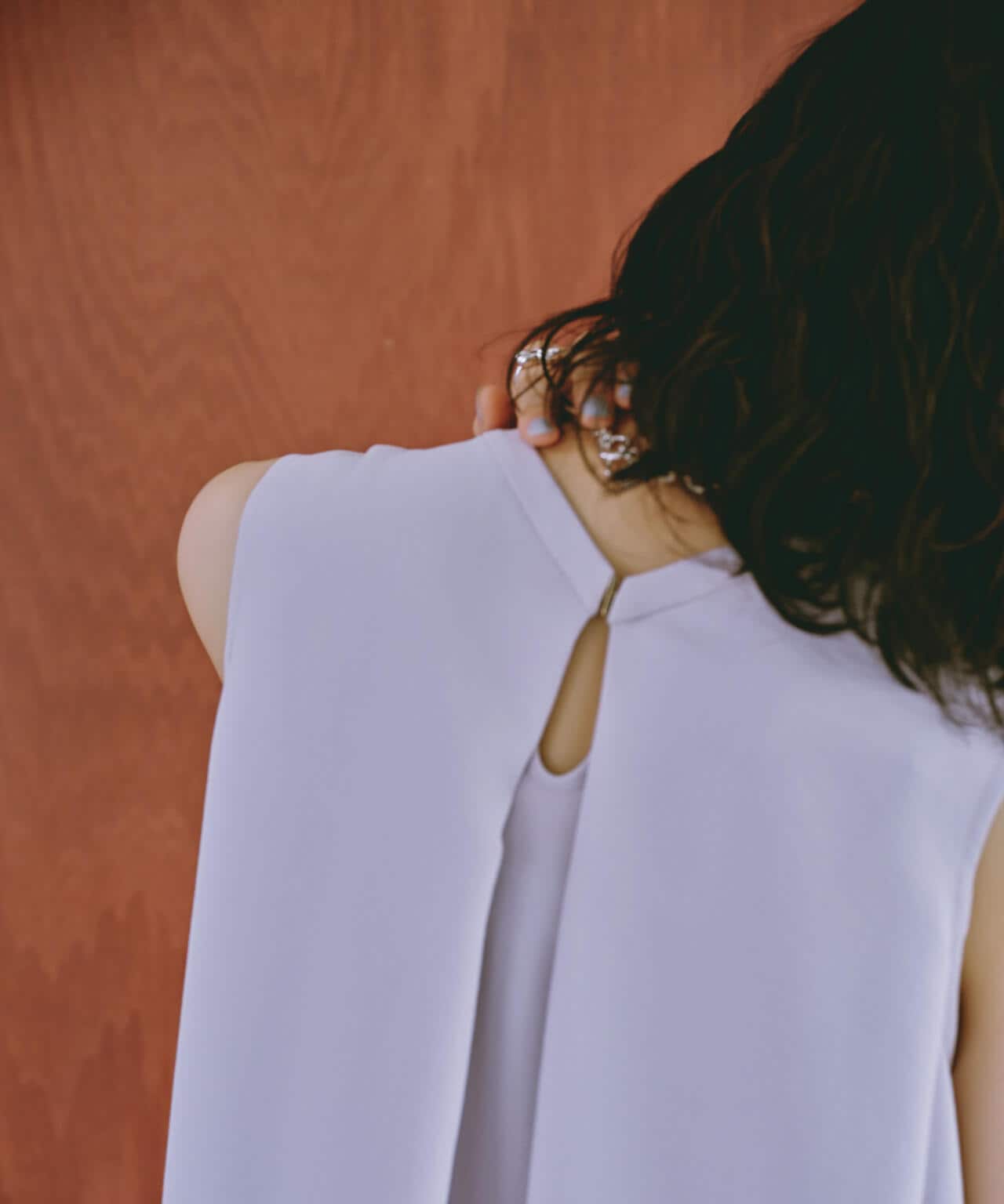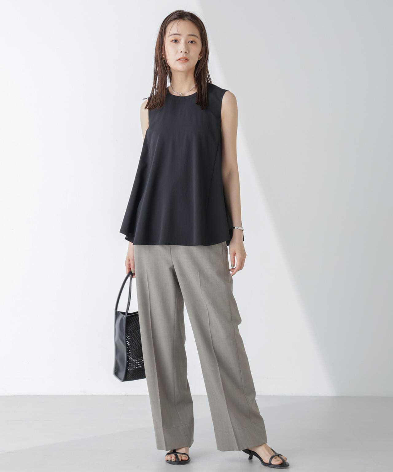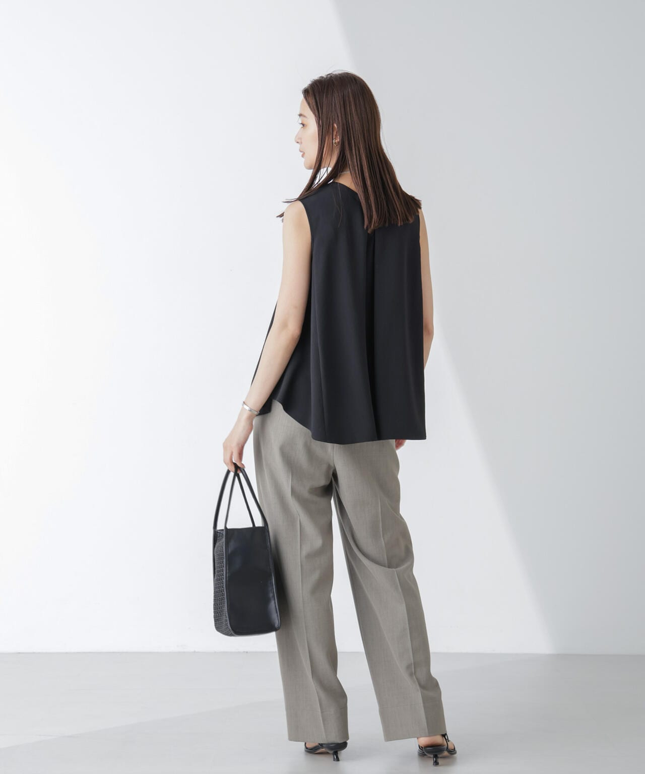 リラックス感がありながらもキレイ目なスタイルが様になる、イージーファンクションシリーズのノースリーブブラウス。きちんと見えるクルーネックに、両サイドに揺れるドレープ感とタックを取ったバックスタイルがエレガントな雰囲気を演出。少し長めの着丈と裾にかけて絶妙に広がるシルエットが品良く様になるから、通勤や休日のお出掛けシーンなど幅広く活躍します。