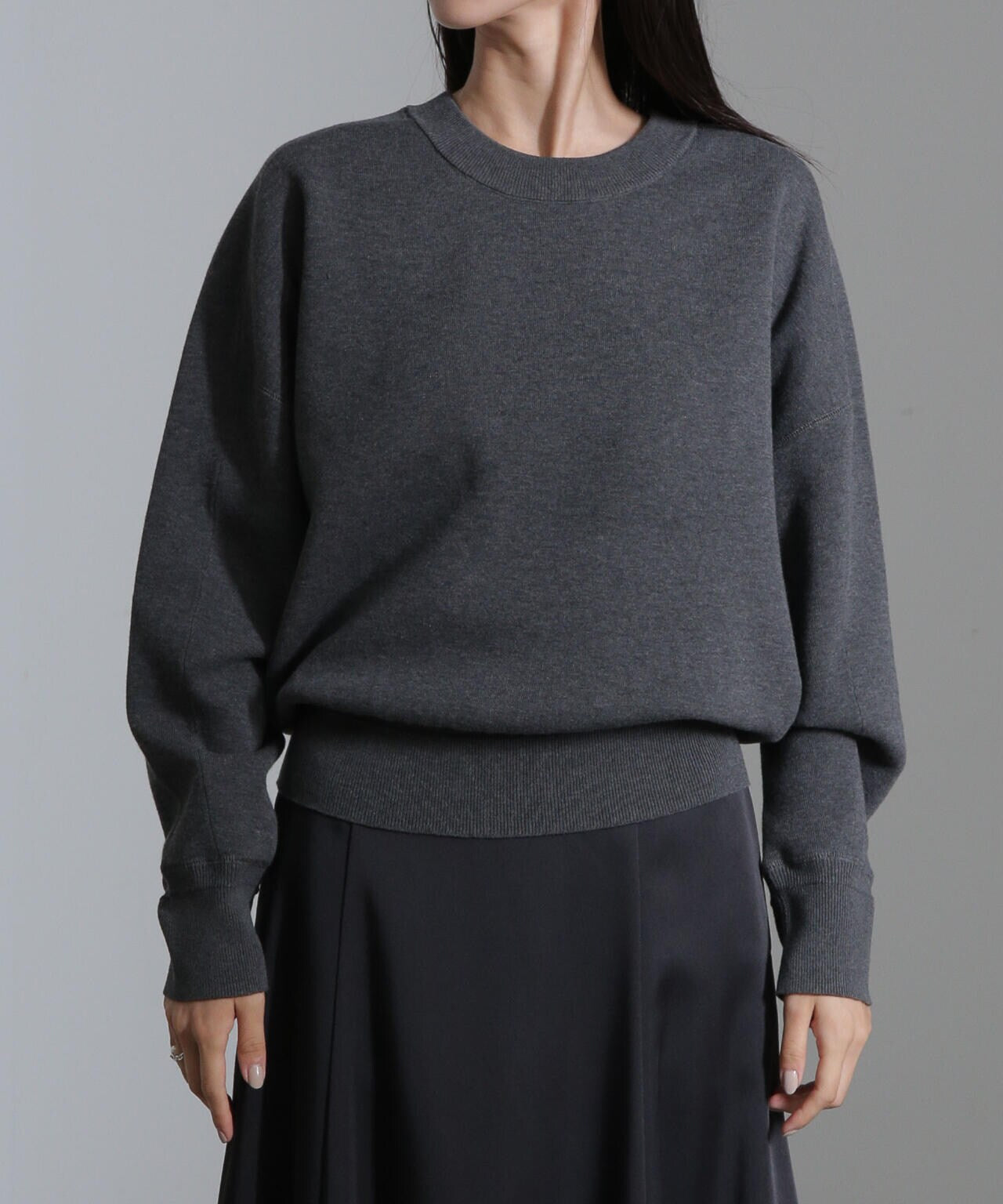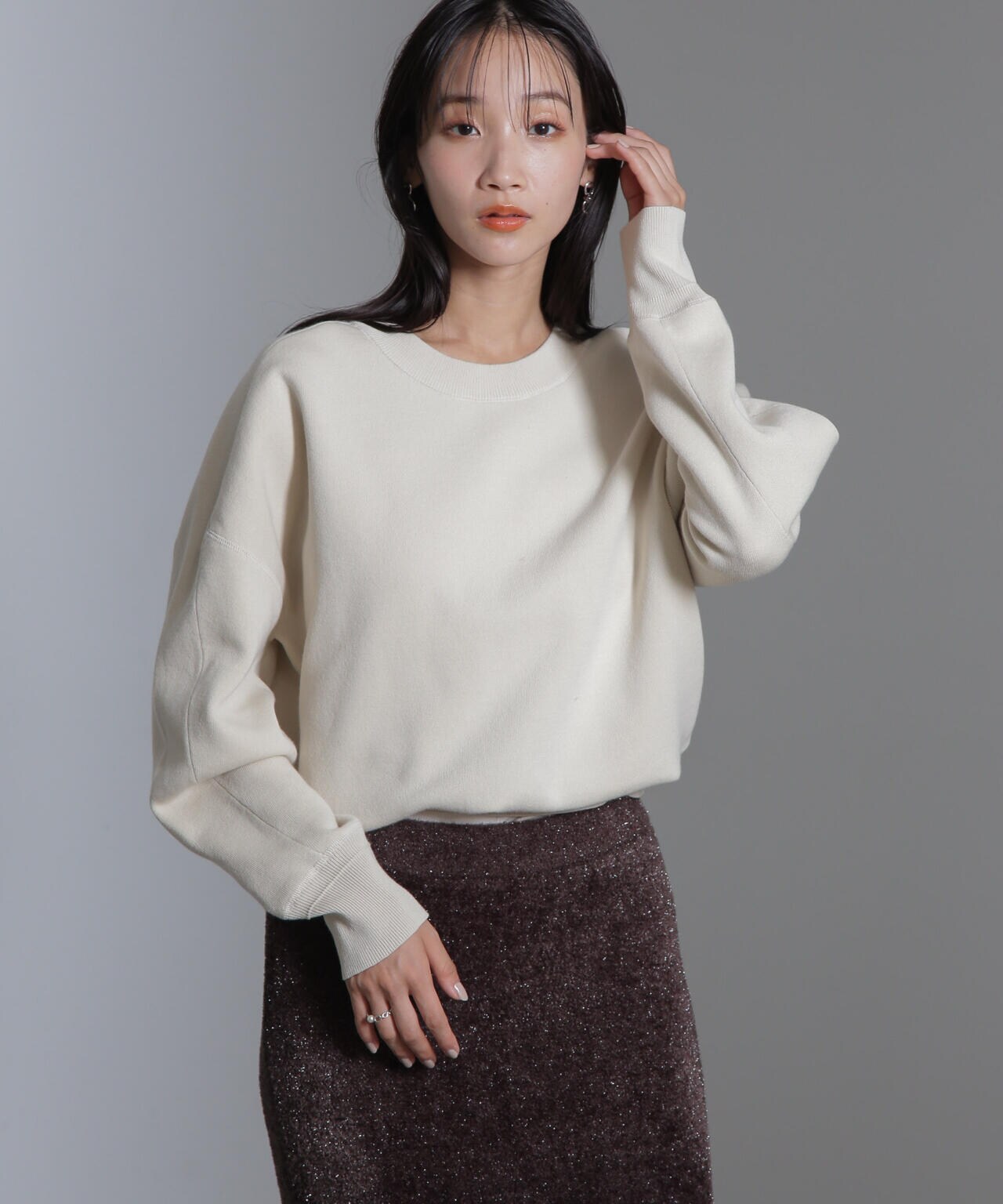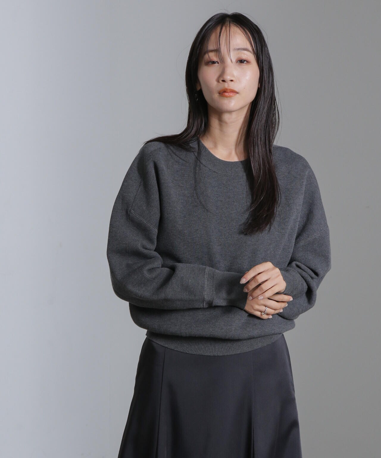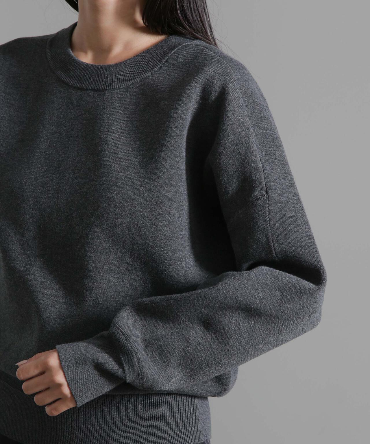 汎用性あるキレイめなデザインと素材感が魅力のニットプルオーバー。表裏それぞれ別糸の二重構造で仕立てた一着。コンパクトなフォルムがパンツにもスカートにも合わせやすく、デイリーに活躍が期待できそう!
