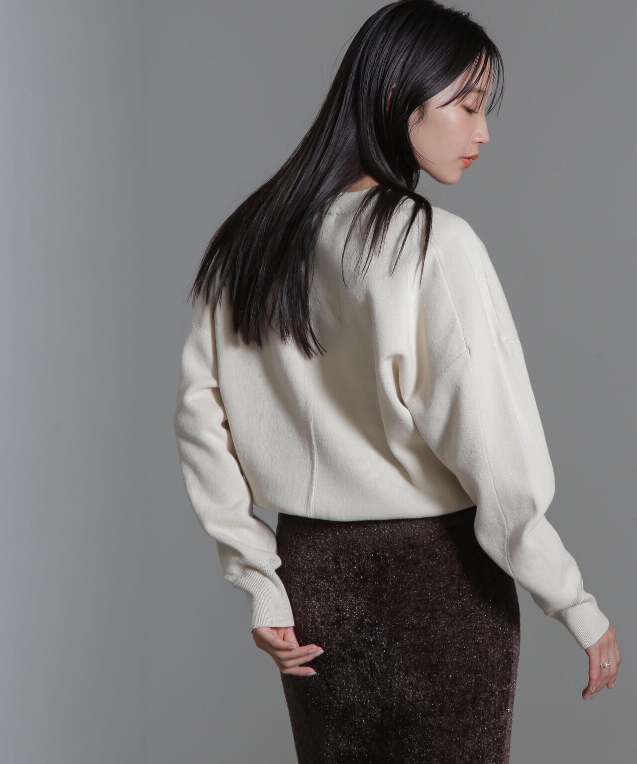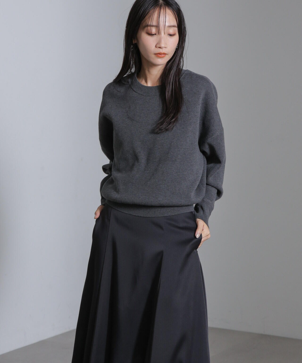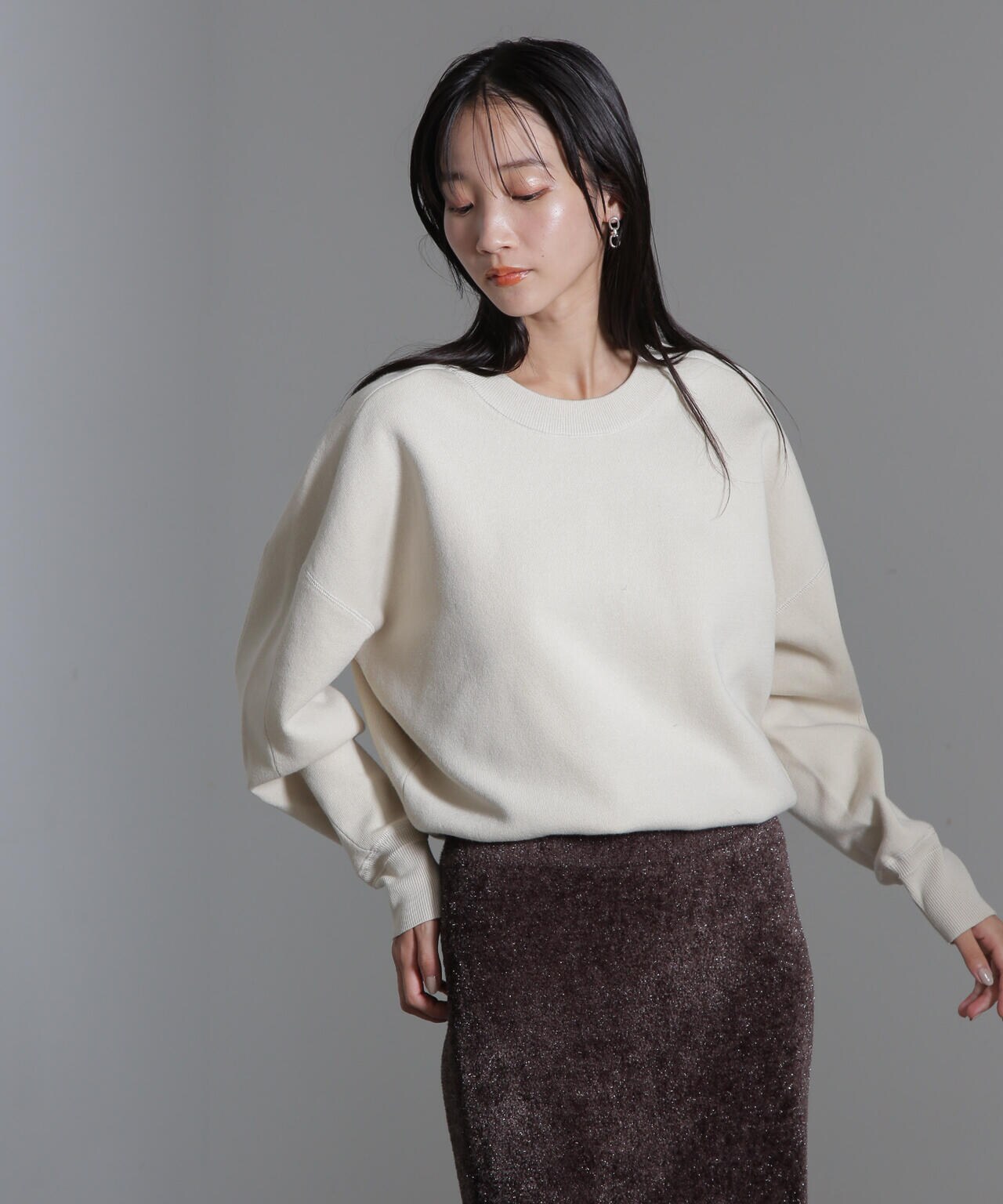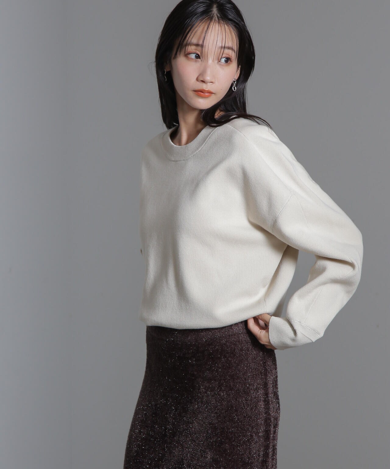 汎用性あるキレイめなデザインと素材感が魅力のニットプルオーバー。表裏それぞれ別糸の二重構造で仕立てた一着。コンパクトなフォルムがパンツにもスカートにも合わせやすく、デイリーに活躍が期待できそう!