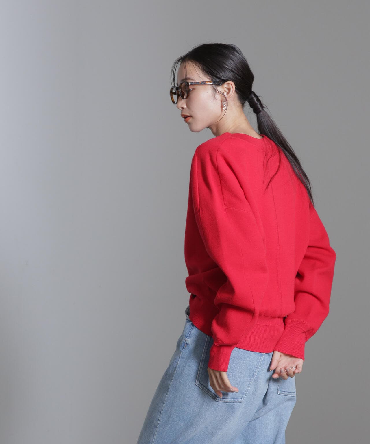 ・コンパクトなフォルムに映える、袖と裾のリブに編み柄ライン