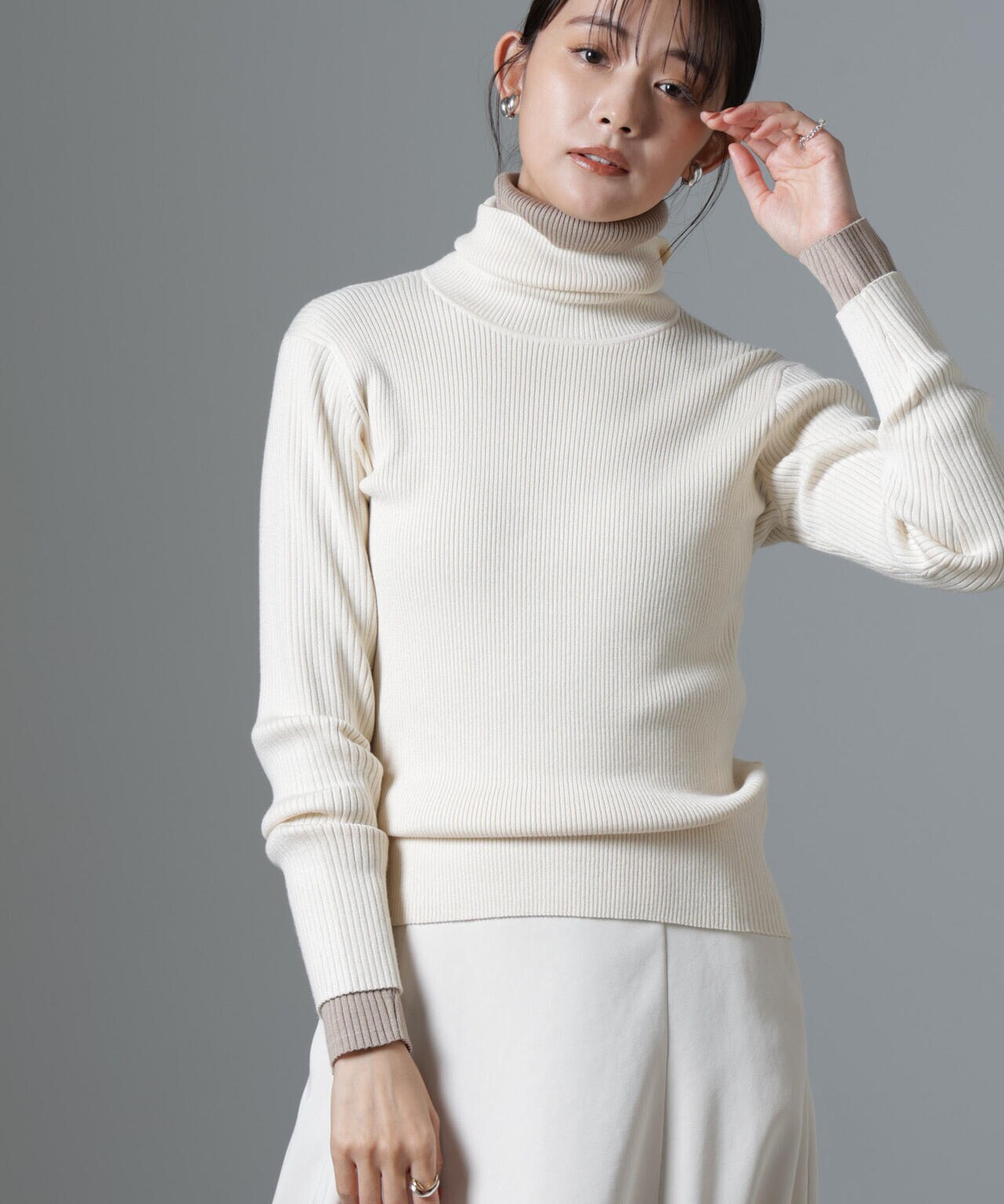 利島産の椿オイルを配合した加工剤で仕上げたニットシリーズ。冬に欠かせないベーシックで使いやすいタートルネックのリブニット。身体のラインを拾いすぎない程よいタイトシルエットで、衿は折ってダブルで着てもお好みでクシュっとさせても◎。オンオフ問わず着回せるから冬のワードローブに欠かせないアイテムです!
