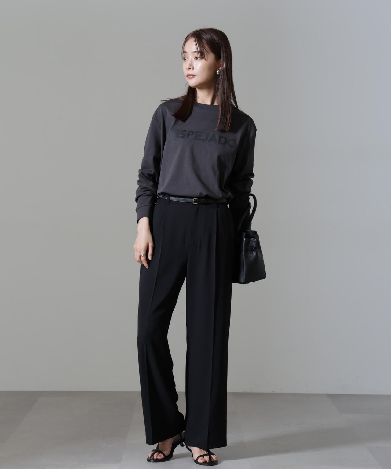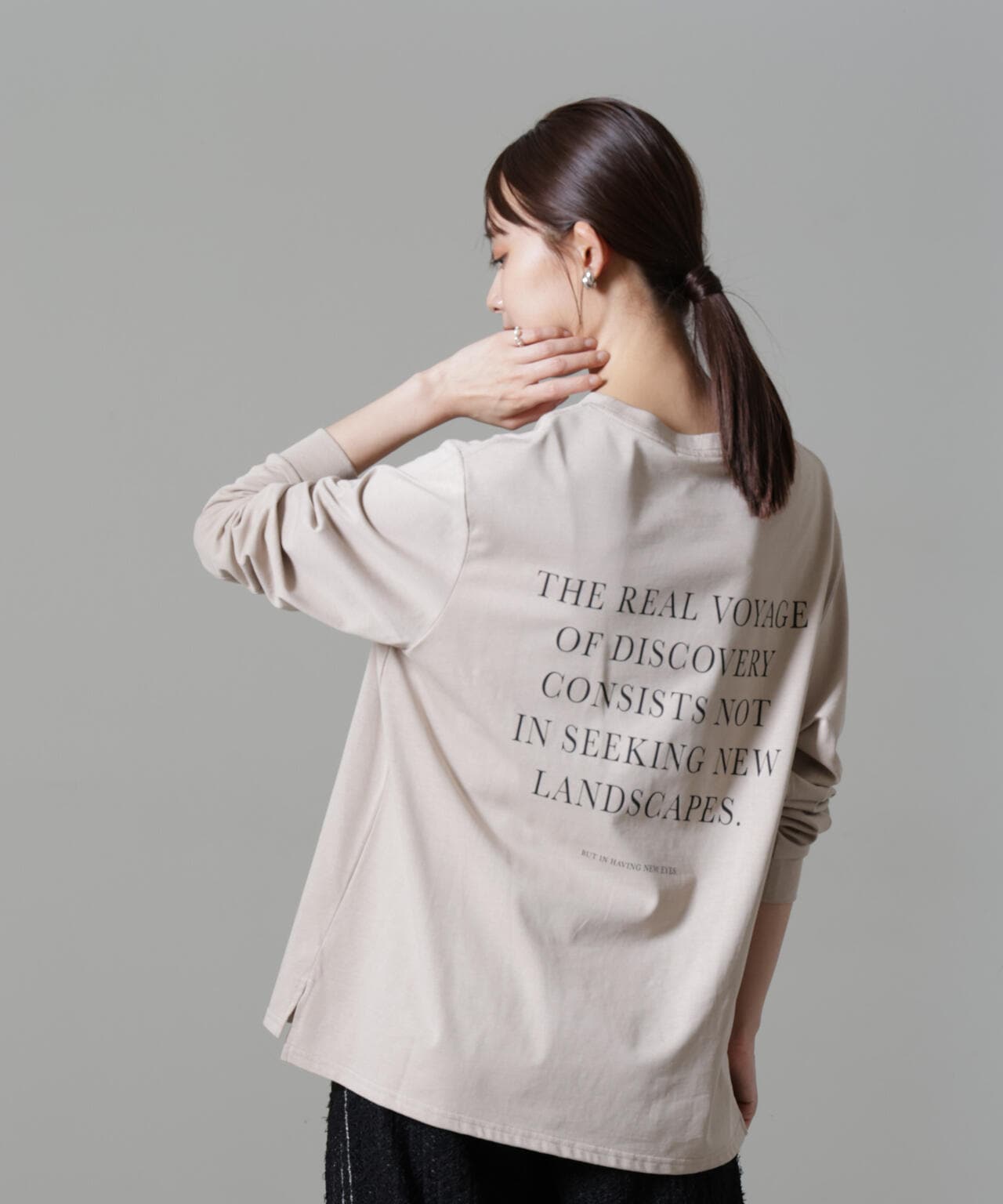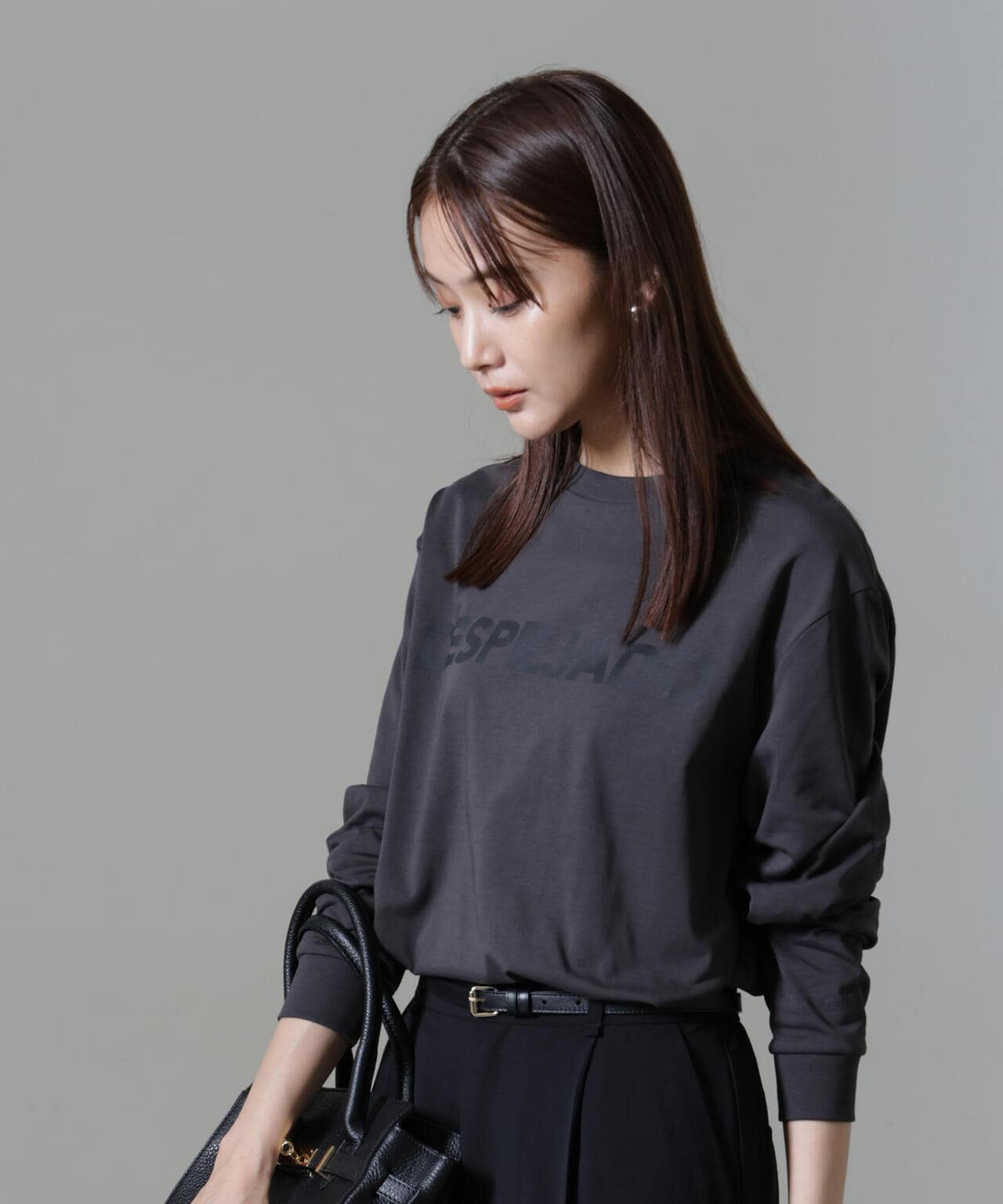 4色のボディにそれぞれ雰囲気が違うロゴプリントT。デザインによって色とロゴの位置も変えているので、選ぶ楽しさもあるロングTシャツ。やや長めの着丈とワイドなシルエットで、キレイな表面感もあいまってカジュアル過ぎない印象が魅力的。キレイ目なスカートと合わせて頂くと大人っぽく着て頂けておすすめコーディネートです◎