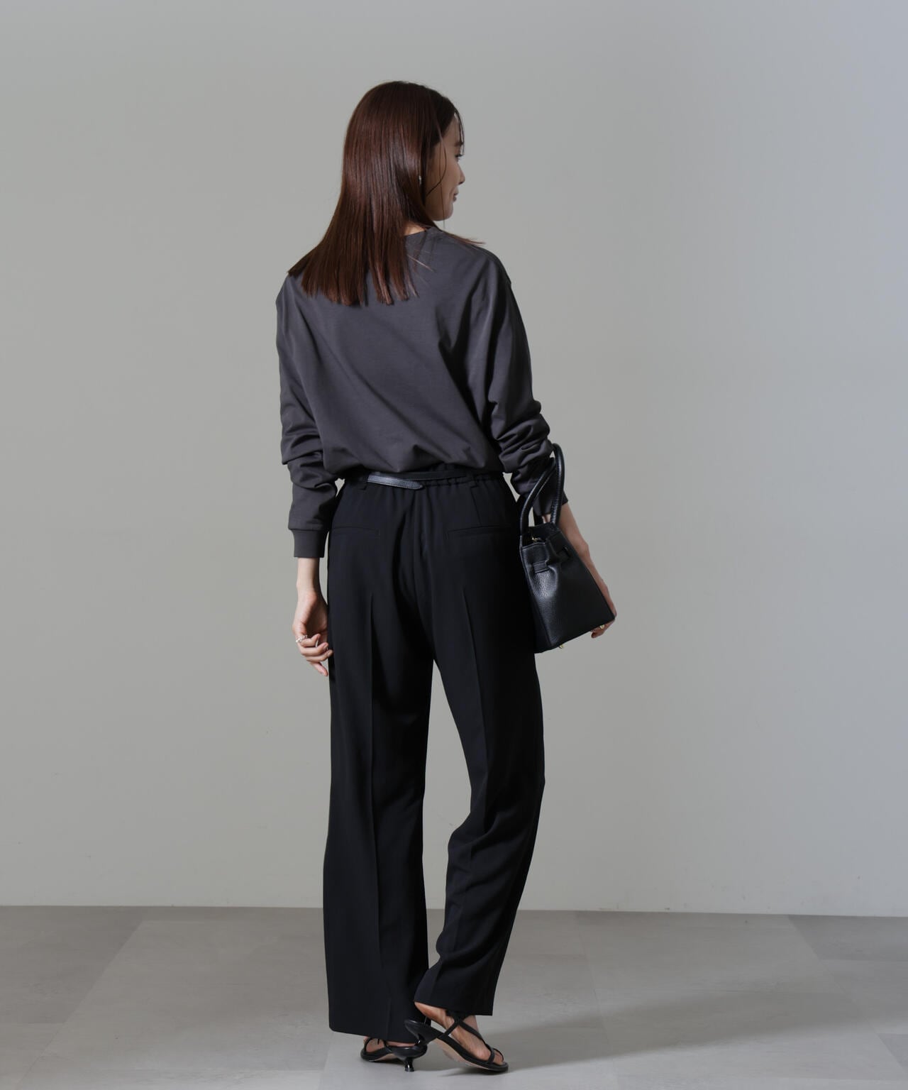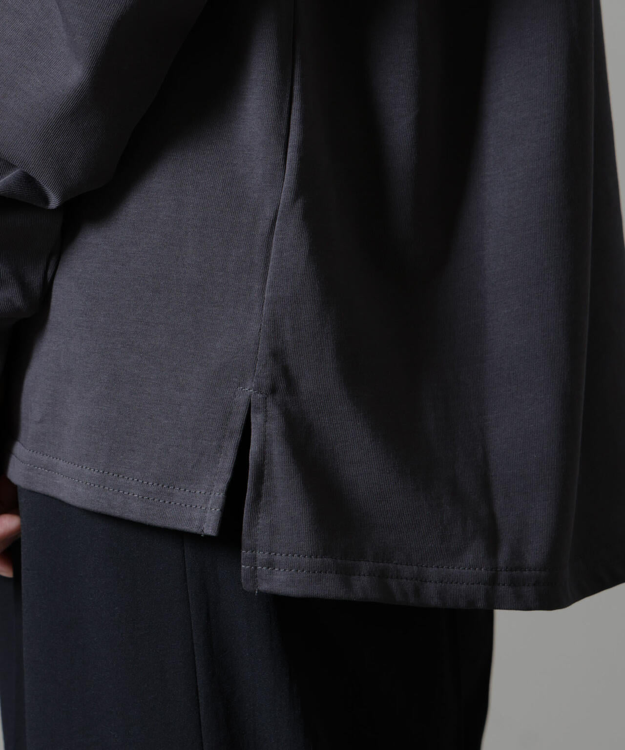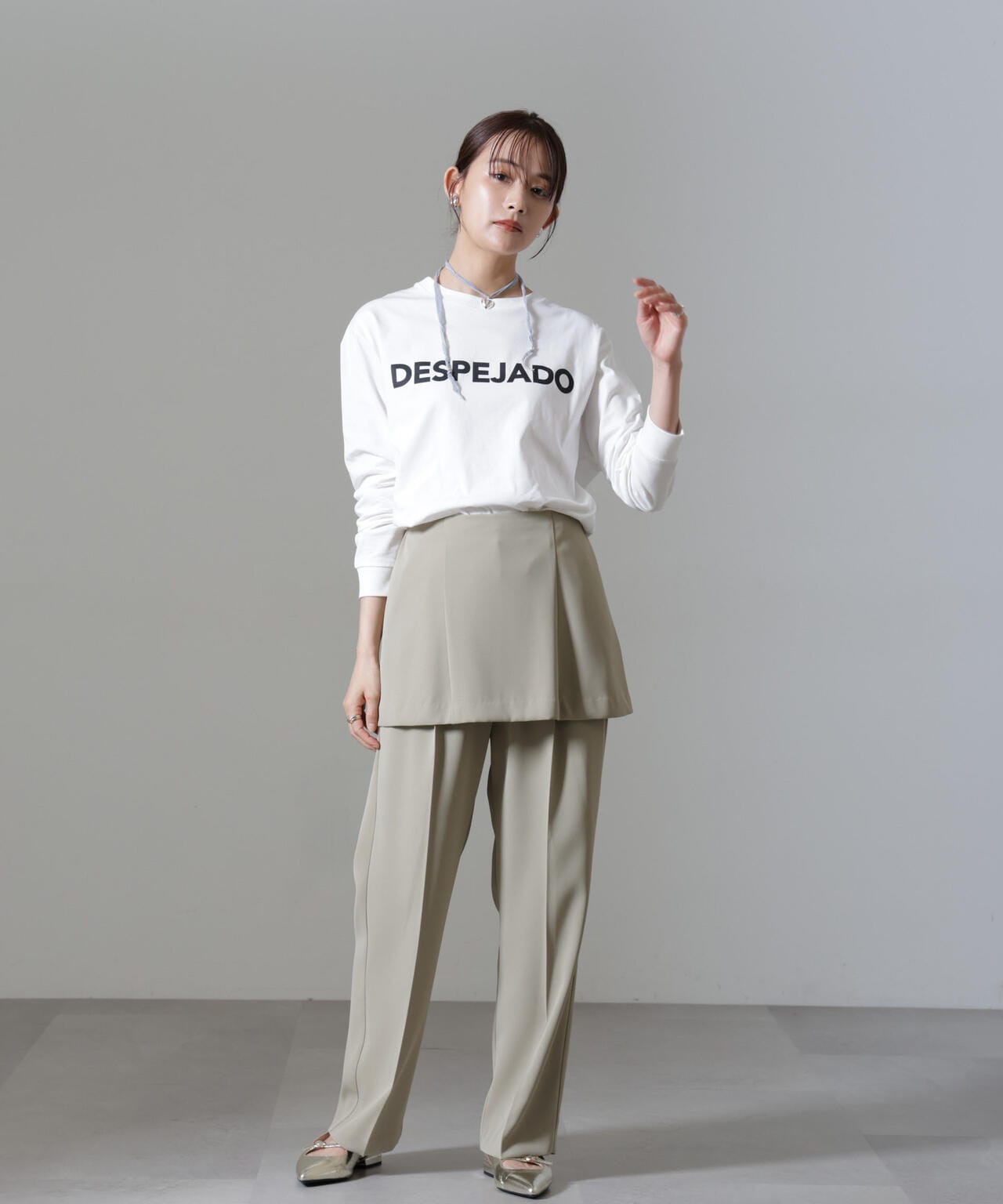 4色のボディにそれぞれ雰囲気が違うロゴプリントT。デザインによって色とロゴの位置も変えているので、選ぶ楽しさもあるロングTシャツ。やや長めの着丈とワイドなシルエットで、キレイな表面感もあいまってカジュアル過ぎない印象が魅力的。キレイ目なスカートと合わせて頂くと大人っぽく着て頂けておすすめコーディネートです◎