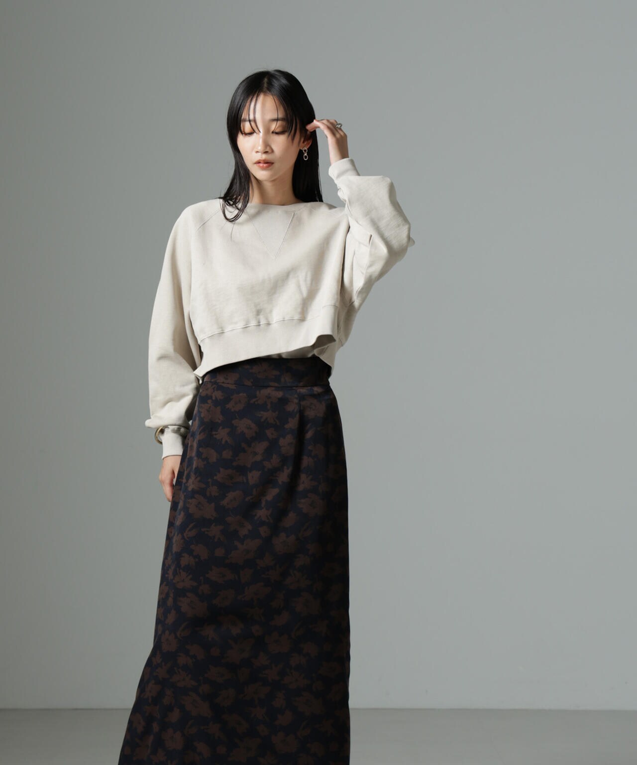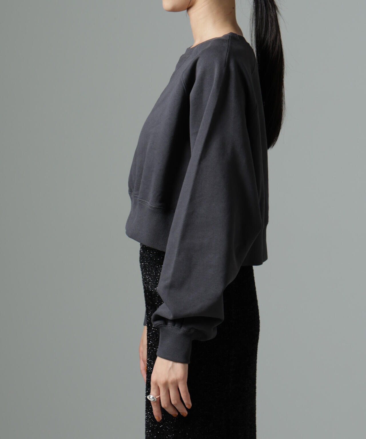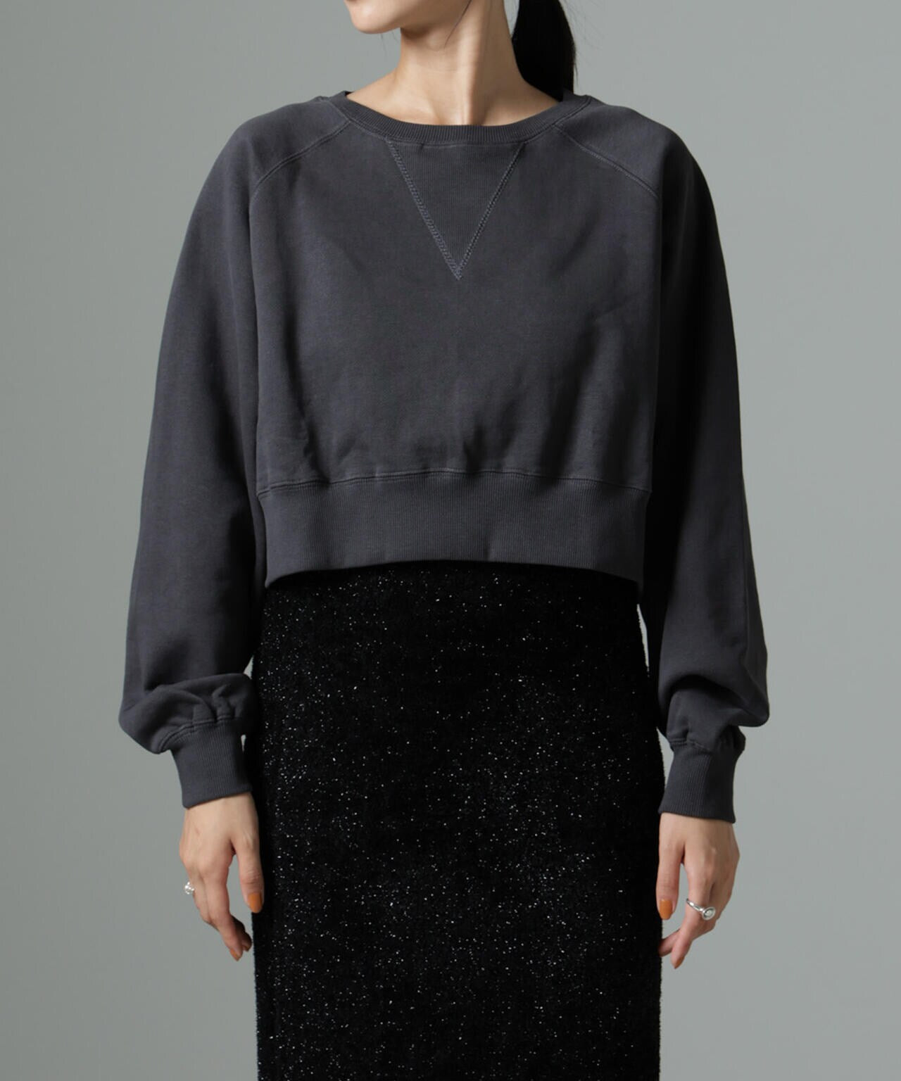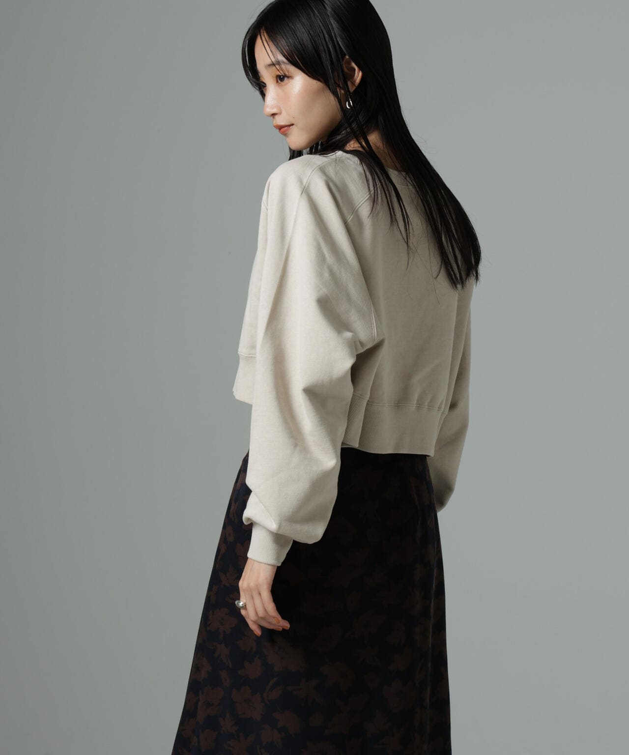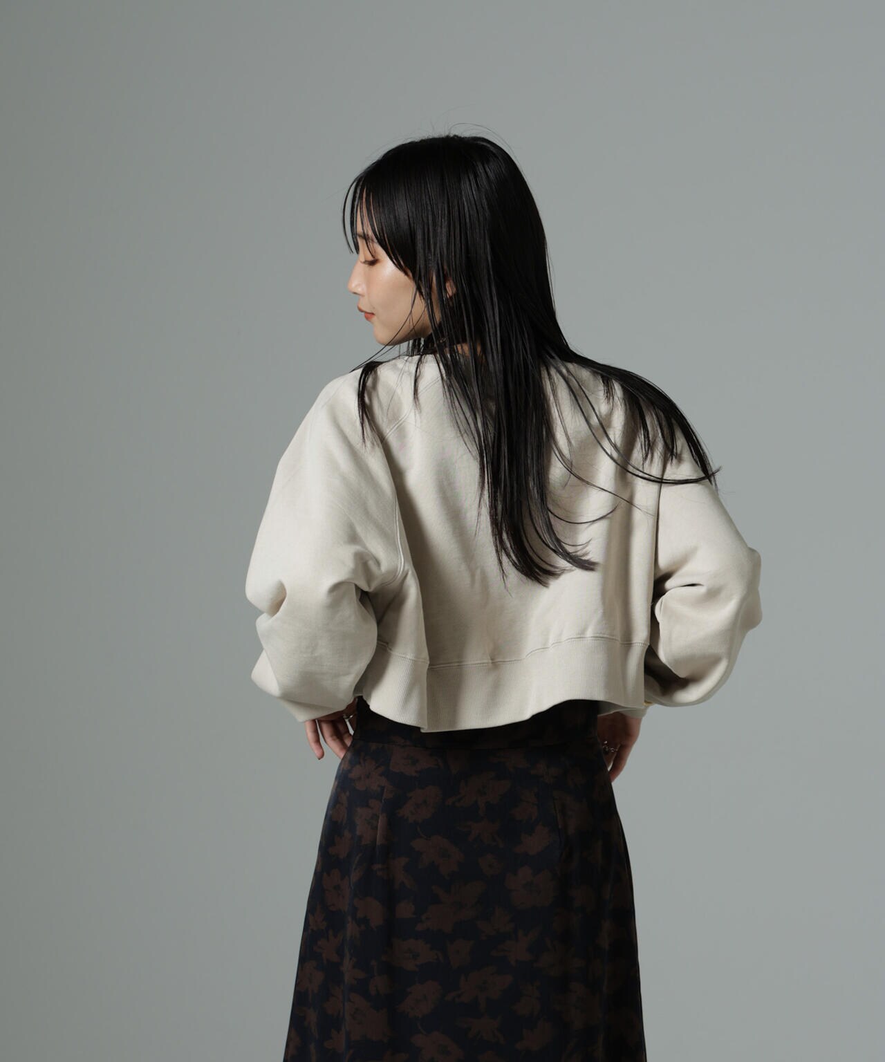 女性らしいショート丈のスウェットプルオーバー。密度がしっかりとした厚みがある素材感なので、秋から冬にかけてお使いいただける大人カジュアルなアイテムです。ロングTシャツやワンピースとのレイヤードにも最適な丈感で、着回しのしやすさも抜群です!