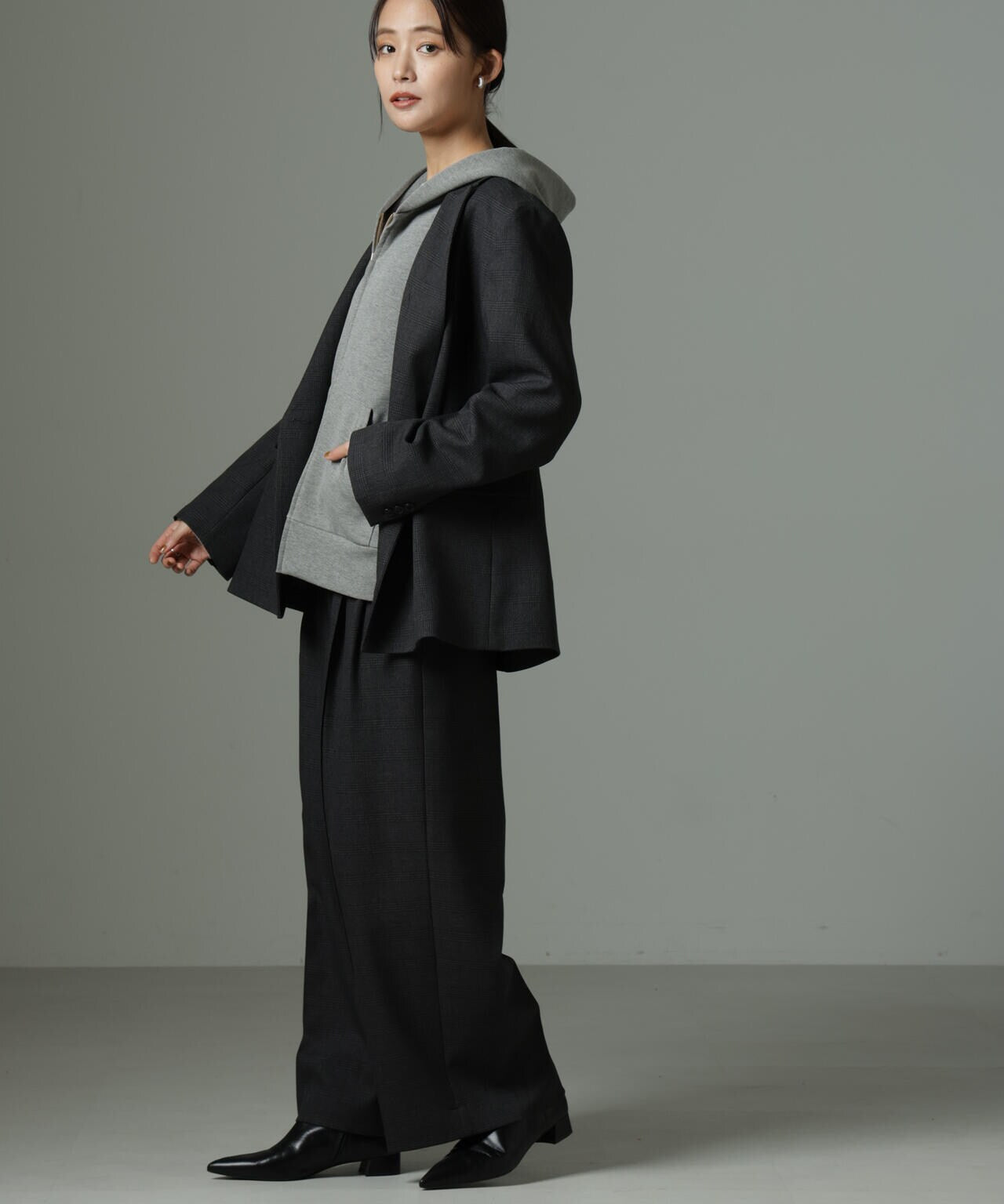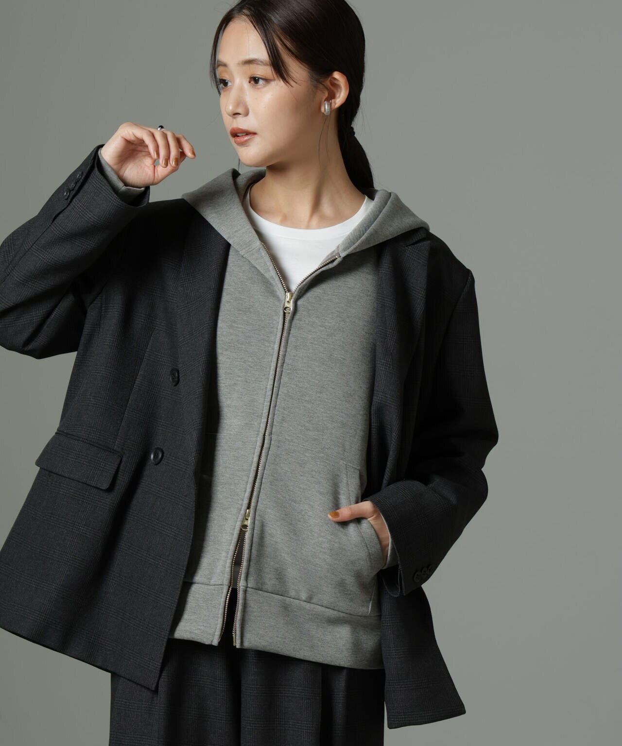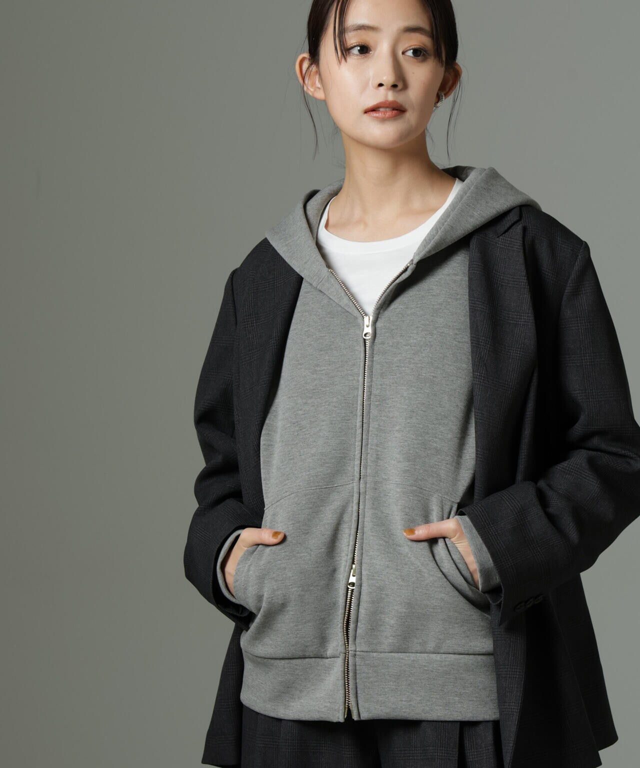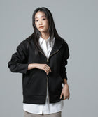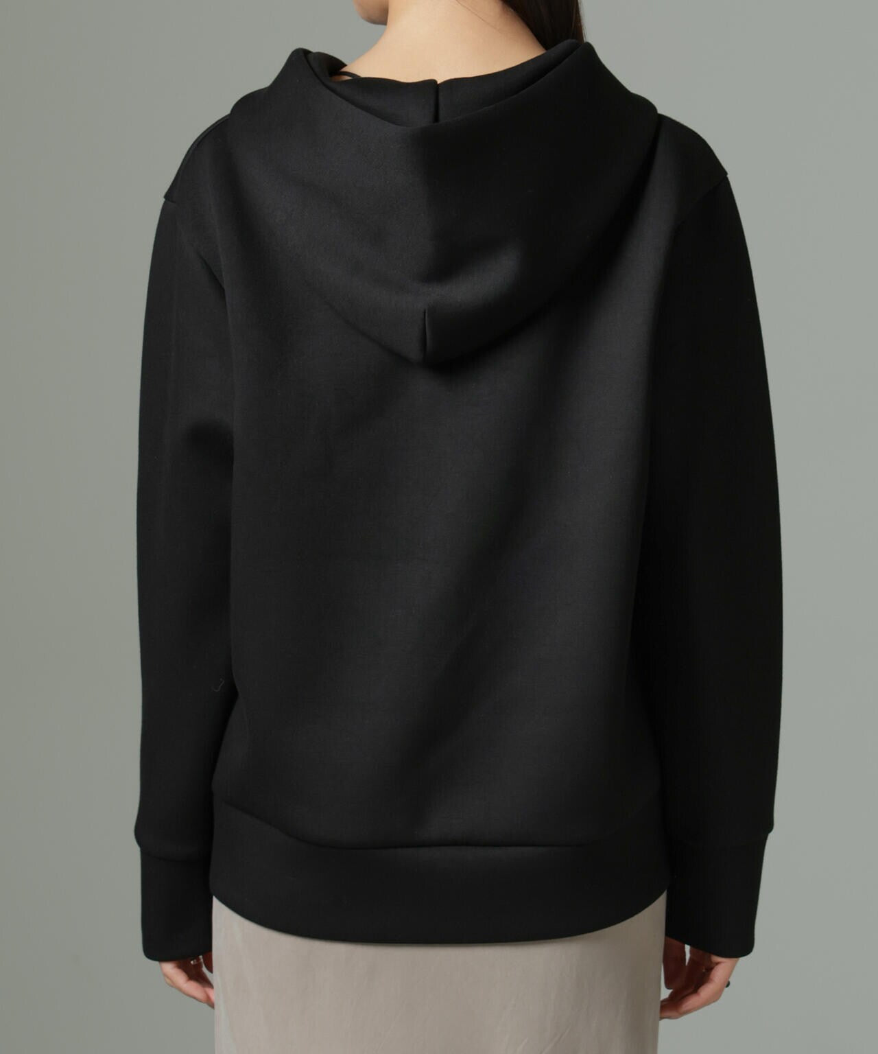 立体的なフォルムが魅力のミニマルなジップフーディー。一枚着や羽織としてはもちろん、ジャケットやコートの中に着てフードを見せるスタイリングもおすすめです。