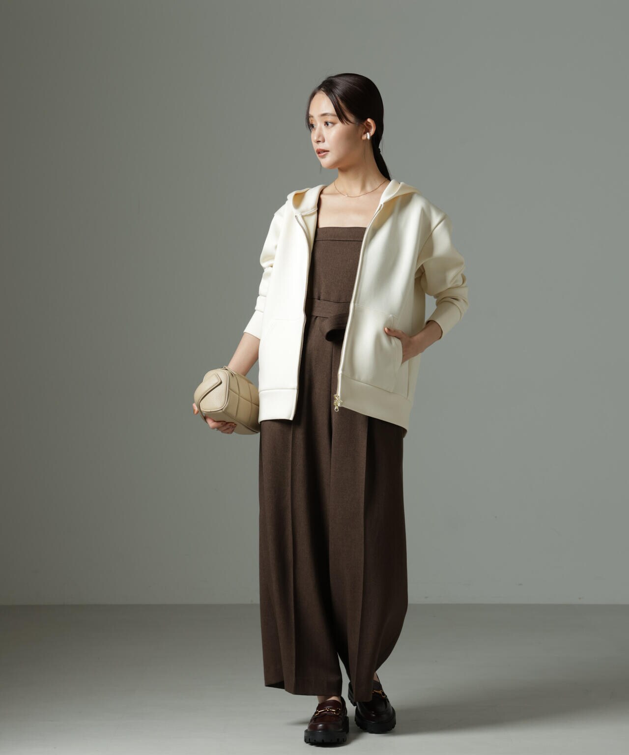 ・女性が取り入れやすいミニマルできれいめな印象のジップアップパーカー