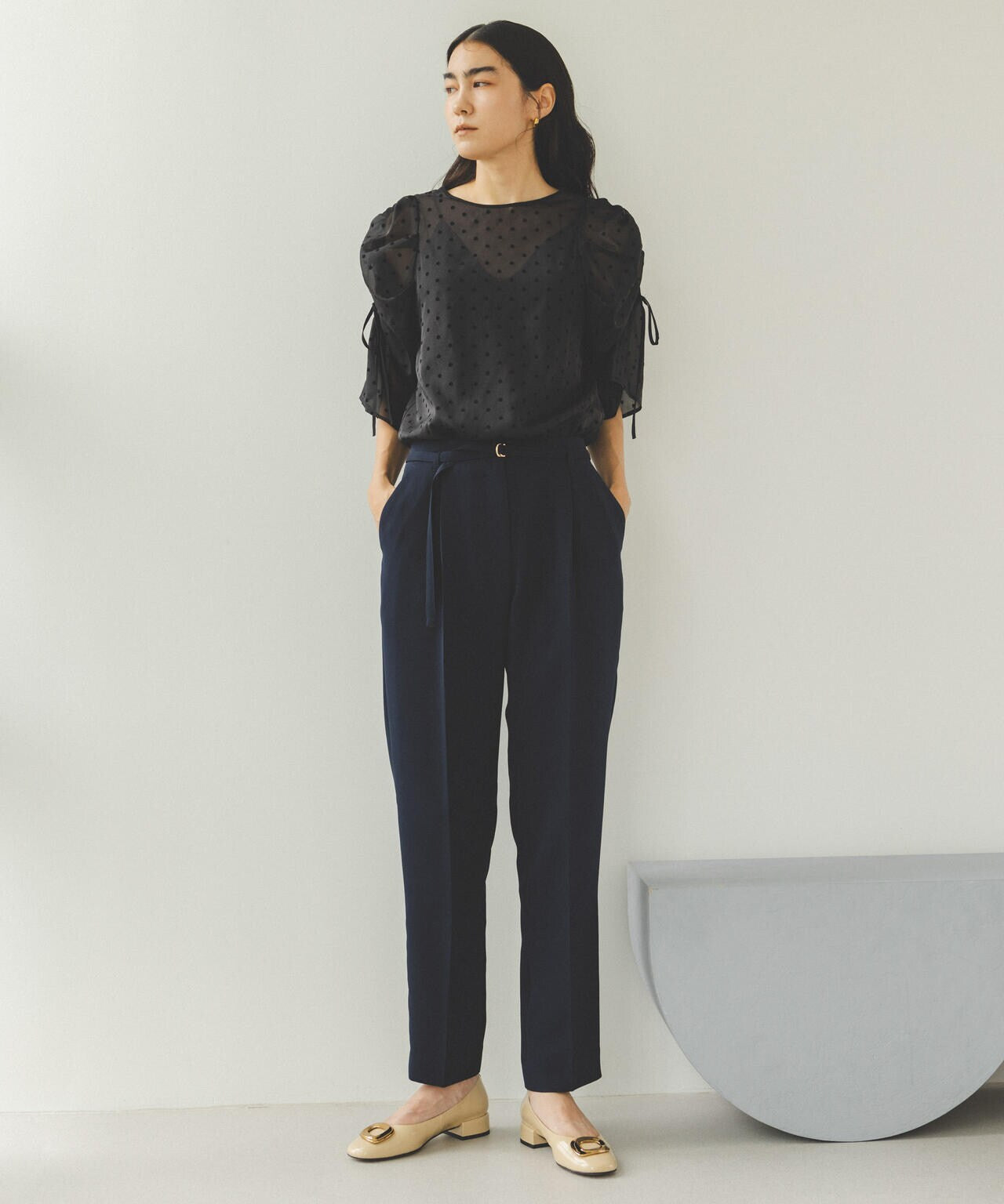 イージーケアダブルクロス ベルト付きタックテーパードパンツ(セットアップ可)
