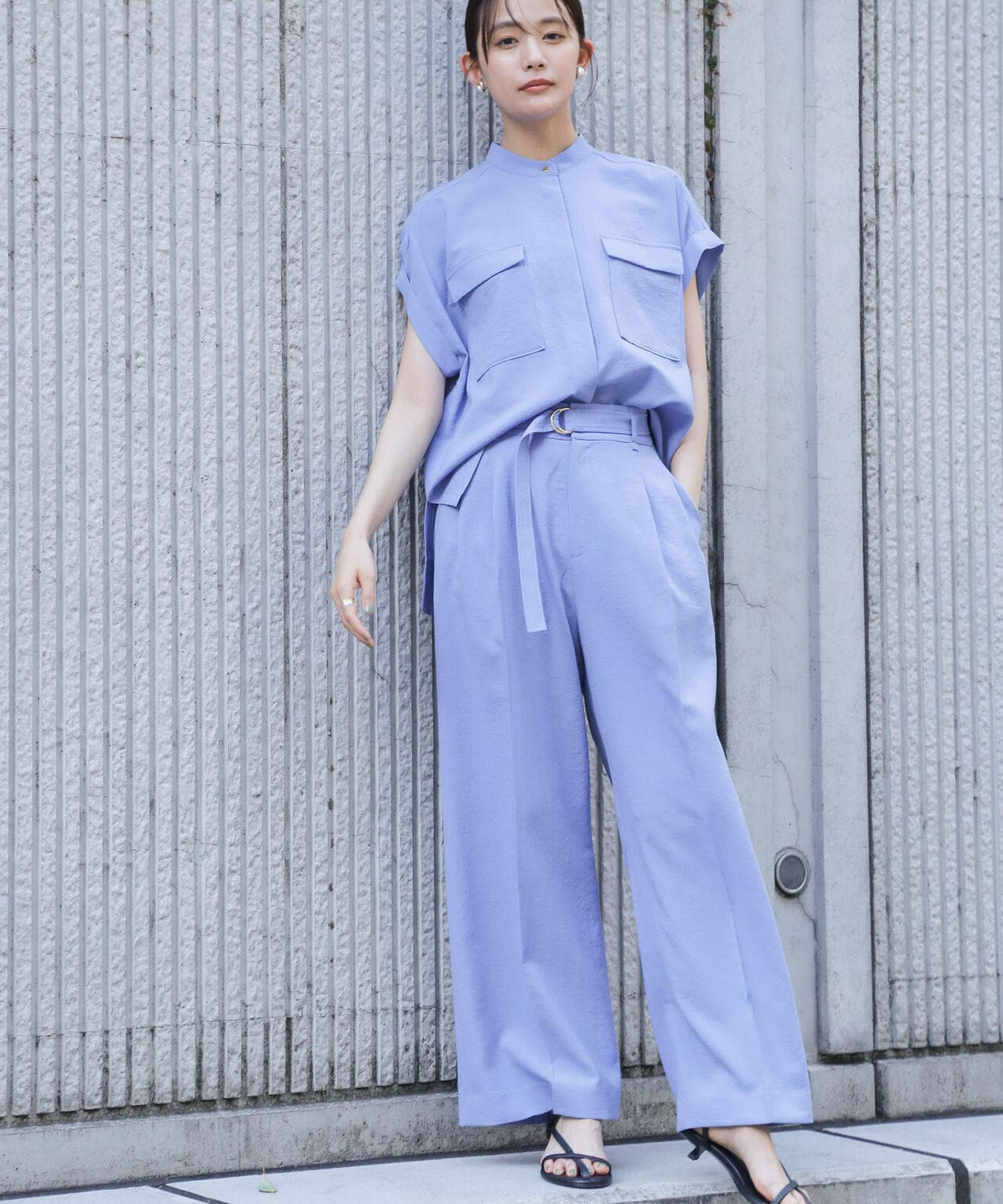 メランジドライ ベルト付きワイドパンツ(セットアップ可)