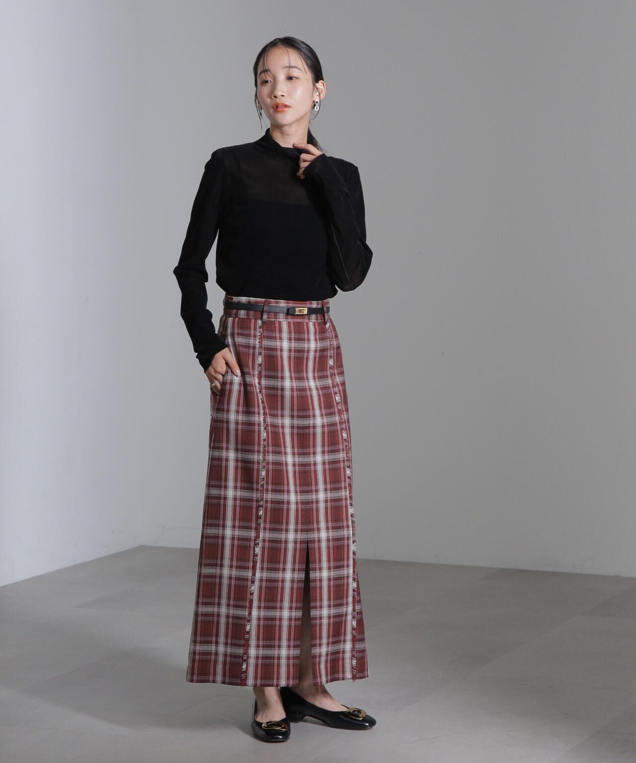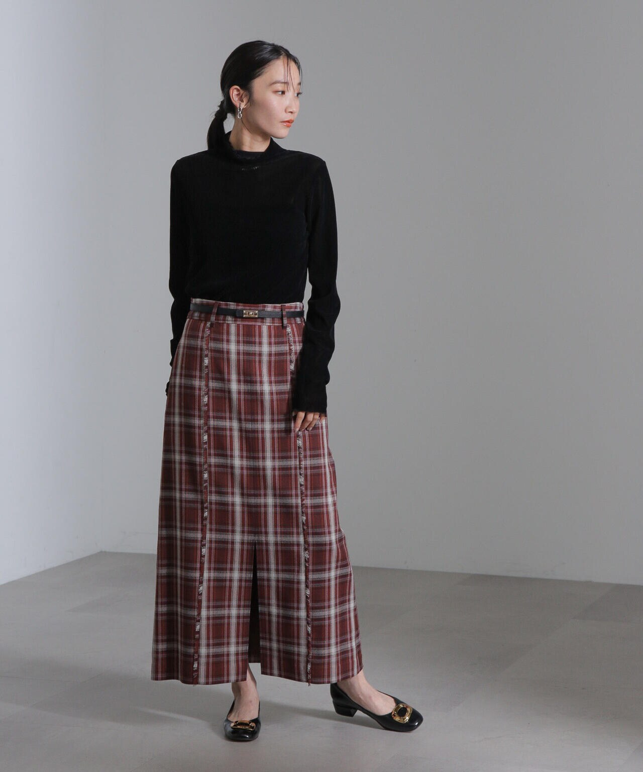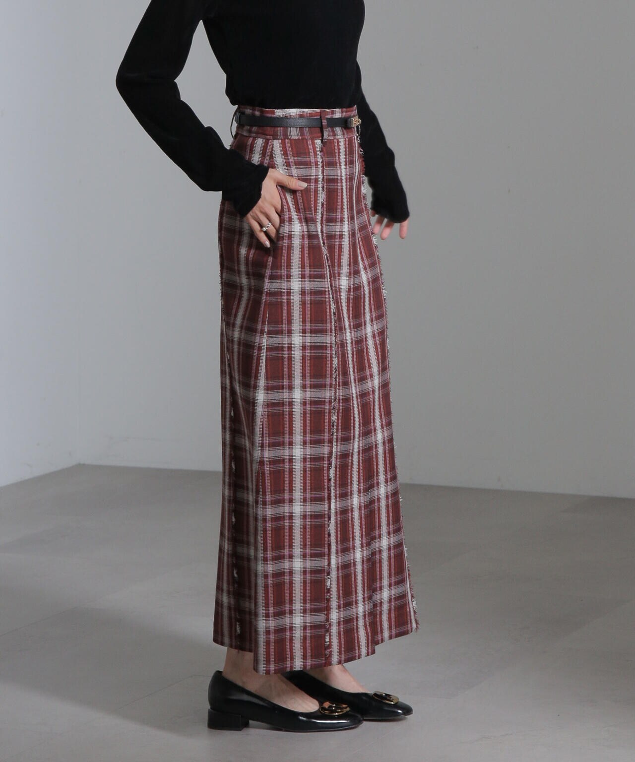 オリジナルチェック生地がコーディネートのポイントになるスカート。カラーによって雰囲気が、ガラッと変わりお洒落が楽しめるアイテムです。