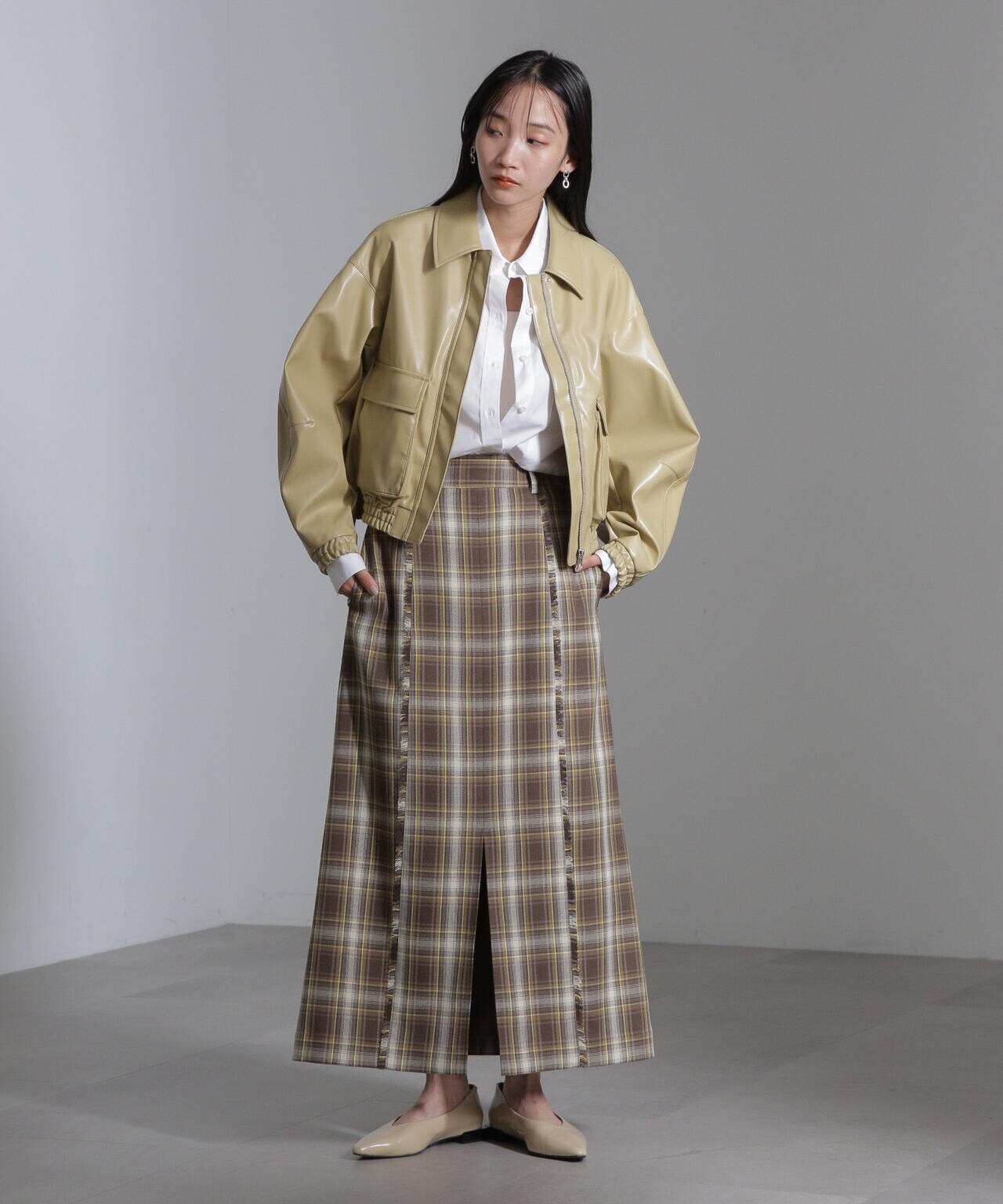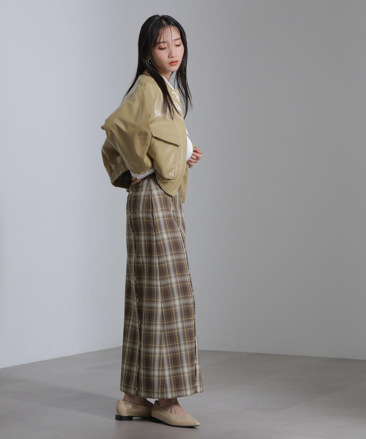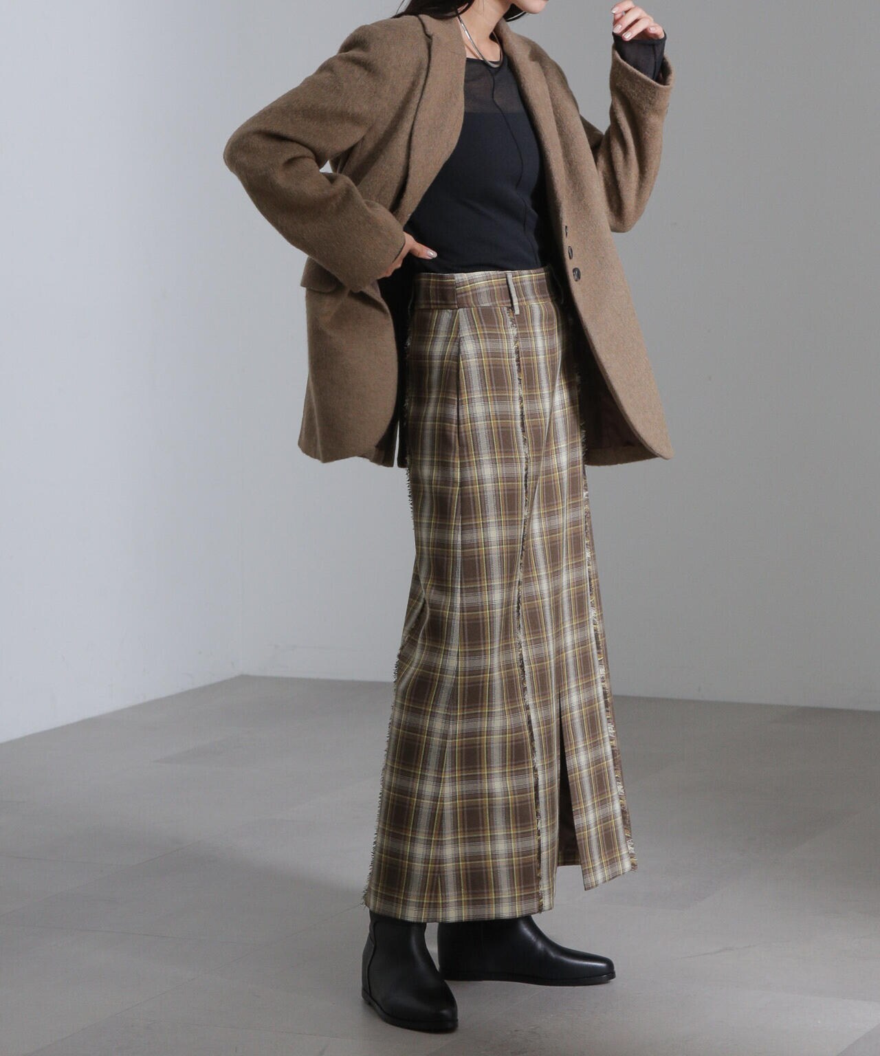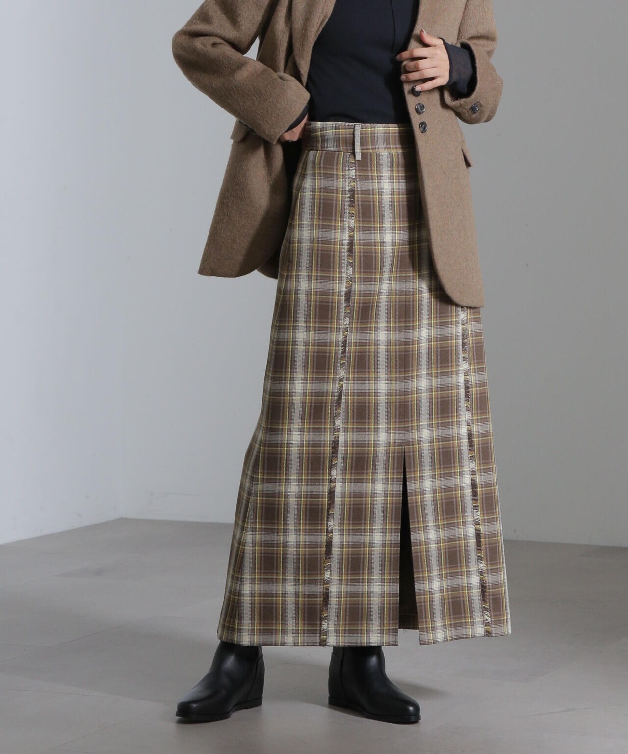 オリジナルチェック生地がコーディネートのポイントになるスカート。カラーによって雰囲気が、ガラッと変わりお洒落が楽しめるアイテムです。